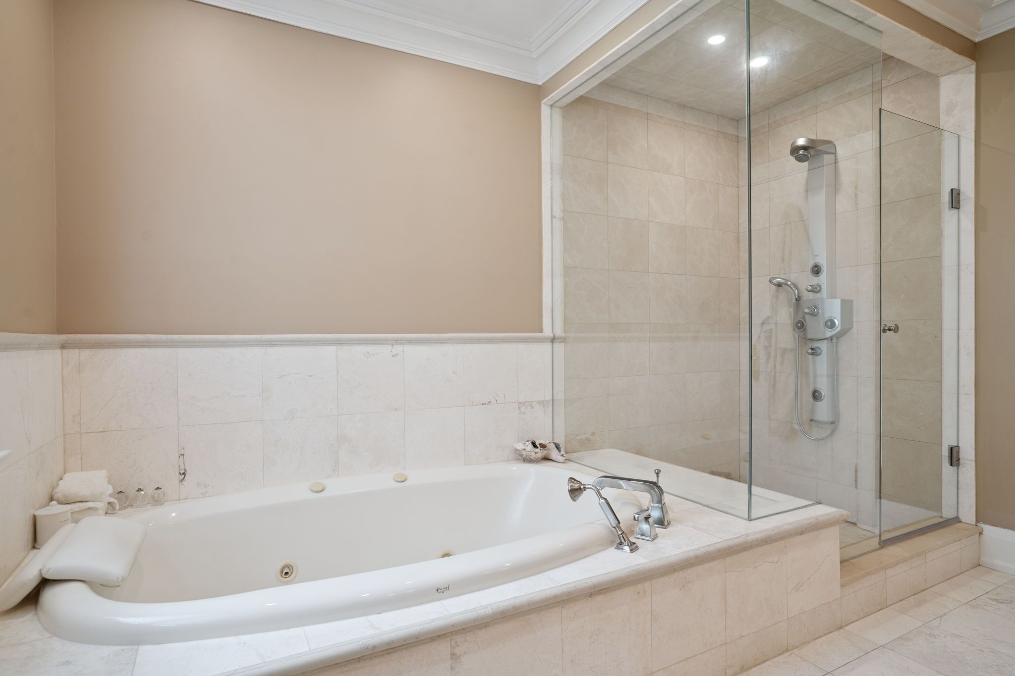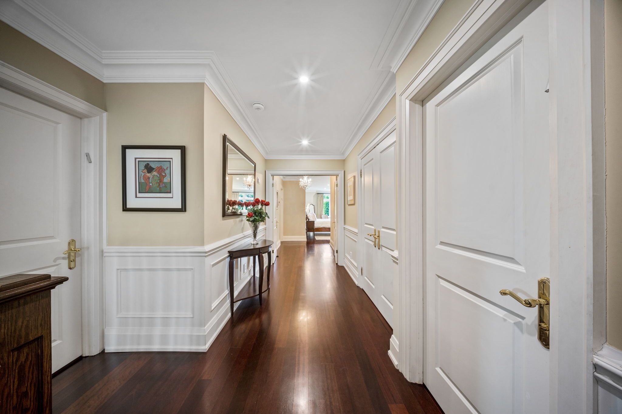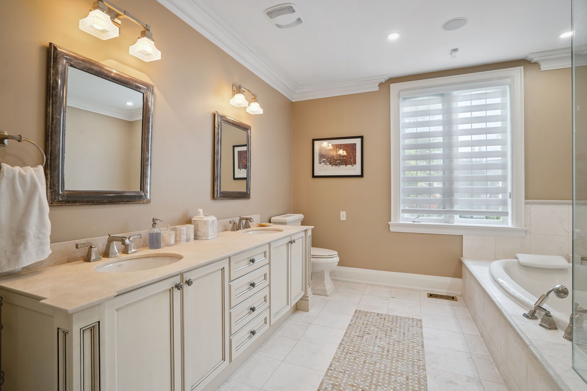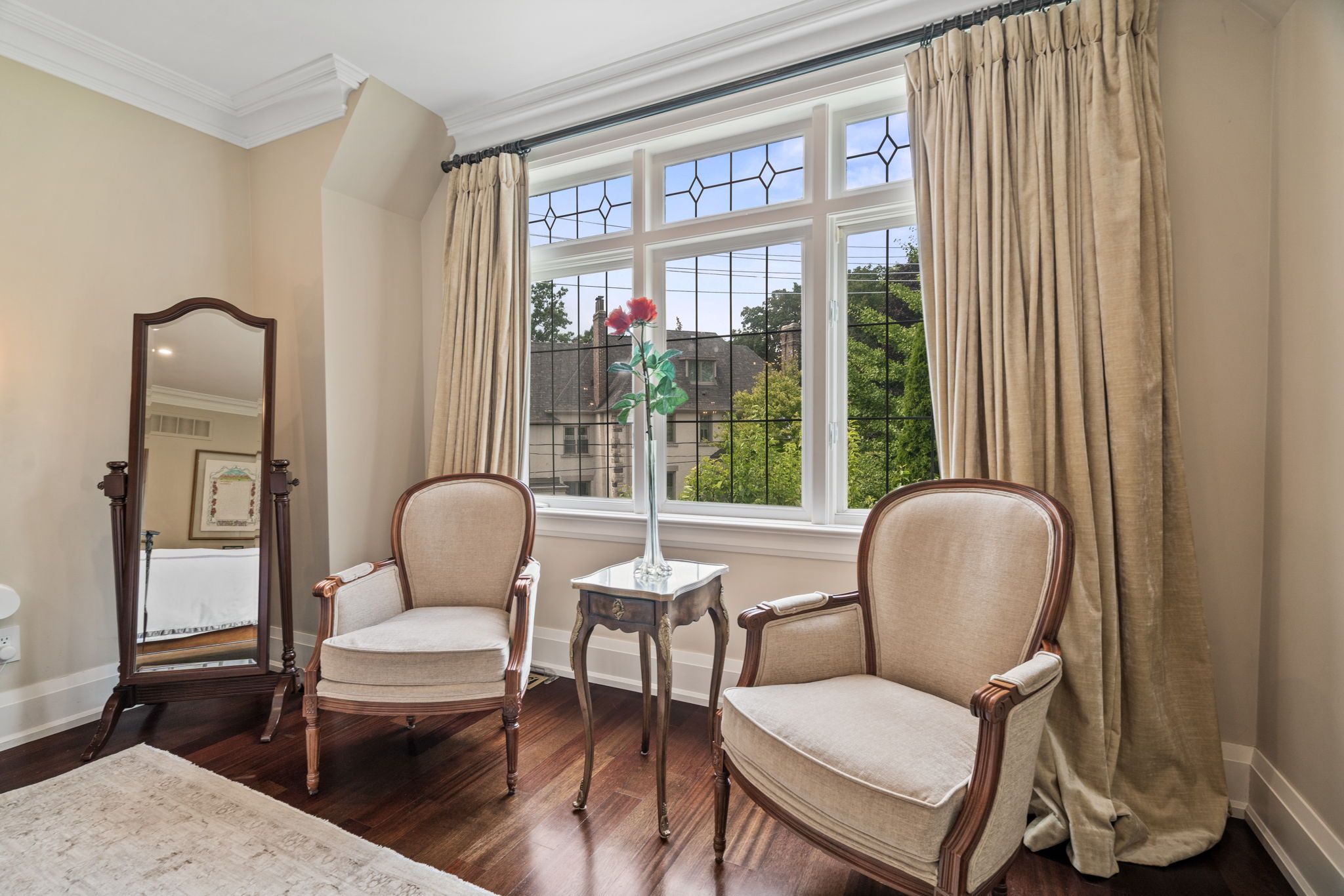This stately tudor-style home with resort-like amenity rich rear yard of 100' in width. Classic elegance on one of forest hill's most prestigious streets. Nestled upon a stunning tree-lined premium juncture. Blending timeless charm with exceptional craftsmanship, including custom leaded windows, stone tile, rich hardwood floors, integrated speakers, crown moulding, wainscoting, and designer embellishments and lighting which grace every inch of its approximately 6,000 square feet of living space. The chef-inspired cameo crafted kitchen features wolf/sub-zero appliances, pot-filler, expansive counter space, and a bright breakfast area, perfect for effortless entertaining. Grand principal rooms complete the main level, along with a striking side staircase leading to four spacious bedrooms, each with its own ensuite and custom closets. The primary suite is a private retreat, offering wall-to-wall built-ins, a walk-in closet and lavish marble ensuite. Additional living spaces include a third-level great room which can be converted to a bedroom if needed, powder room and a fully finished lower level with a very convenient mudroom, nanny's suite, feature wet steam room with spa shower, recreation room and home theatre. This residence's rear gardens are equally impressive, with exquisite stonework, integrated lighting, irrigation and professional landscape design by renowned artist gardens. A charming english garden welcomes you, while the private backyard oasis (2020) features a built-in outdoor kitchen, pergola, cabana with gas firetable, multiple lounge areas, a todd pools built saltwater concrete pool with spa and waterfall, and a private sport court. A rare and refined offering designed for luxury & comfort.