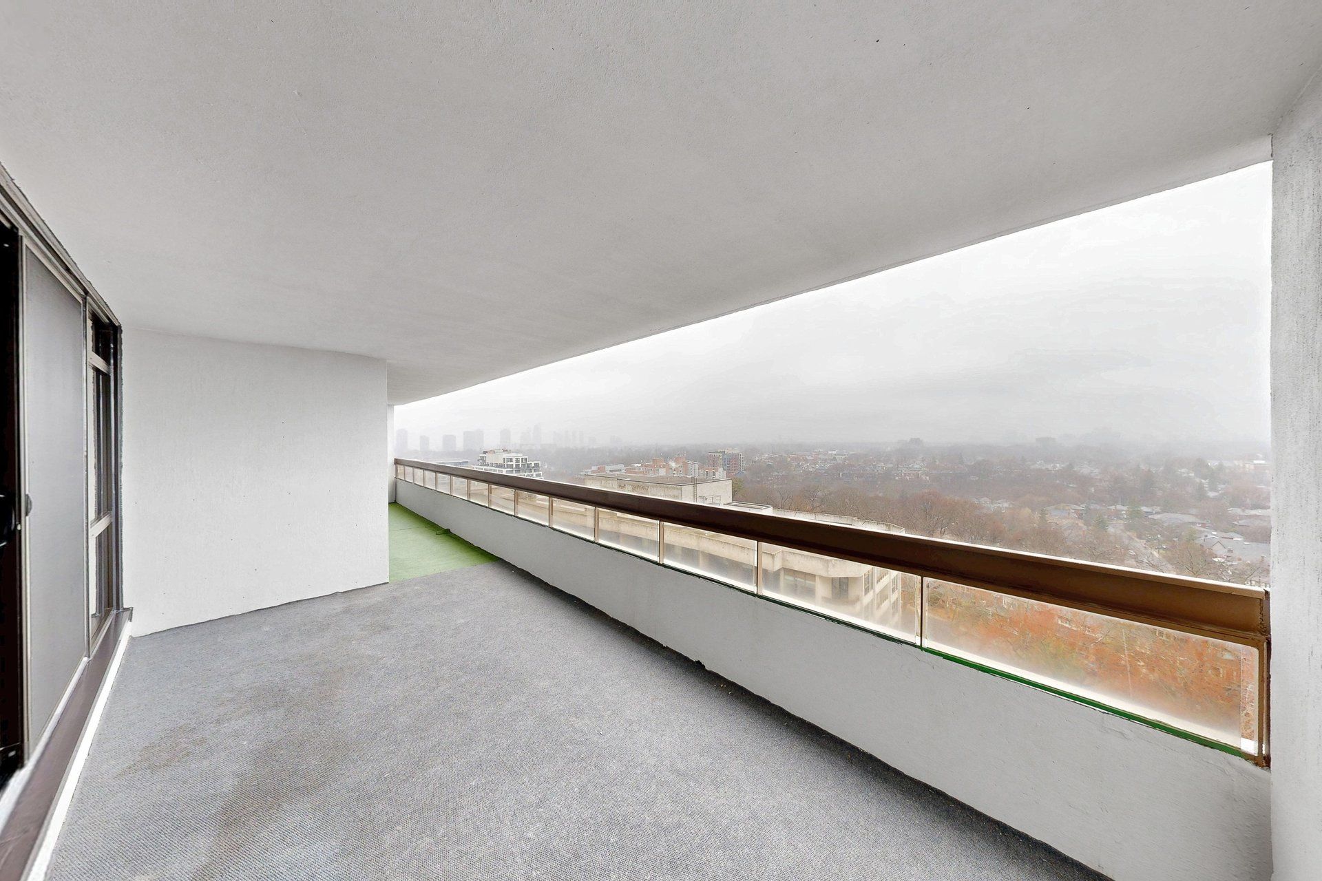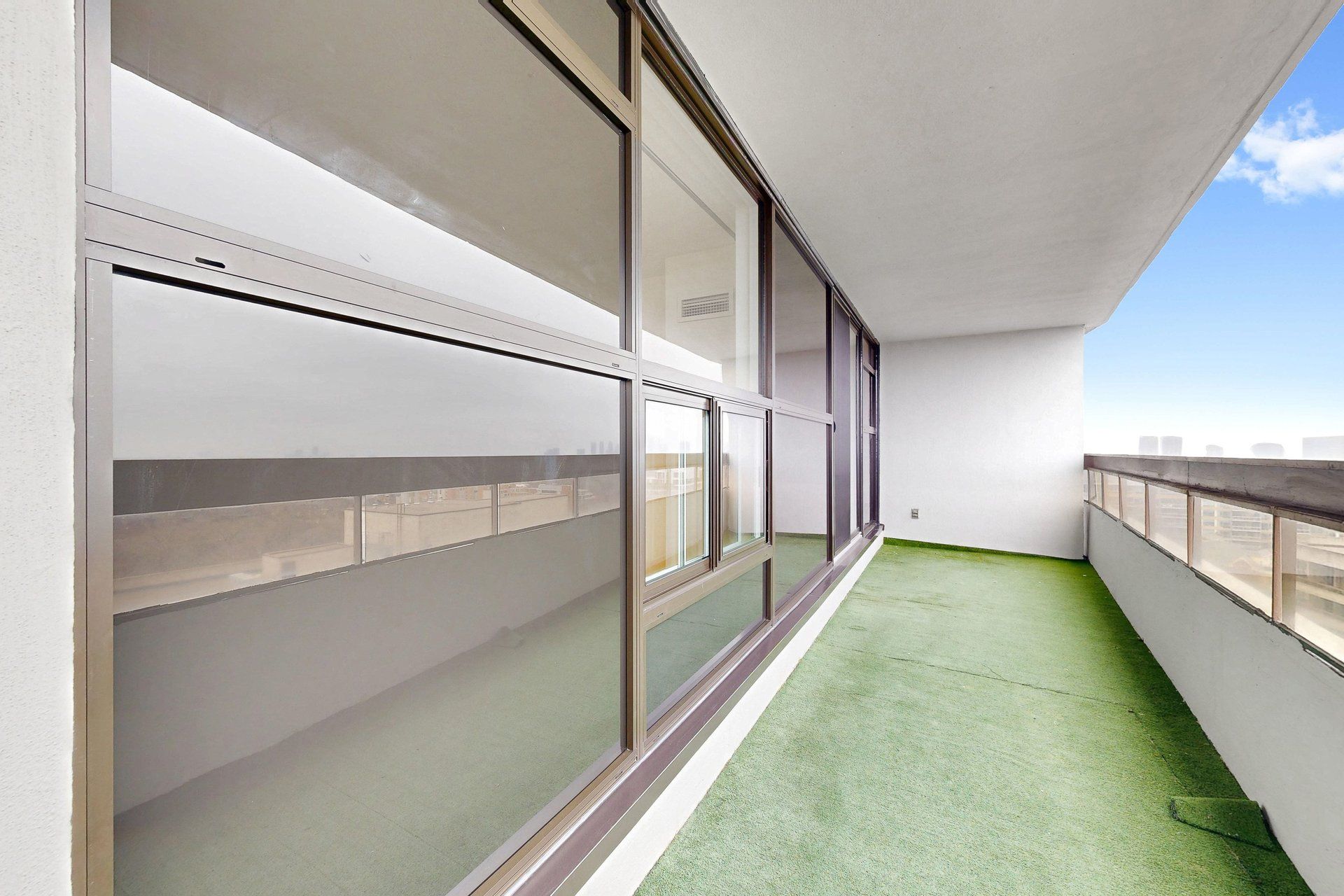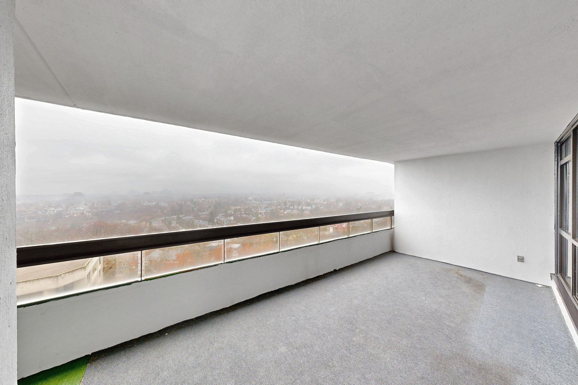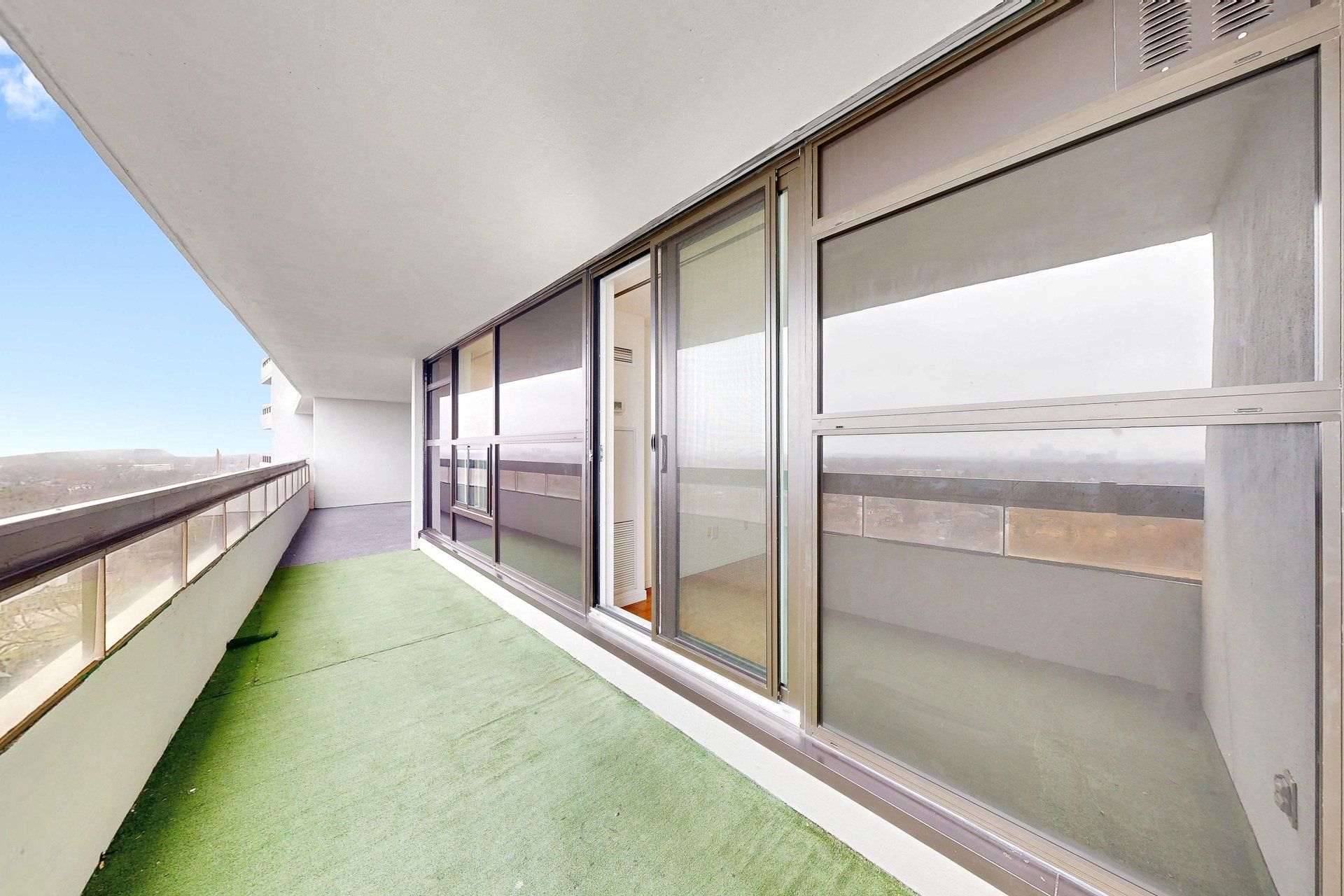 • Large private balcony with sweeping panoramic city views.