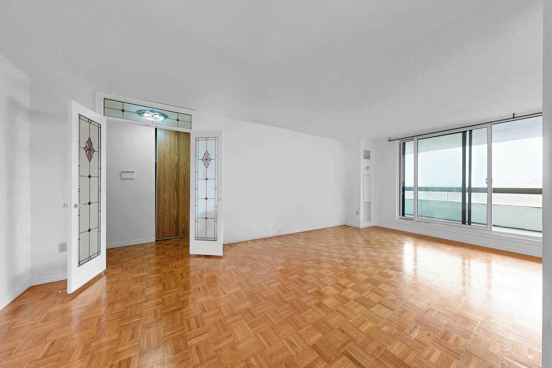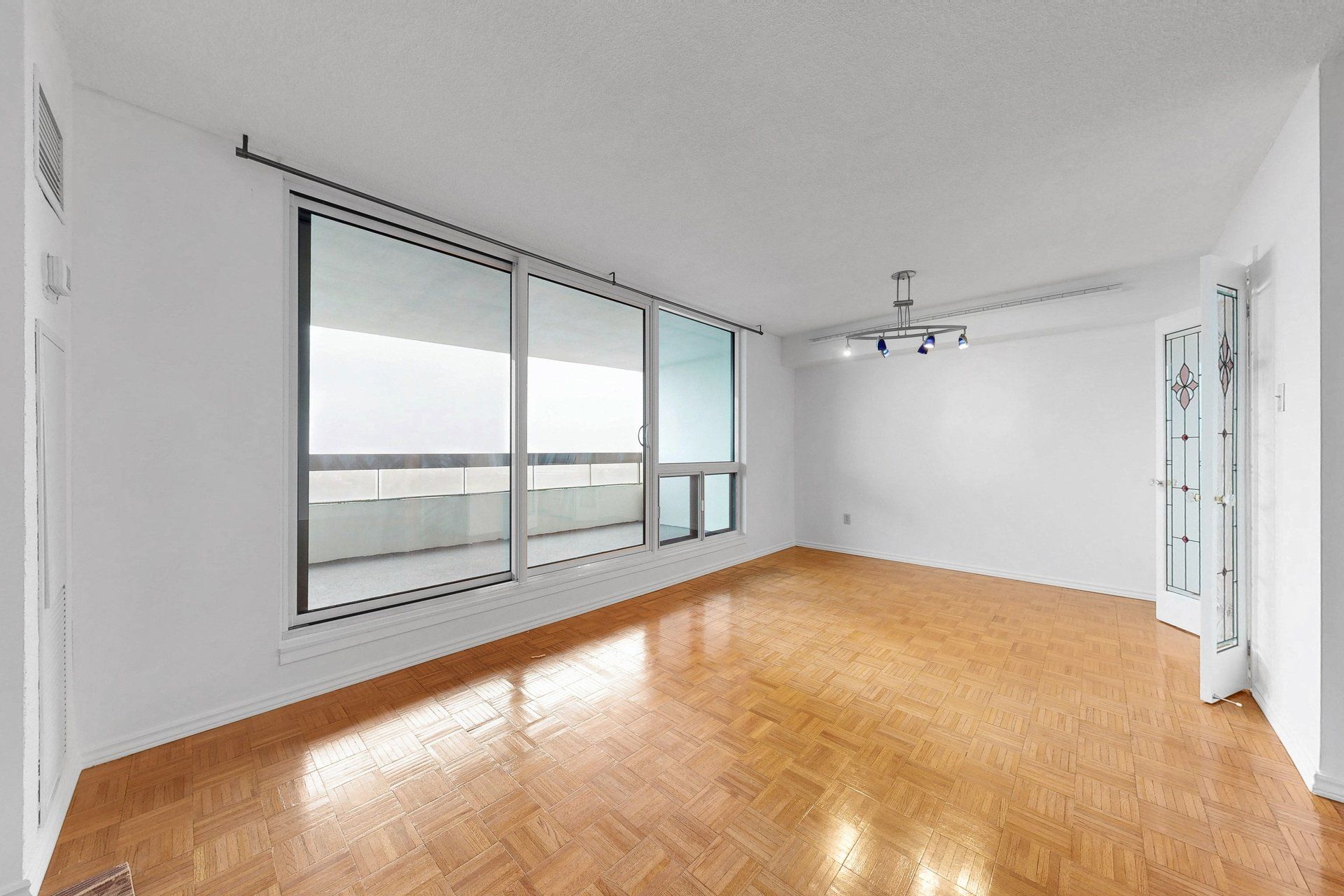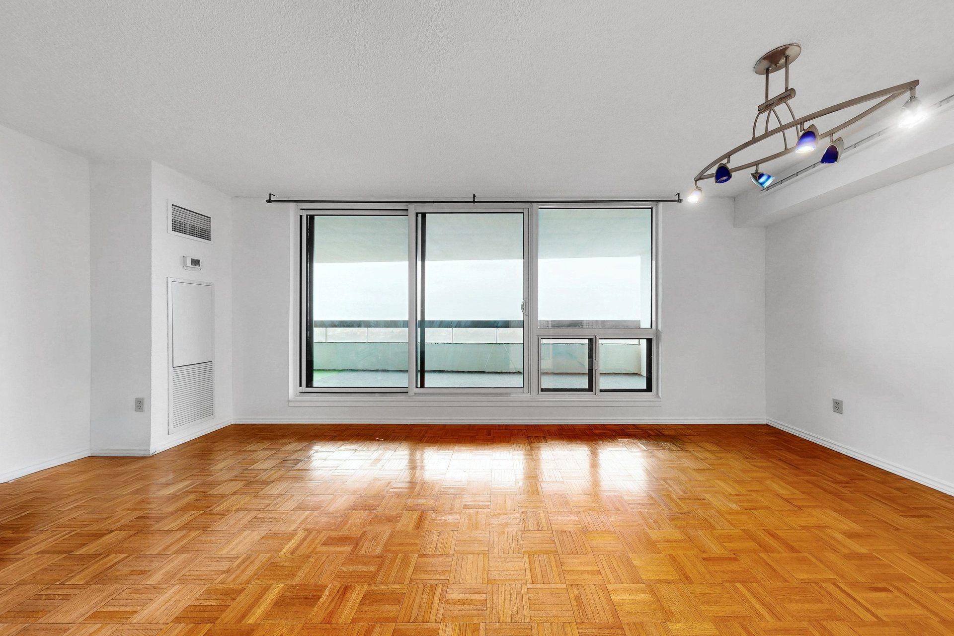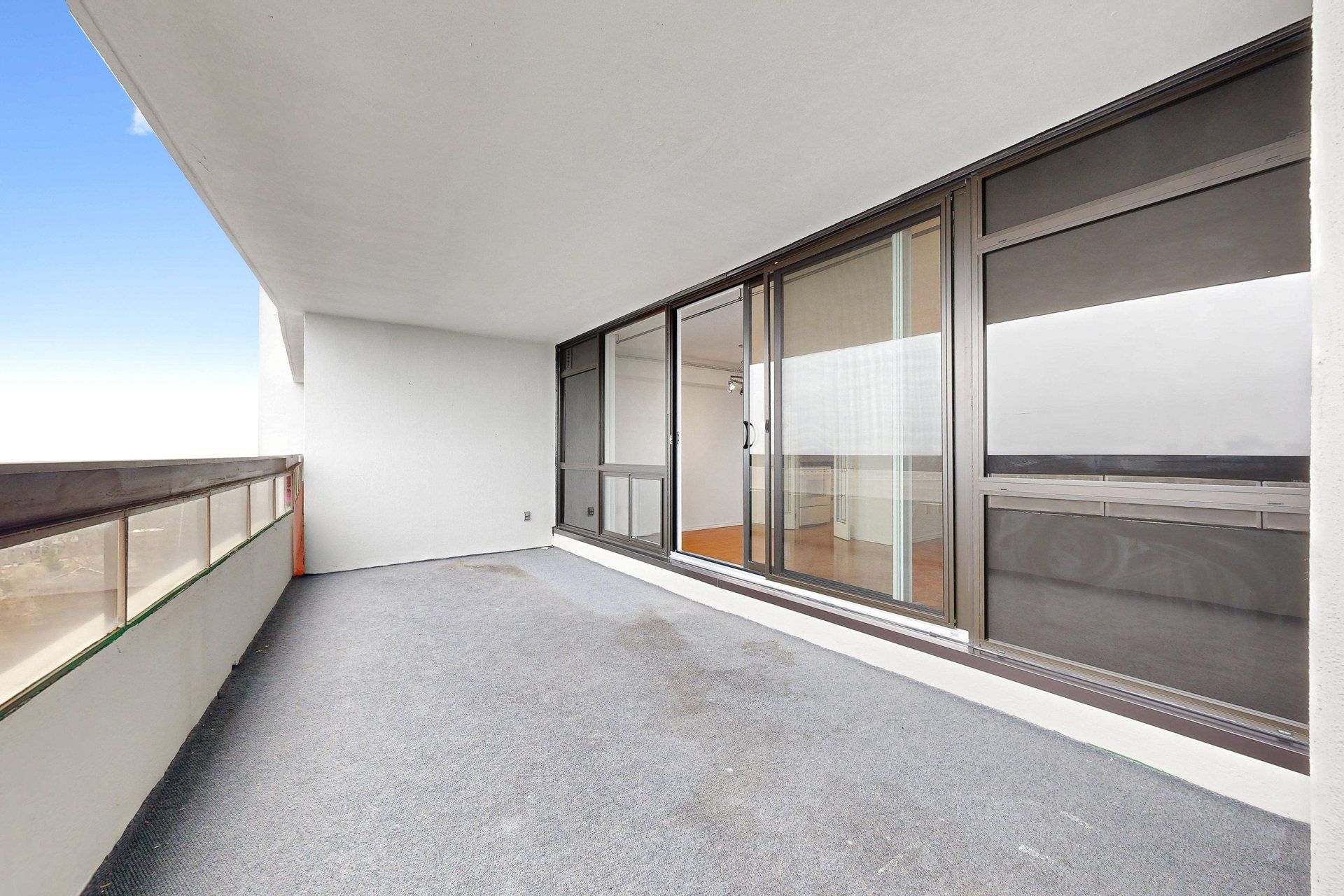 • Large private balcony with sweeping panoramic city views.