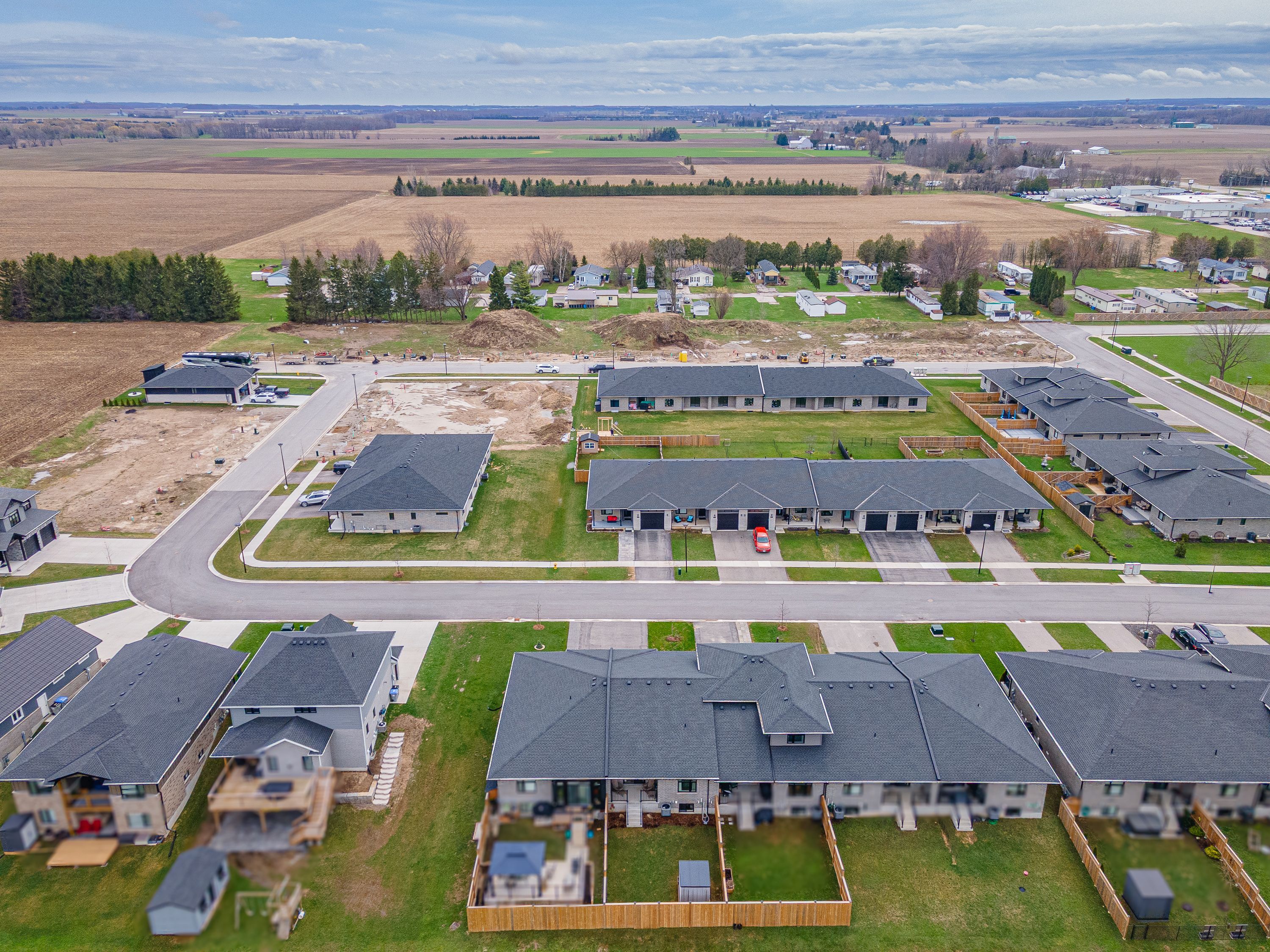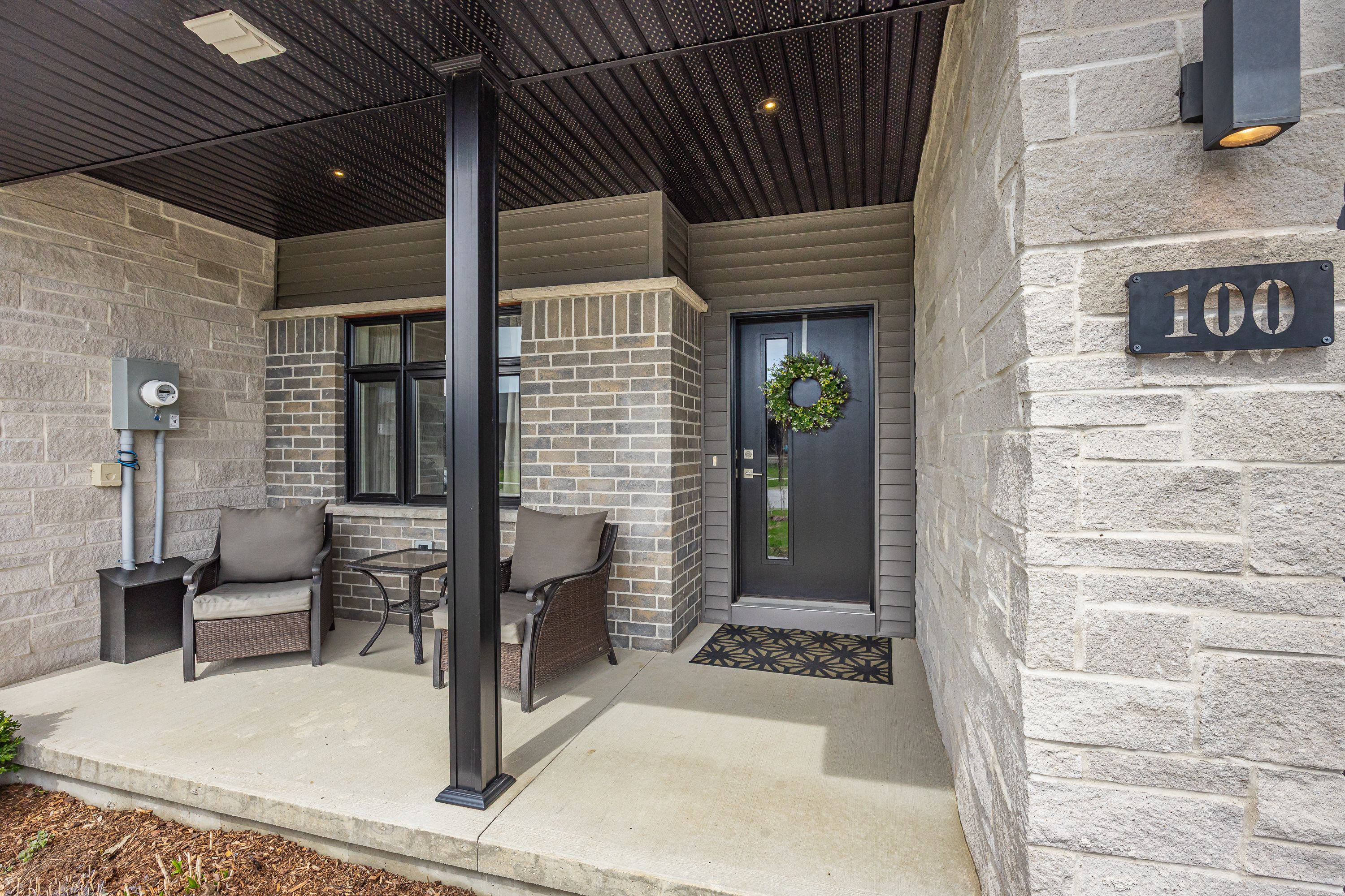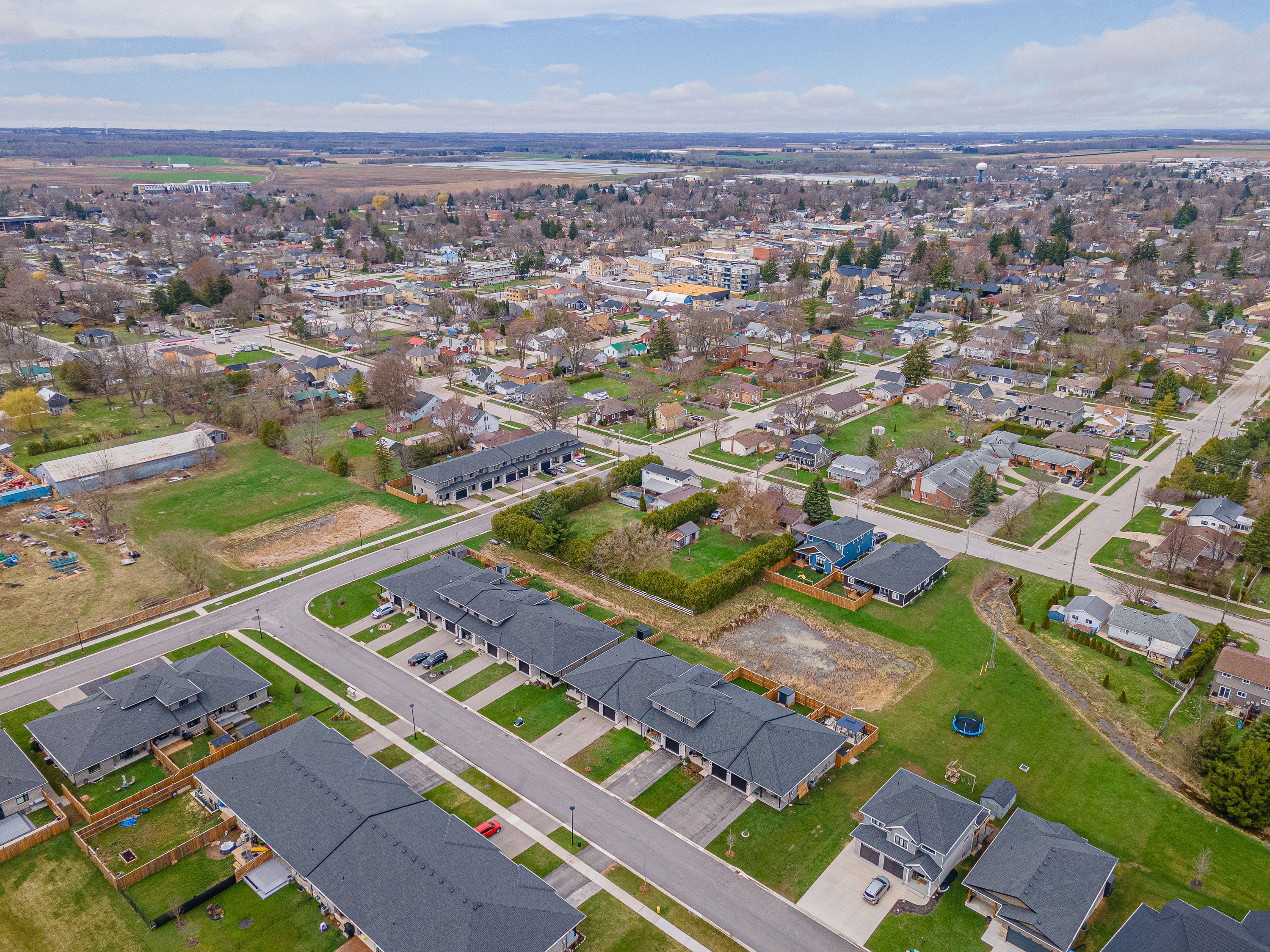 Welcome to 100 rowe avenue in the lovely community of exeter-just 20 minutes to the shores of lake huron and 30 minutes to london. This freehold bungalow townhome offers exceptional value in the highly desirable south pointe subdivision, close to all the amenities exeter has to offer, including grocery stores, medical and dental centres, walking trails, golf courses, shops, and restaurants. Built in 2022, the hudson model features a well-thought-out floor plan with two generously sized bedrooms, including an oversized primary suite complete with a large walk-in closet and a convenient 3-piece ensuite. A 4-piece bathroom is ideally located adjacent to the second bedroom. The home also offers a spacious laundry closet with a black stainless steel lg thinq stackable washer and dryer, along with additional storage space for everyday essentials. The open-concept main living area seamlessly blends style and function, featuring a well-appointed kitchen with quartz countertops, subway tile backsplash, stainless steel appliances, and an island with seating. The dining area flows effortlessly into the bright and inviting living space, filled with natural light from sliding patio doors and transom windows. Step outside to a fully fenced backyard featuring a large covered deck, an 8x8 storage shed, and peaceful pond views-perfect for relaxing or entertaining. The unspoiled lower level offers excellent development potential, with space for an additional bedroom (with egress window) and a generous recreation area. Additional highlights include an attached garage with inside entry, covered front porch, natural gas bbq line, window coverings throughout, beautifully landscaped perennial gardens, additional trees & seeded front lawn-the list goes on! Enjoy low-maintenance living with no condo fees, upgraded finishes throughout, and a quiet, convenient location. This home must be seen to be truly appreciated!