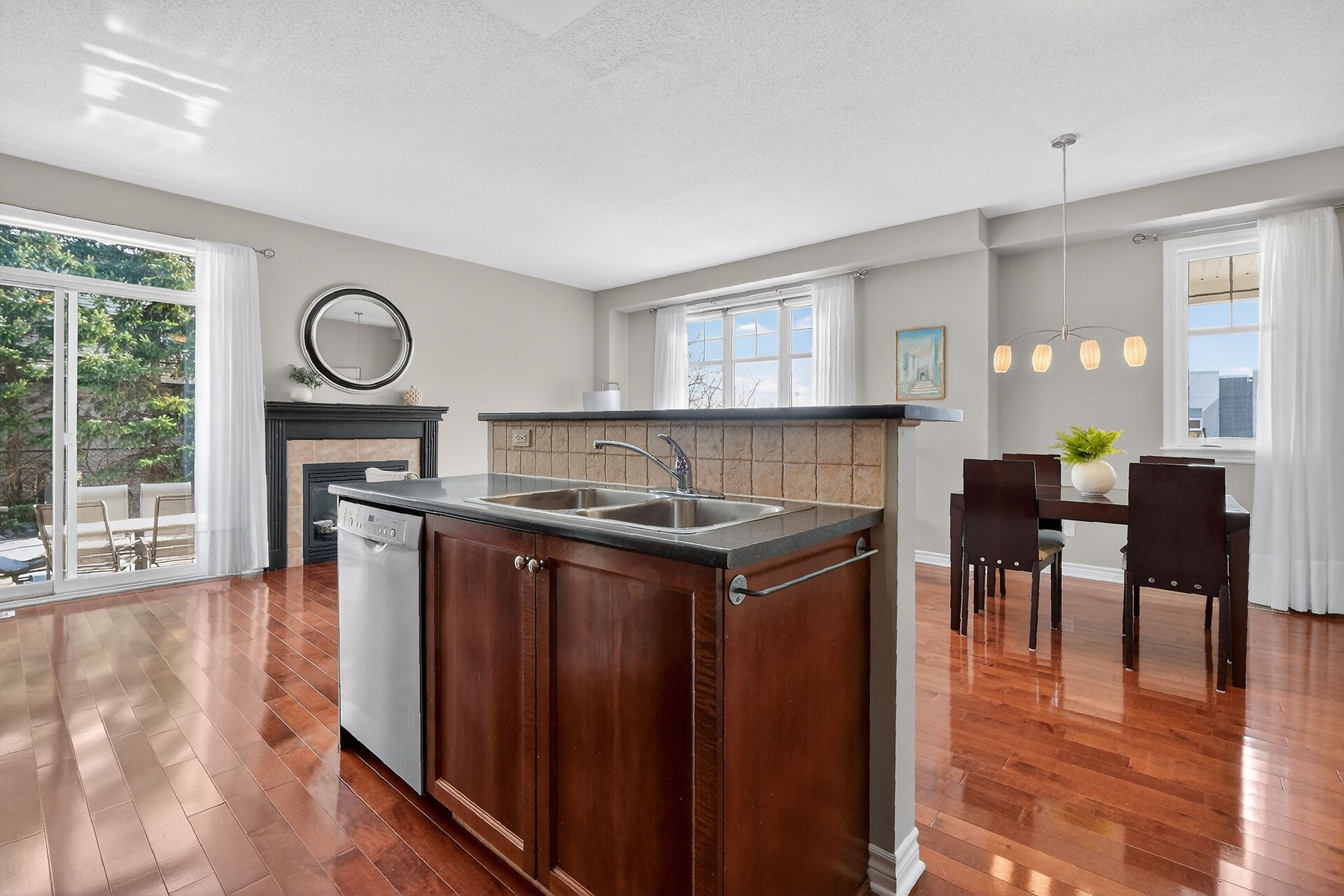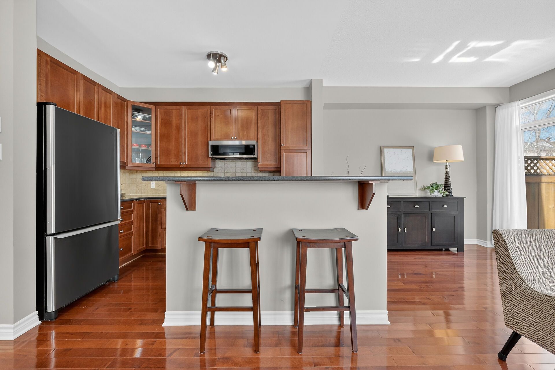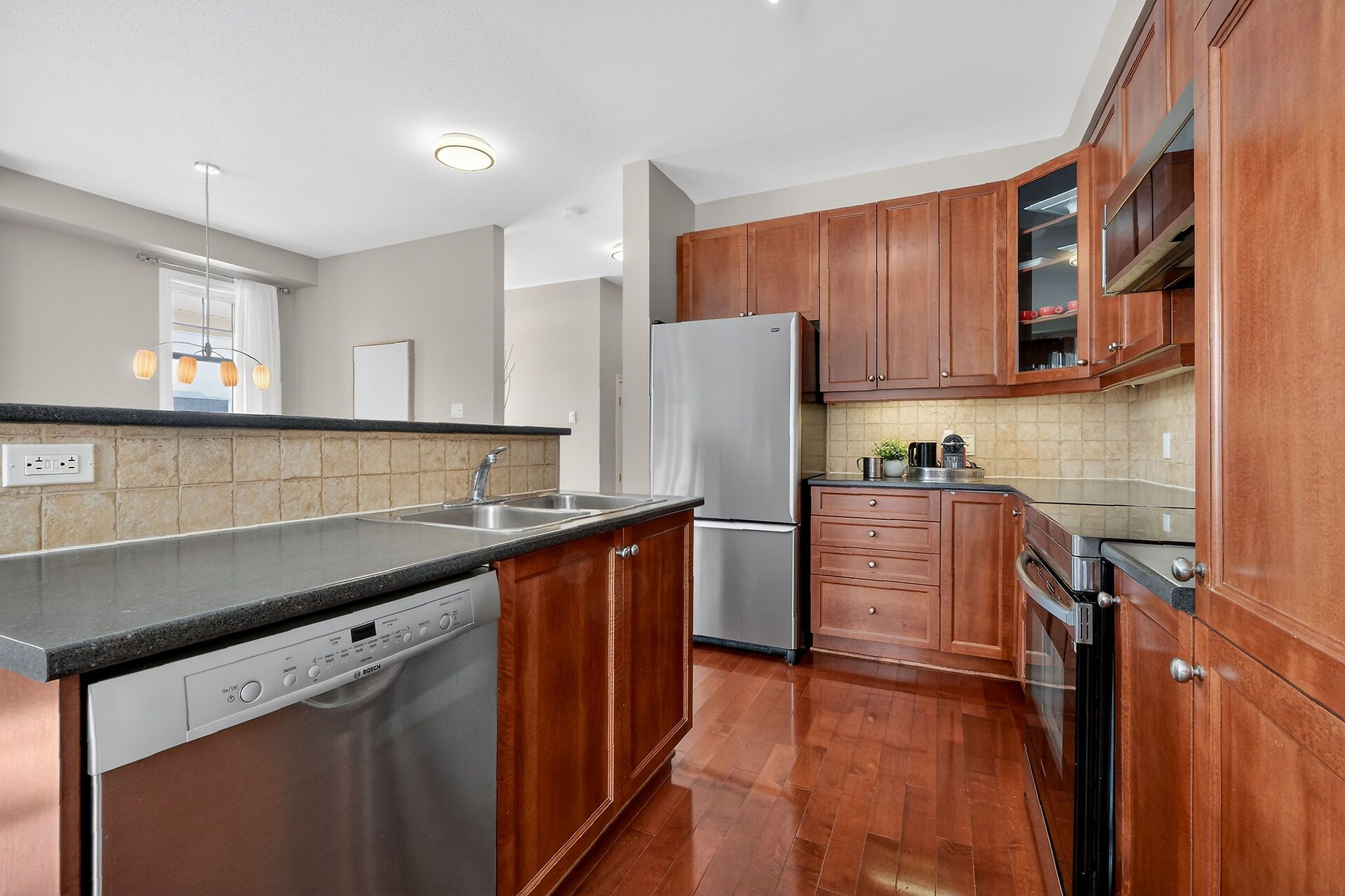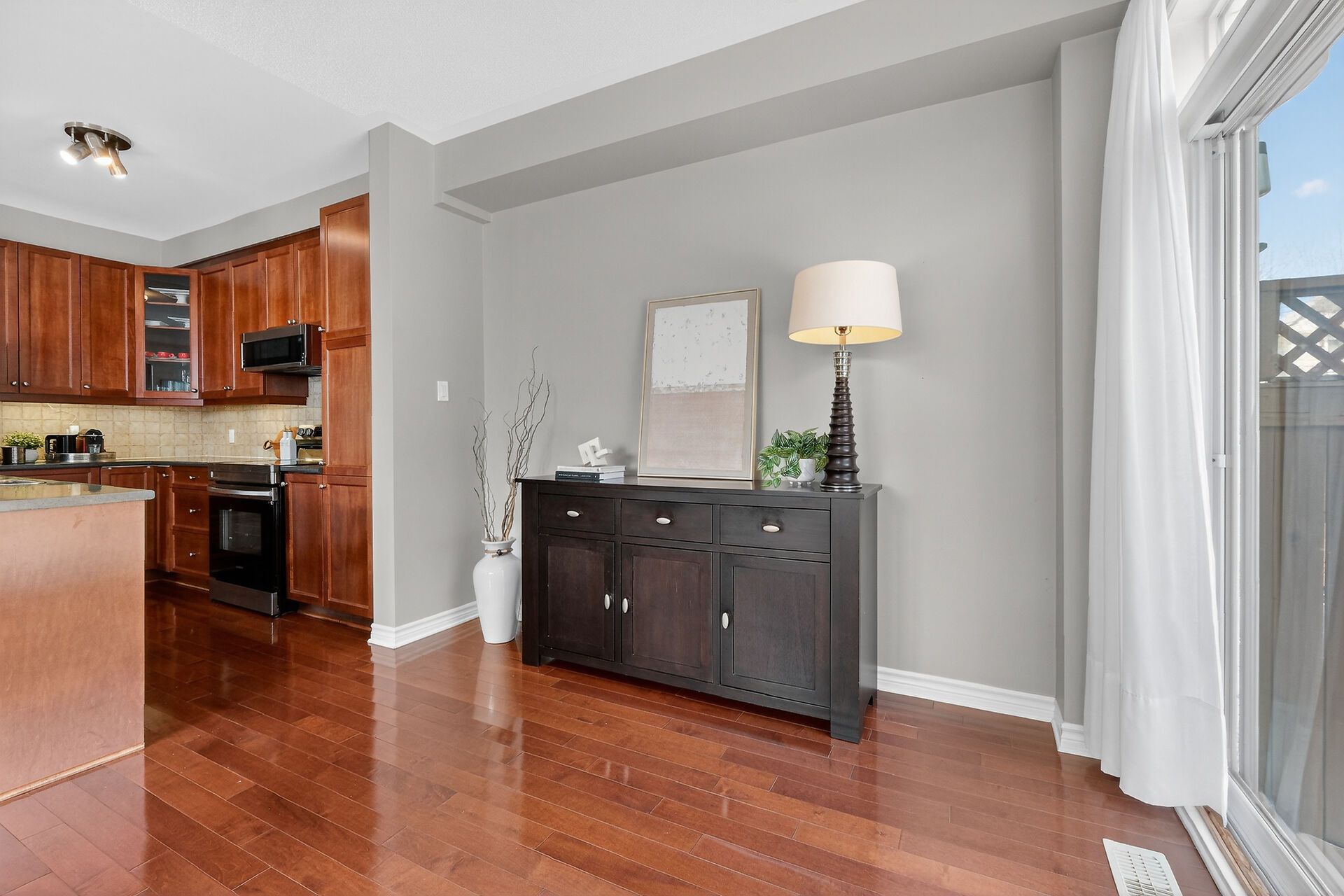 • Bright main floor with 9-foot ceilings and rich hardwood flooring.