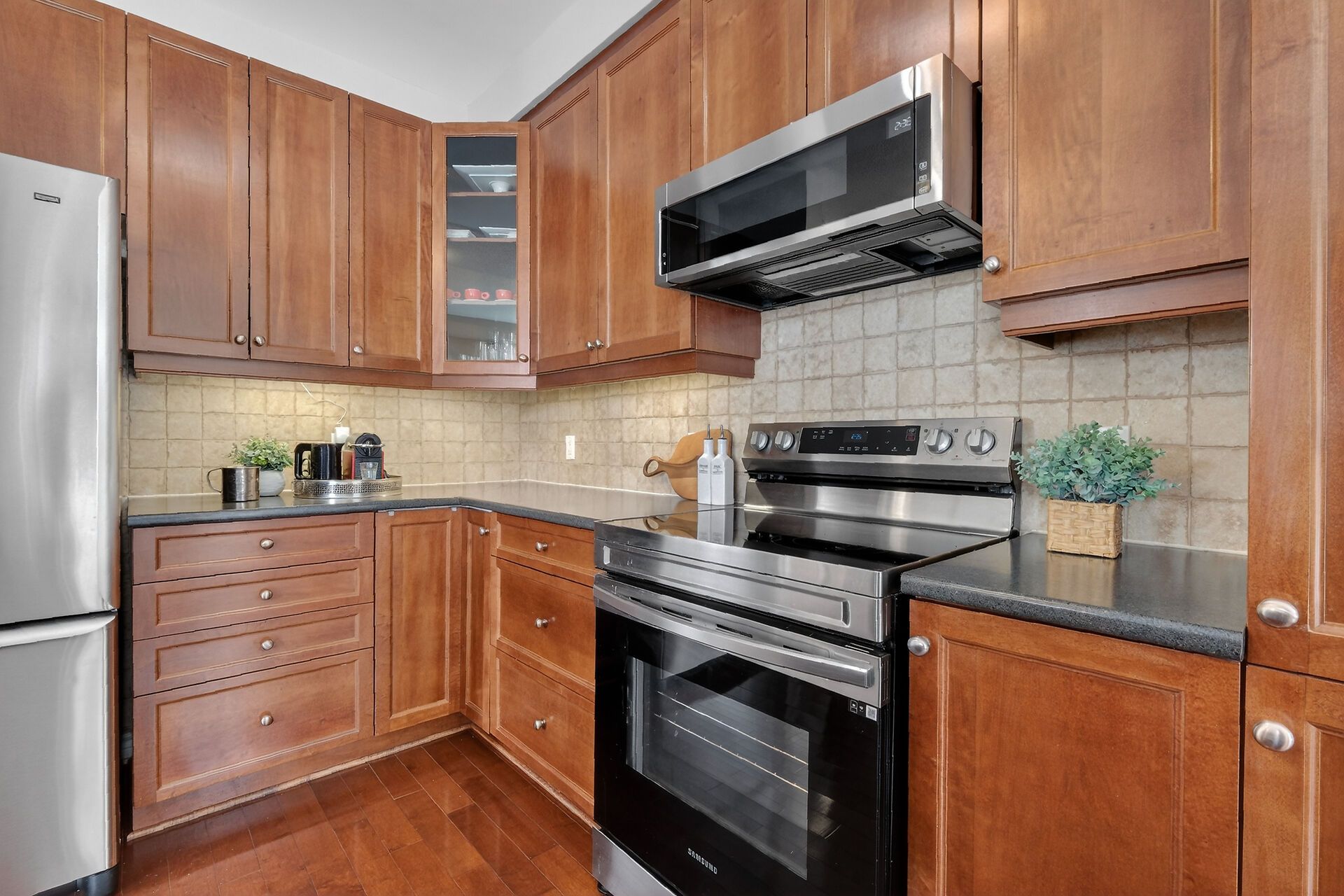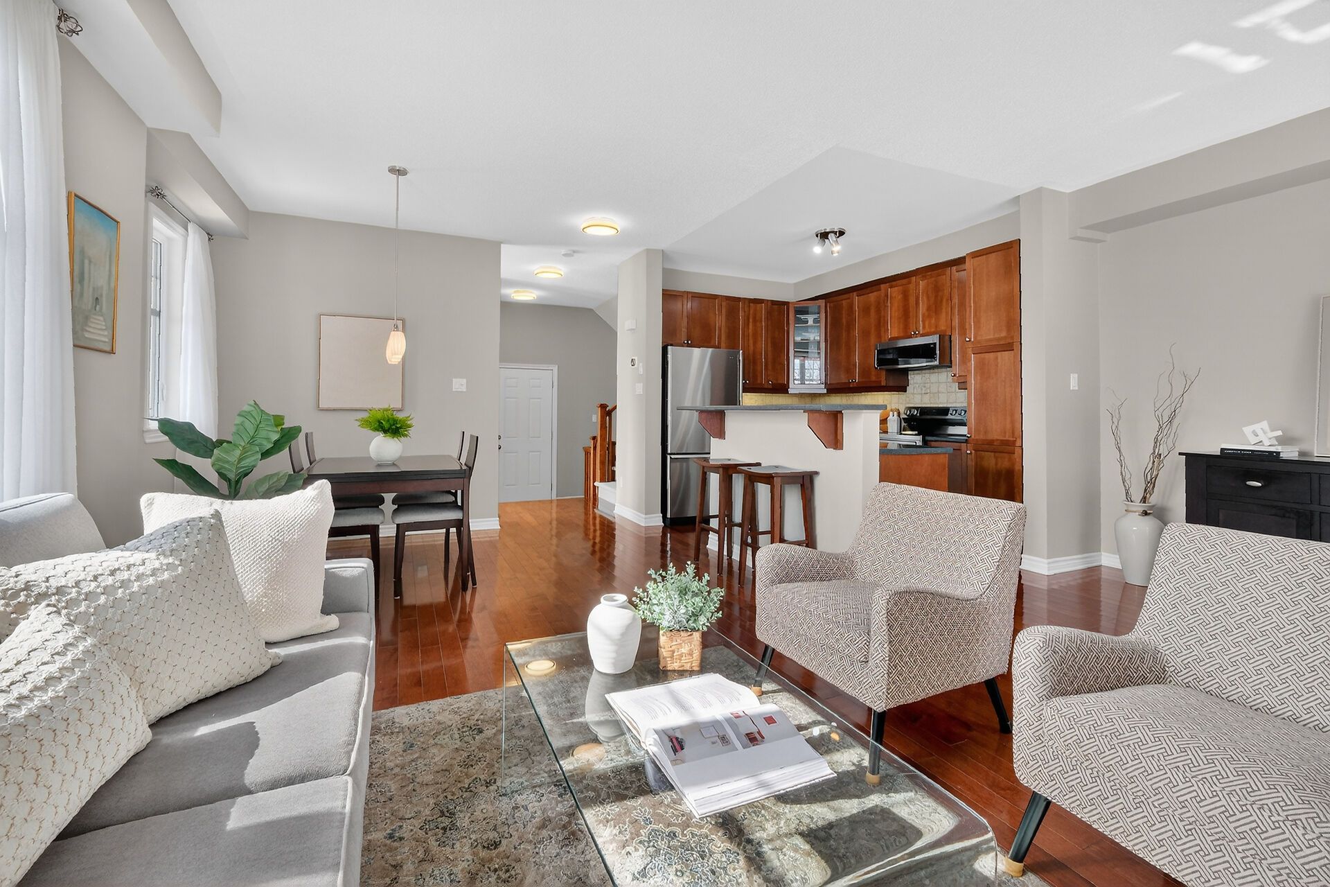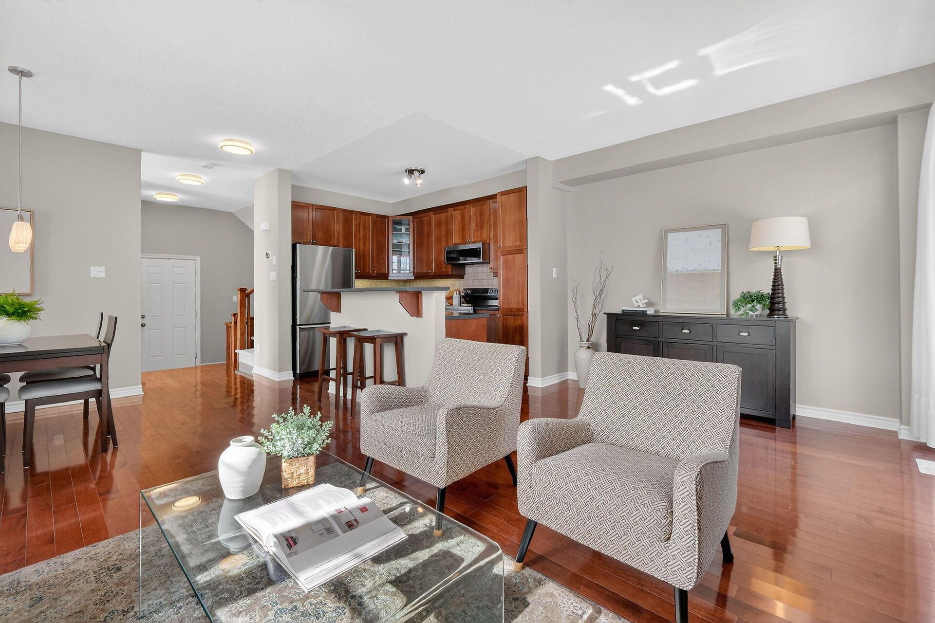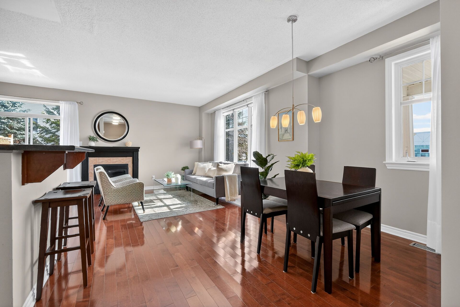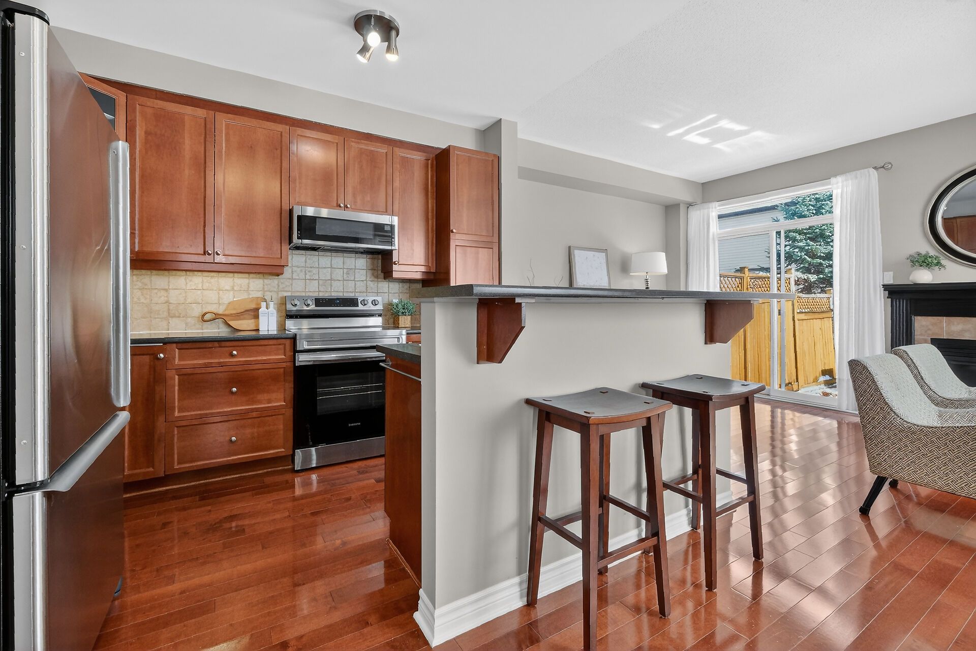 • Bright main floor with 9-foot ceilings and rich hardwood flooring.