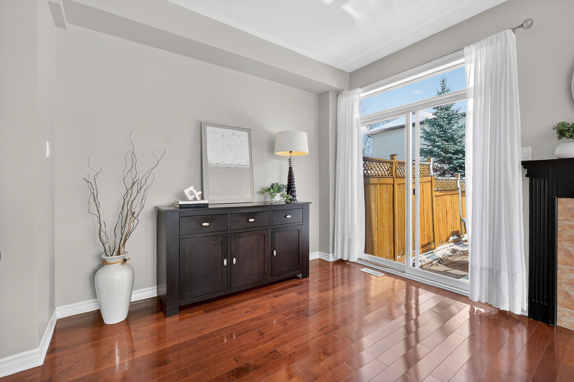 • Inviting living room with a natural gas fireplace for warmth and comfort.