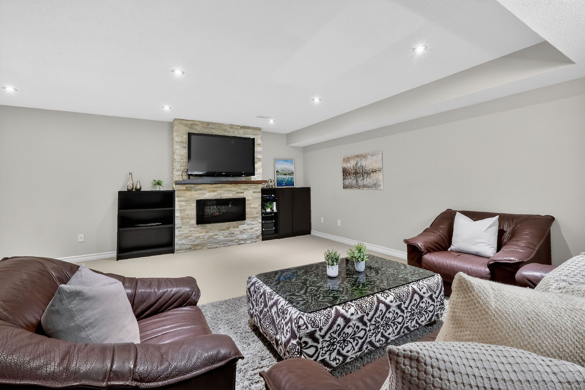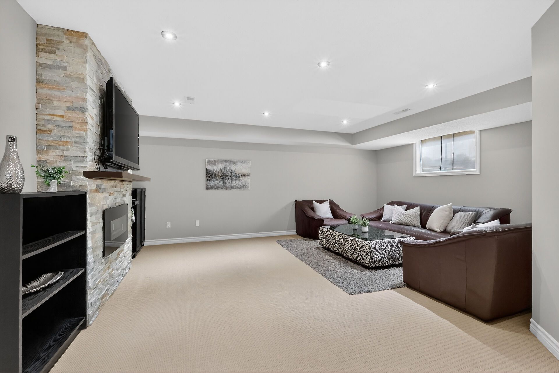 • Fully finished lower level with cozy family room and electric fireplace.