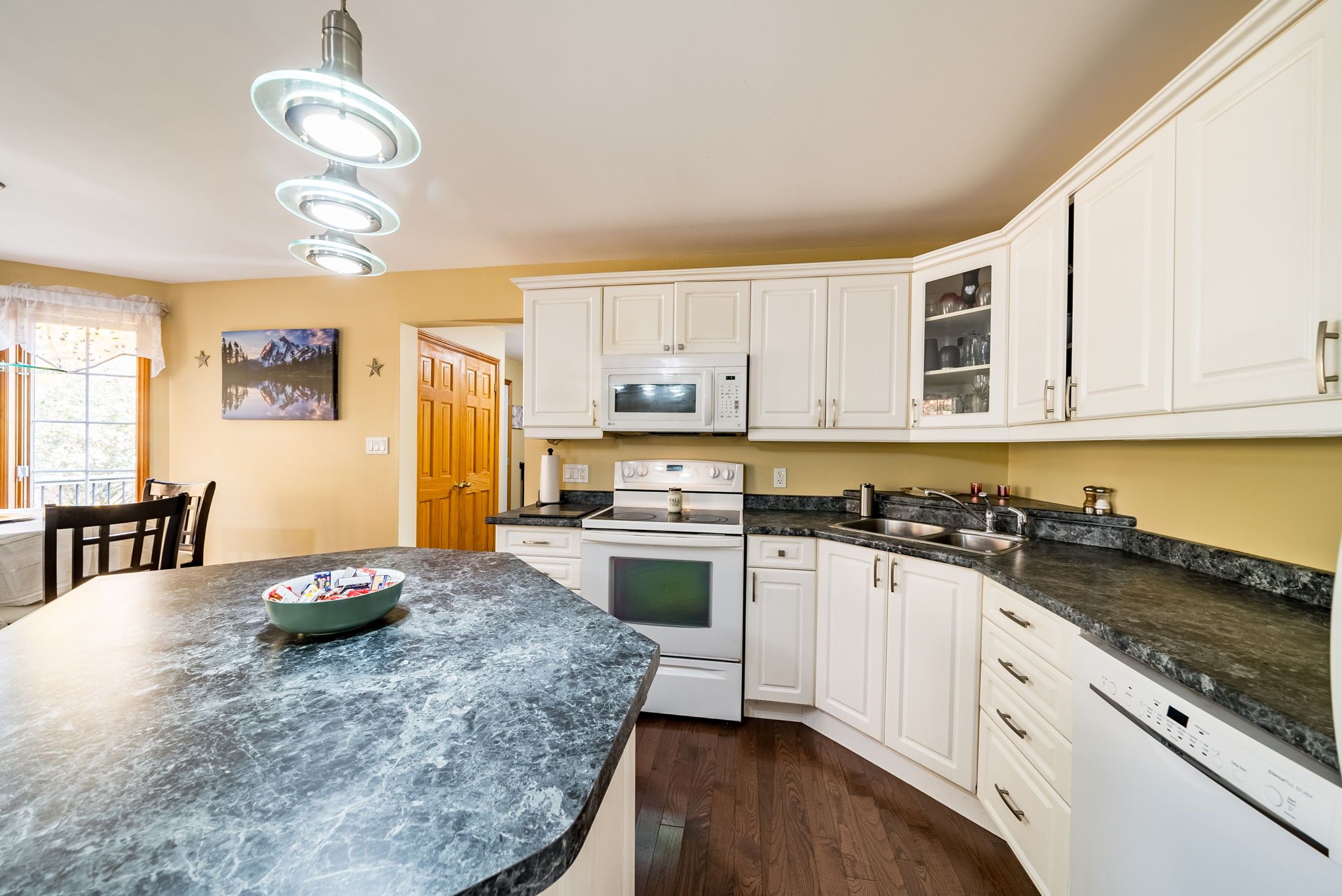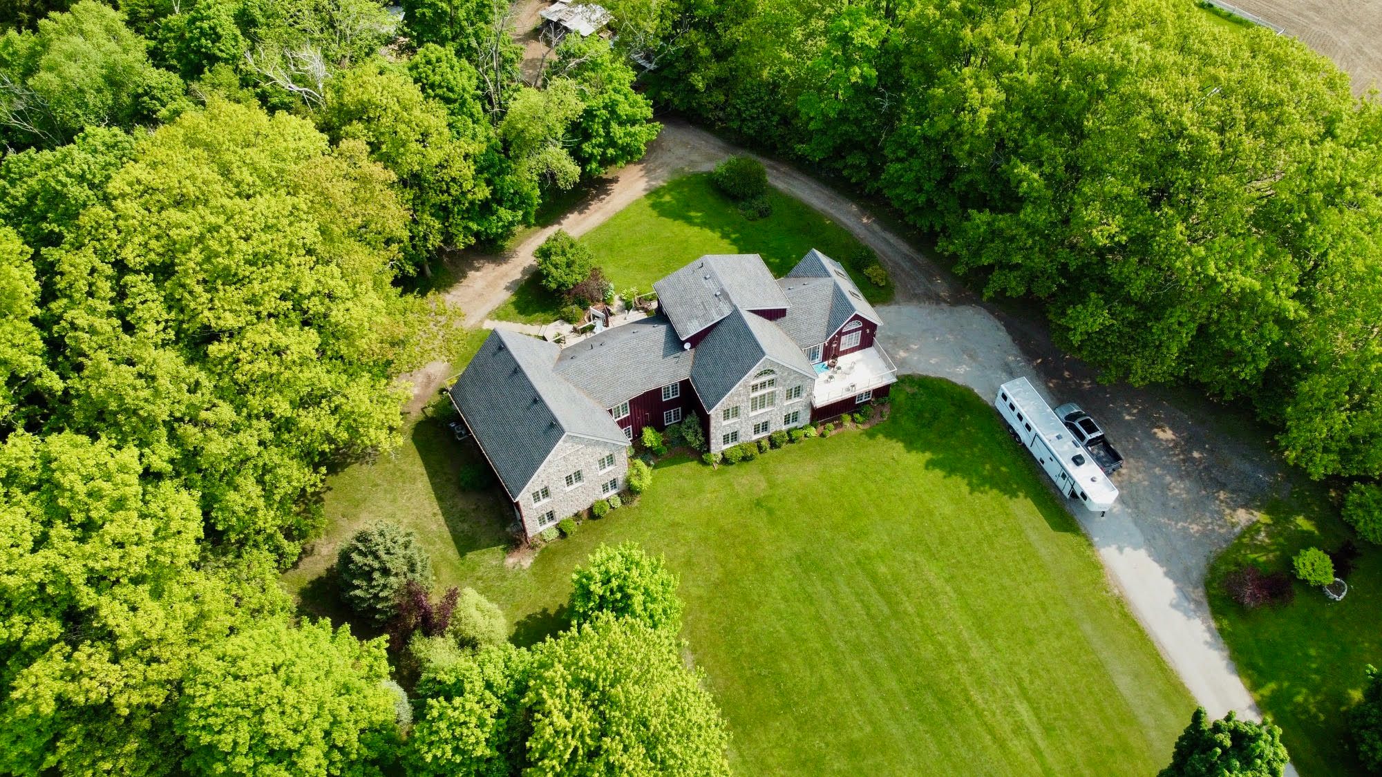 • Located on a quiet cul-de-sac on a 1.25-acre treed lot.