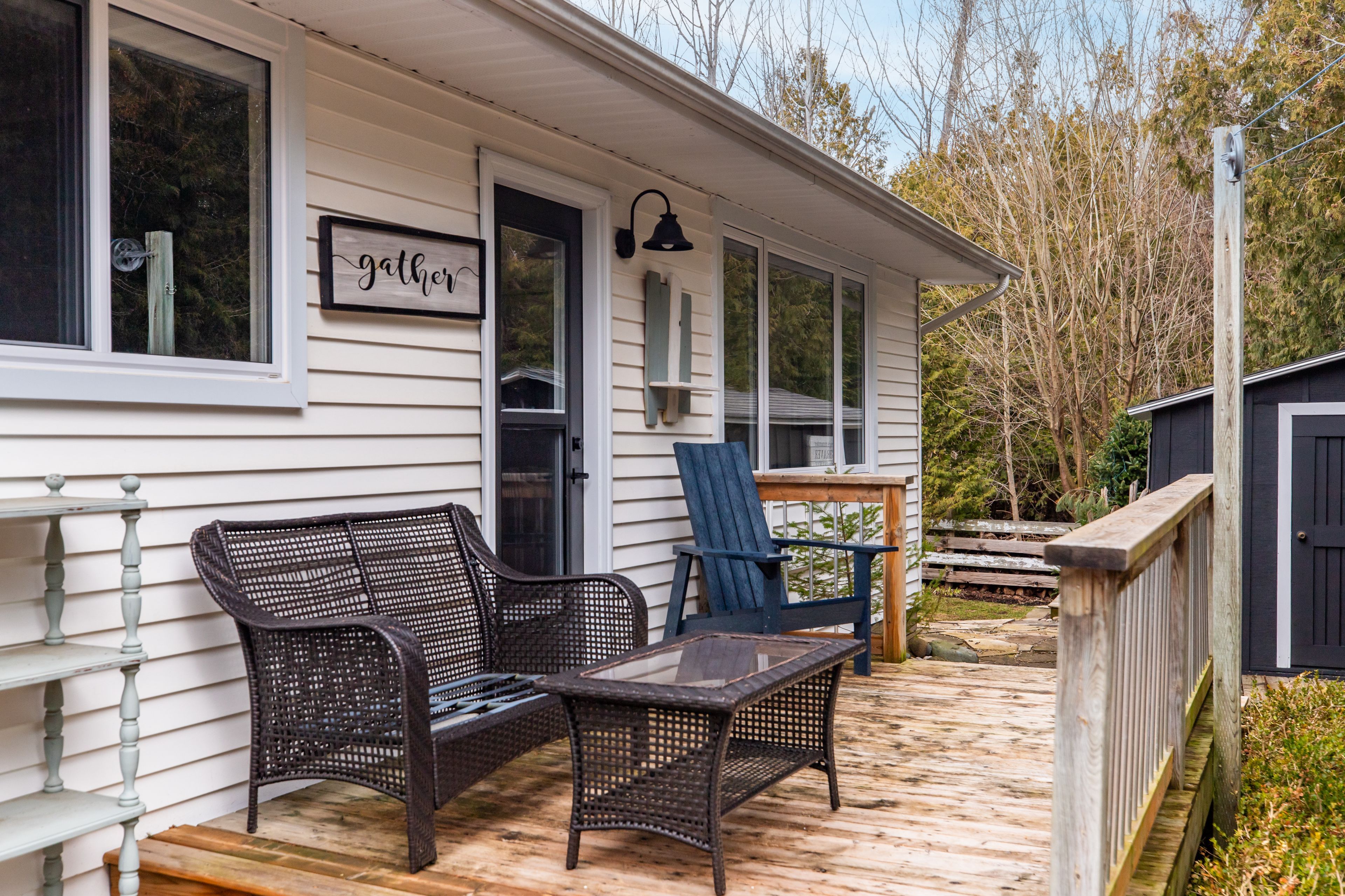 Three bedroom bungalow neatly tucked away offering the perfect blend of privacy, proximity, and poolside living! Follow the charming garden fence along the lane and step into your own private oasis-an inviting space designed for relaxed days and easy entertaining. With plenty of parking for family and friends, hosting weekend get-togethers or spontaneous summer visits is effortless. Inside, the home opens into a bright, spacious living area anchored by a large central island-ideal for casual meals, morning coffee, or gathering with loved ones. The updated kitchen features easy-care vinyl tile flooring, making cleanup a breeze so you can spend more time enjoying life. Whether you're unwinding with a good book or sharing laughter with friends, this open-concept space adapts beautifully to every mood. All three bedrooms are thoughtfully laid out, complemented by a convenient built-in laundry suite and a full, updated bathroom. Tasteful décor throughout creates a warm, welcoming atmosphere, making this home truly move-in ready. Step outside to discover front and rear decks that invite you to linger a little longer-perfect for sunny breakfasts, evening barbecues, or simply soaking in the peaceful surroundings. The above-ground pool is sure to be a highlight, offering endless summer fun, a refreshing escape from the heat, and a place where kids and adults alike can create lasting memories. Located just three blocks from the heart of downtown southampton, across from the scenic saugeen river, and around the corner from everyday essentials, this home delivers both convenience and charm. Whether you're starting out, slowing down, or searching for a year-round retreat, this property captures the essence of easy, carefree living.