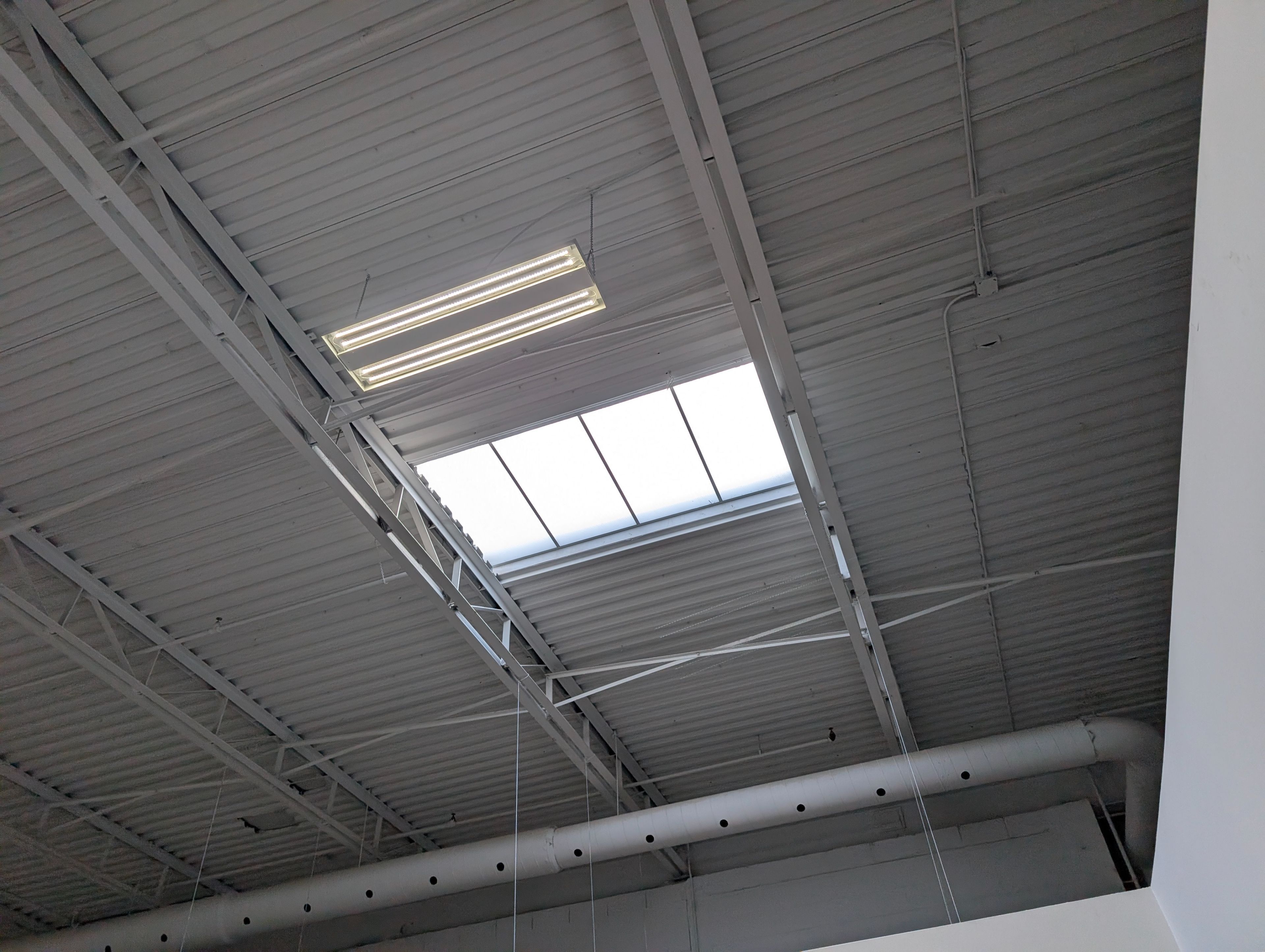 • Bright space featuring 17 ft. ceilings and skylights for natural light.