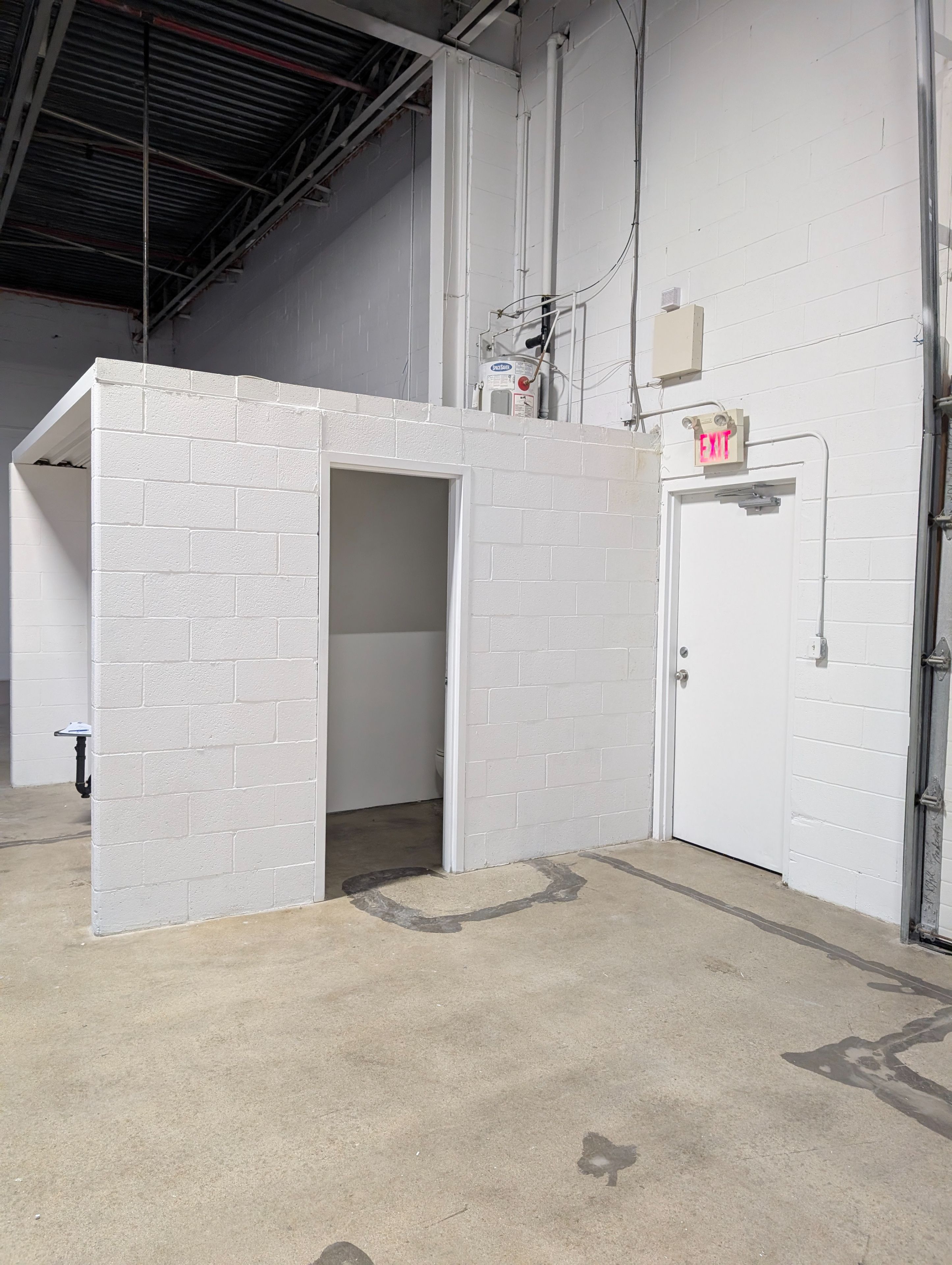 • Private washroom with plumbing ready for additional kitchenette setup.