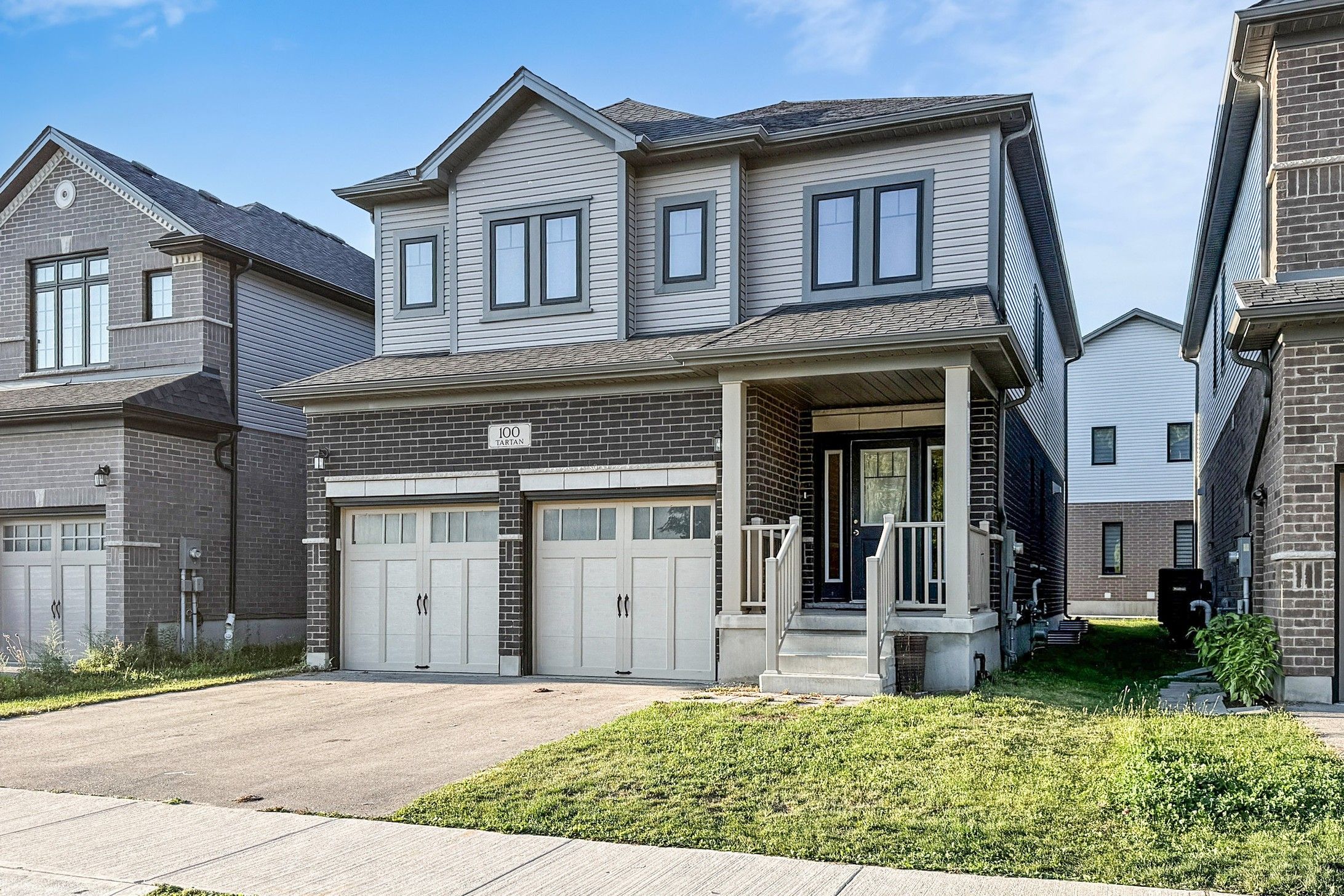 Welcome to 100 tartan avenue, a beautifully upgraded detached residence offering approximately 2,200 sq. Ft. Of thoughtfully designed living space. This elegant home features 9-foot ceilings on the main floor, upper level, and basement, creating a bright, airy feel throughout. The main floor offers a functional open-concept layout with a spacious great room, formal dining area, and an upgraded kitchen complete with extended cabinetry, pantry space, quartz/granite countertops, built-in microwave shelf, upgraded appliance package, and a large breakfast area with walk-out to the backyard. An oak staircase with oak railings and spindles adds warmth and architectural detail. Upstairs, the home features four generously sized bedrooms, including a large primary retreat with walk-in closet and a spa-inspired ensuite showcasing an upgraded ceramic shower with quartz seat and premium fixtures. A versatile second-floor family room provides additional living space ideal for relaxing, working from home, or family use. The 9-ft basement offers excellent future potential with enlarged windows and ample open space. Additional highlights include central air conditioning, upgraded transom windows that enhance natural light, pocket doors, and thoughtful lighting and electrical upgrades throughout. Conveniently located close to parks, schools, trails, and everyday amenities, this home combines quality finishes, extensive upgrades, and a layout designed for modern family living.