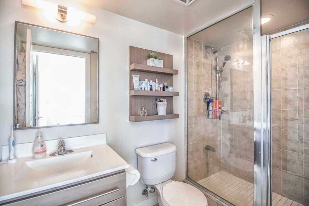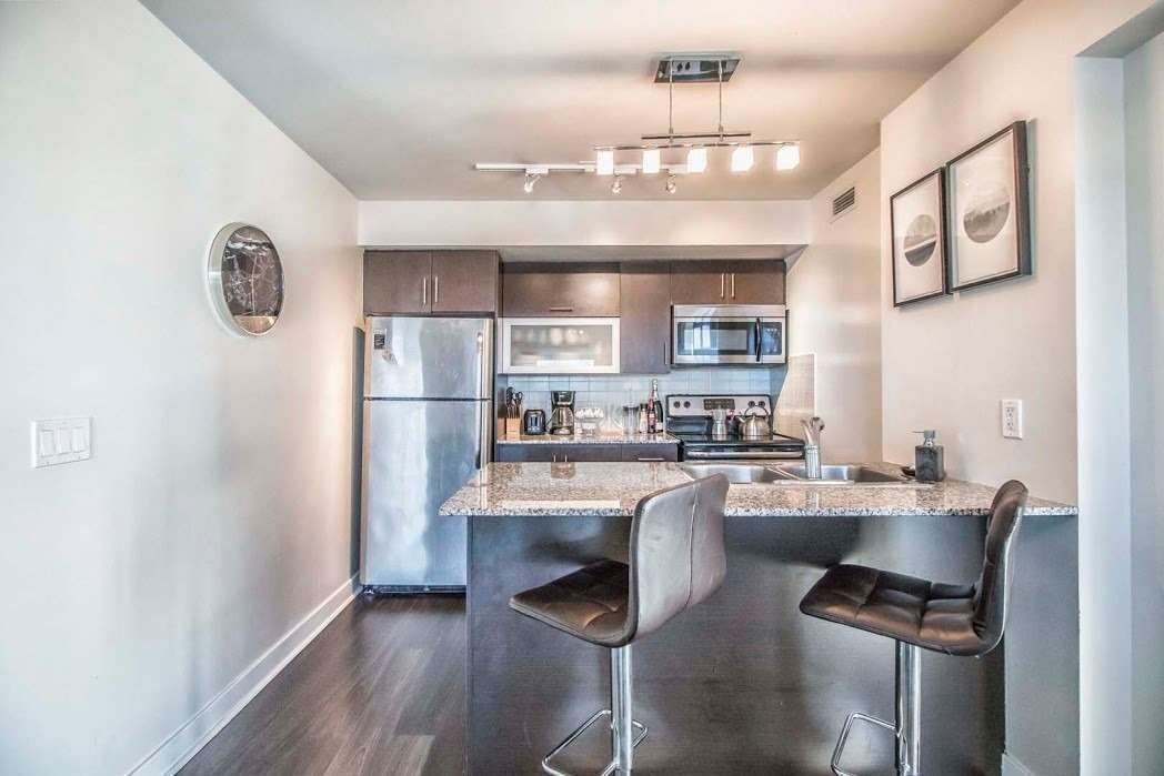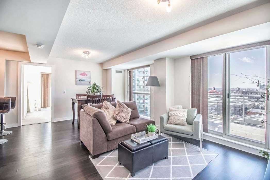 Professionally cleaned, freshly re-painted & sparkling! This captivating corner suite with a split floor plan & sensational south west views is one of the largest 2 bed 2 bath units in the building. Spanning over 910+ of interior square footage + 2 expansive balconies with over 220+ sq ft of outdoor living. Thoughtfully designed interiors with a split two-bedroom, two-bathroom layout maximizing space with zero wasted square footage, offering stylish modern finishes & three separate walk-outs. The modernized kitchen features granite counters, subway tile back splash, full-sized stainless steel appliances & a breakfast bar for extra prep/chopping space + meals-on-the-go. Flooding the space with natural light, fabulous floor-to-ceiling windows line the entire south & west wings of this suite, lining the living & dining areas + both bedrooms. There's a plethora of space for a full-sized dining table & extensive entertainment set-up in the open concept living/dining space with a walk-out to one of two private balconies. Laying on opposite sides of the unit, both bedrooms are expansive & boast floor-to-ceiling windows, walk-outs to separate private balconies, plush cozy carpet & generous closet space. The primary bedroom features an exclusive walk-in closet & 3-piece spa-inspired ensuite, while the well-appointed second bedroom comes with a double-door closet & a 4-piece resort-style bath. Both bathrooms feature luxurious finishes & extra storage space - enjoy a glass shower stall in your primary & a 2-in-1 shower/soaker tub in your guest bath. Choose your own adventure with lake & sunset views from your two outdoor oases - enjoy a warm cup of coffee while watching the water peacefully rippling or indulge in a glass of bubbly while chasing endless cotton candy sunsets. Includes parking & a storage locker! Situated in the exclusive liberty village with premier access to trendy cafes, restaurants, boutiques, & green spaces, with the best of toronto just steps from your door