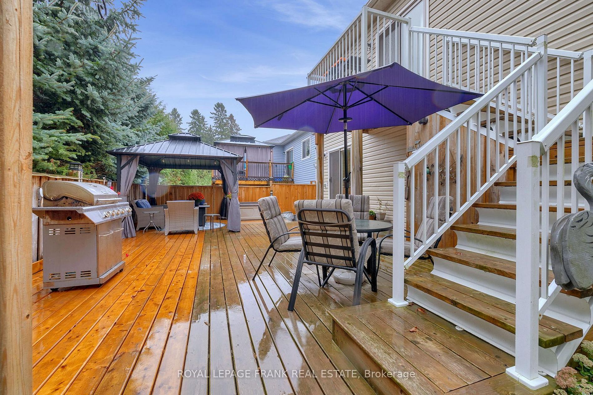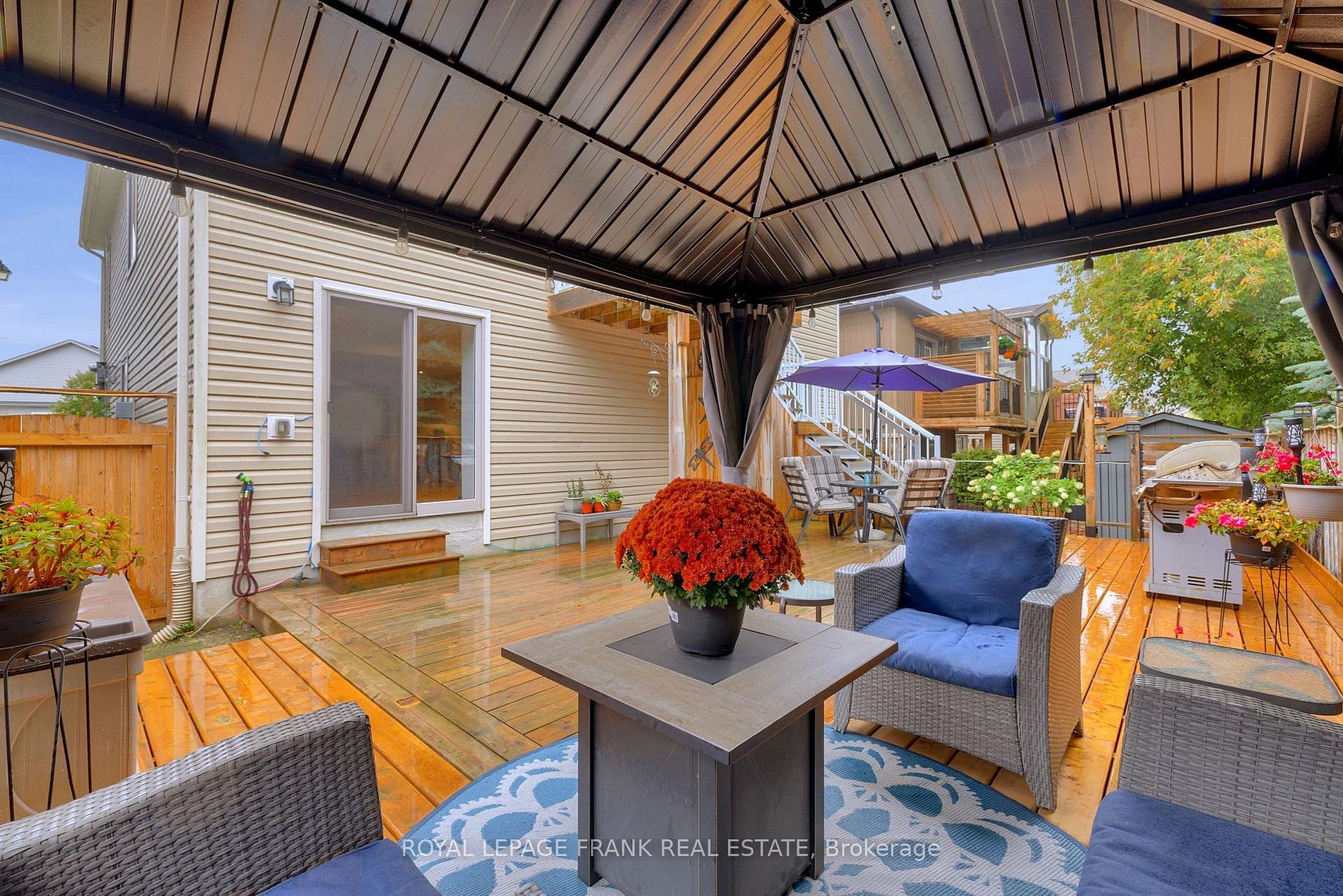 • Finished backyard oasis with a deck, gazebo, and dining area.