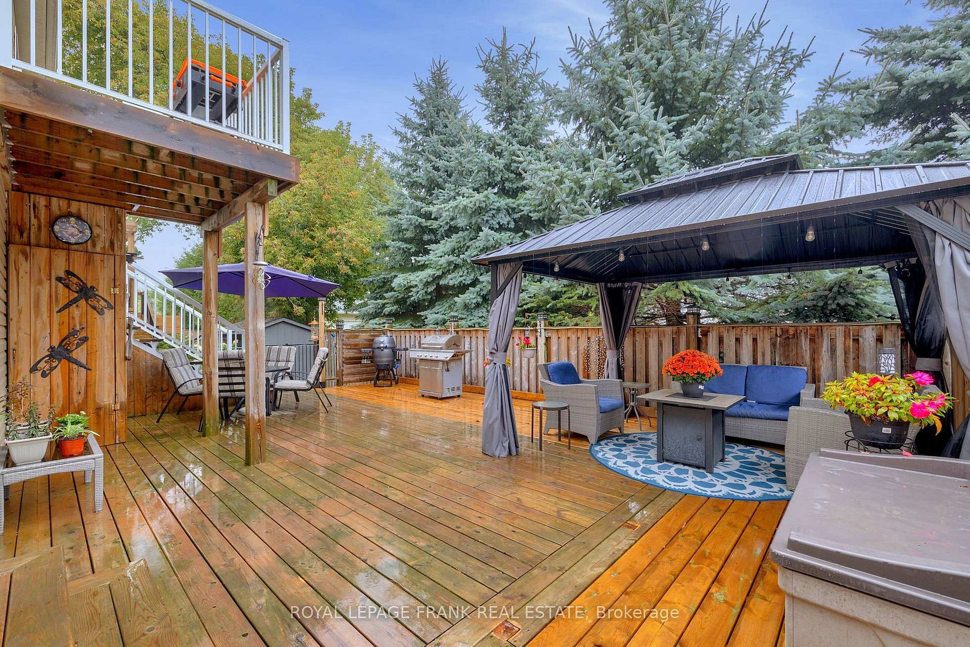 • Finished backyard oasis featuring a deck, gazebo, and outdoor dining area.