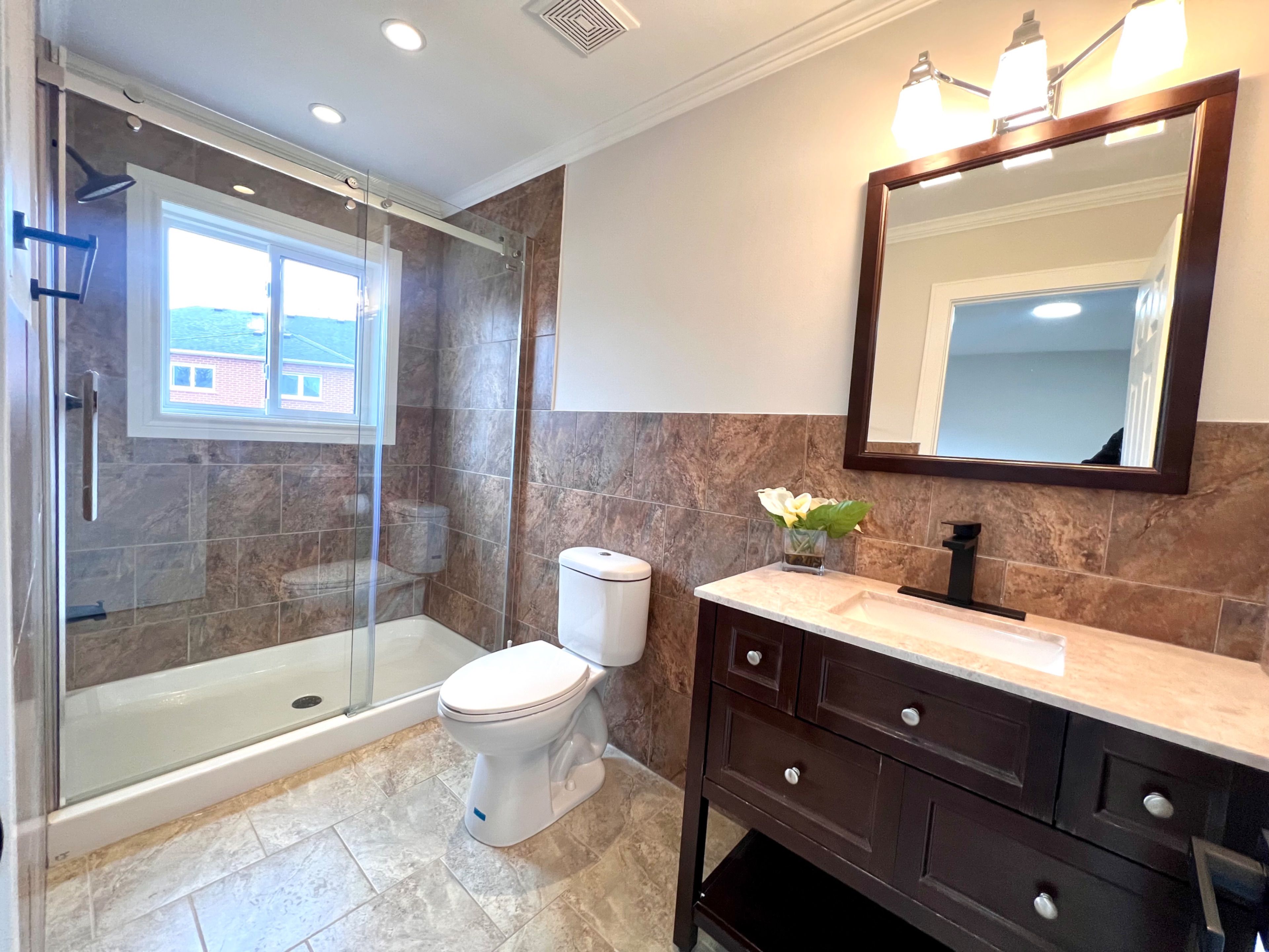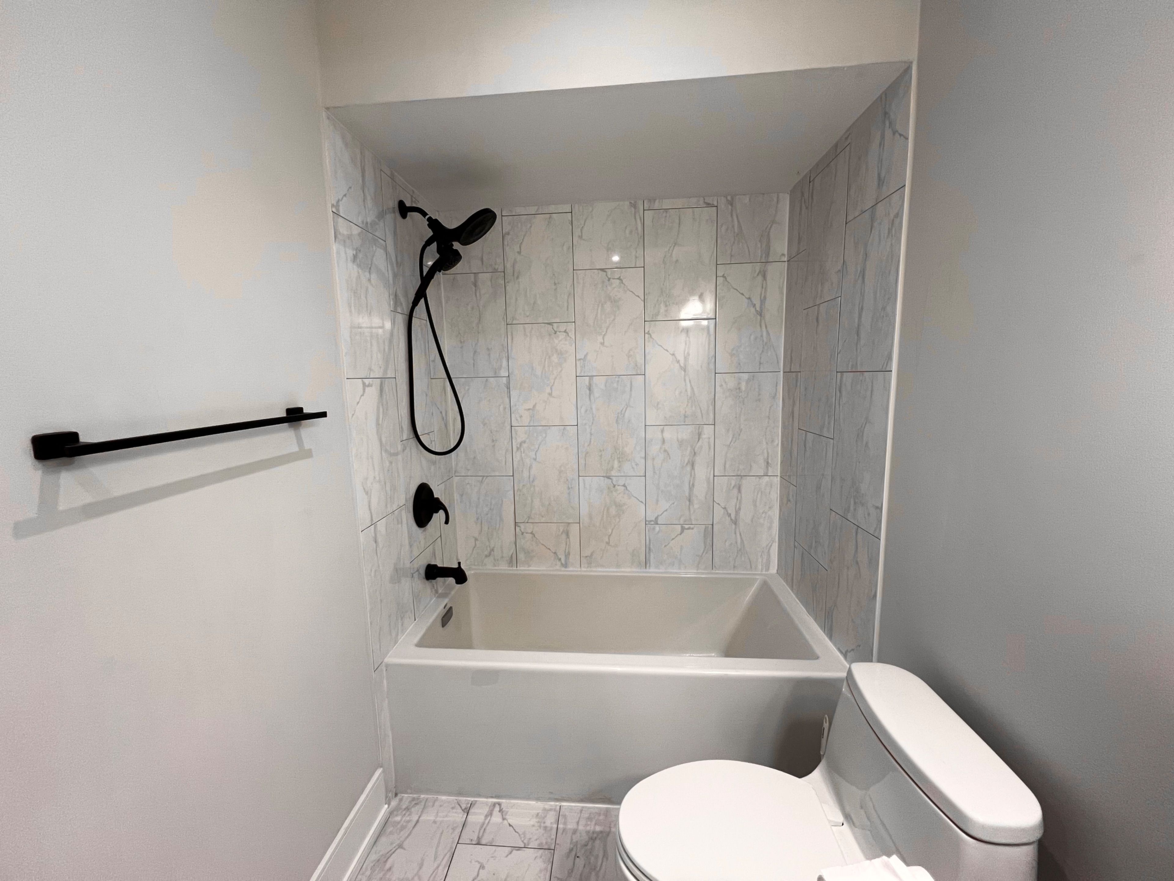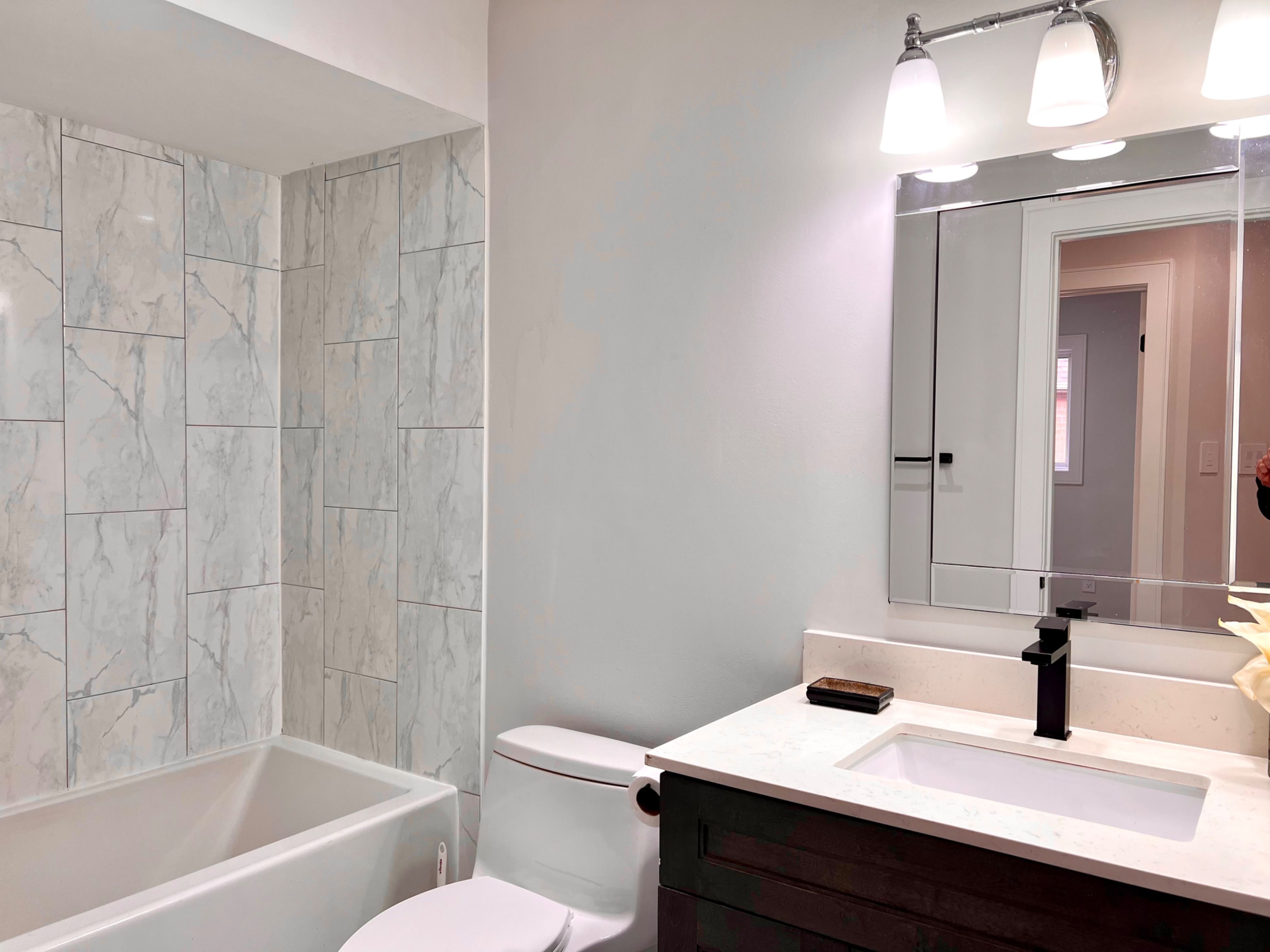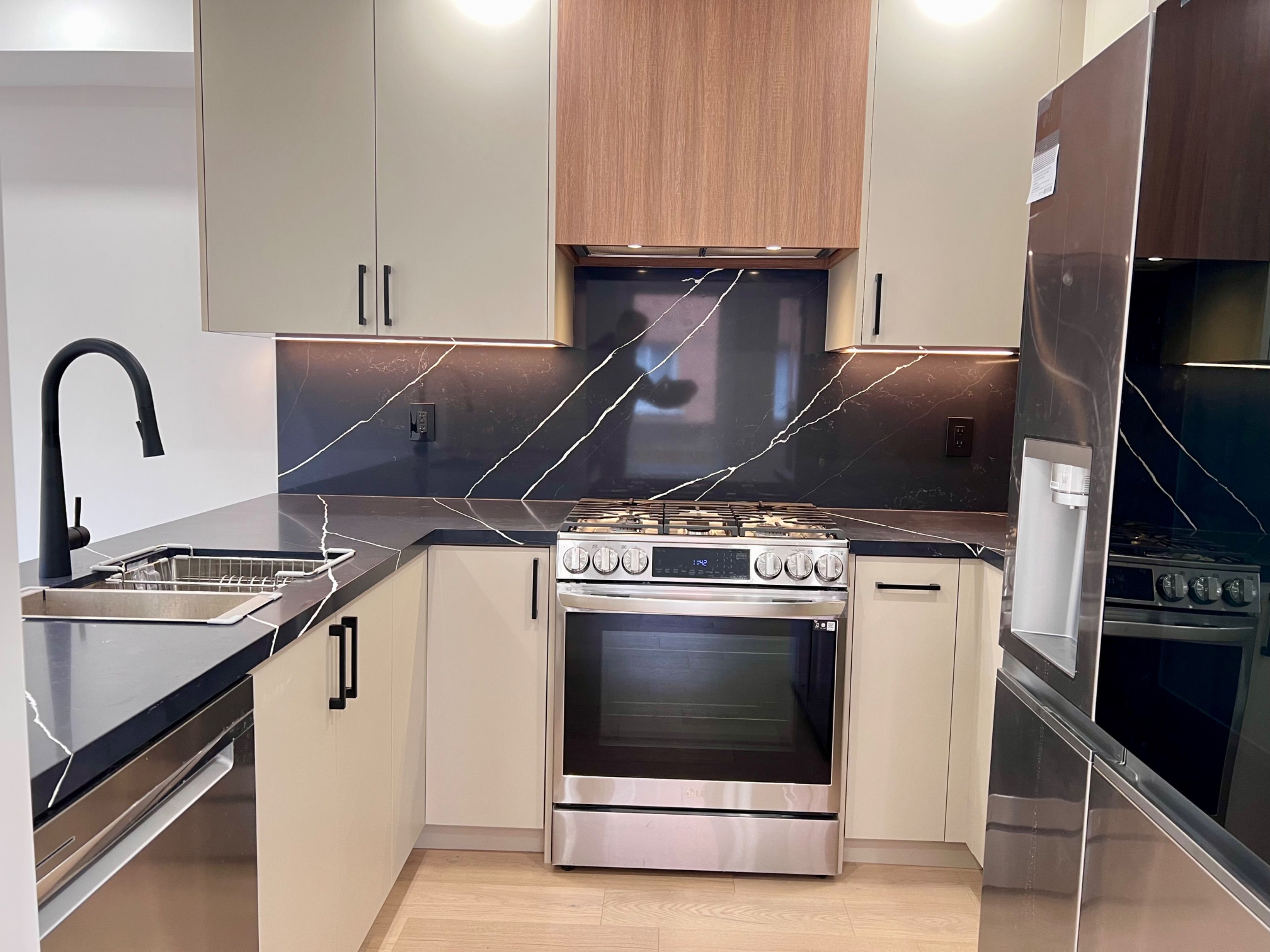 • New kitchen features quartz countertops and stainless steel appliances.