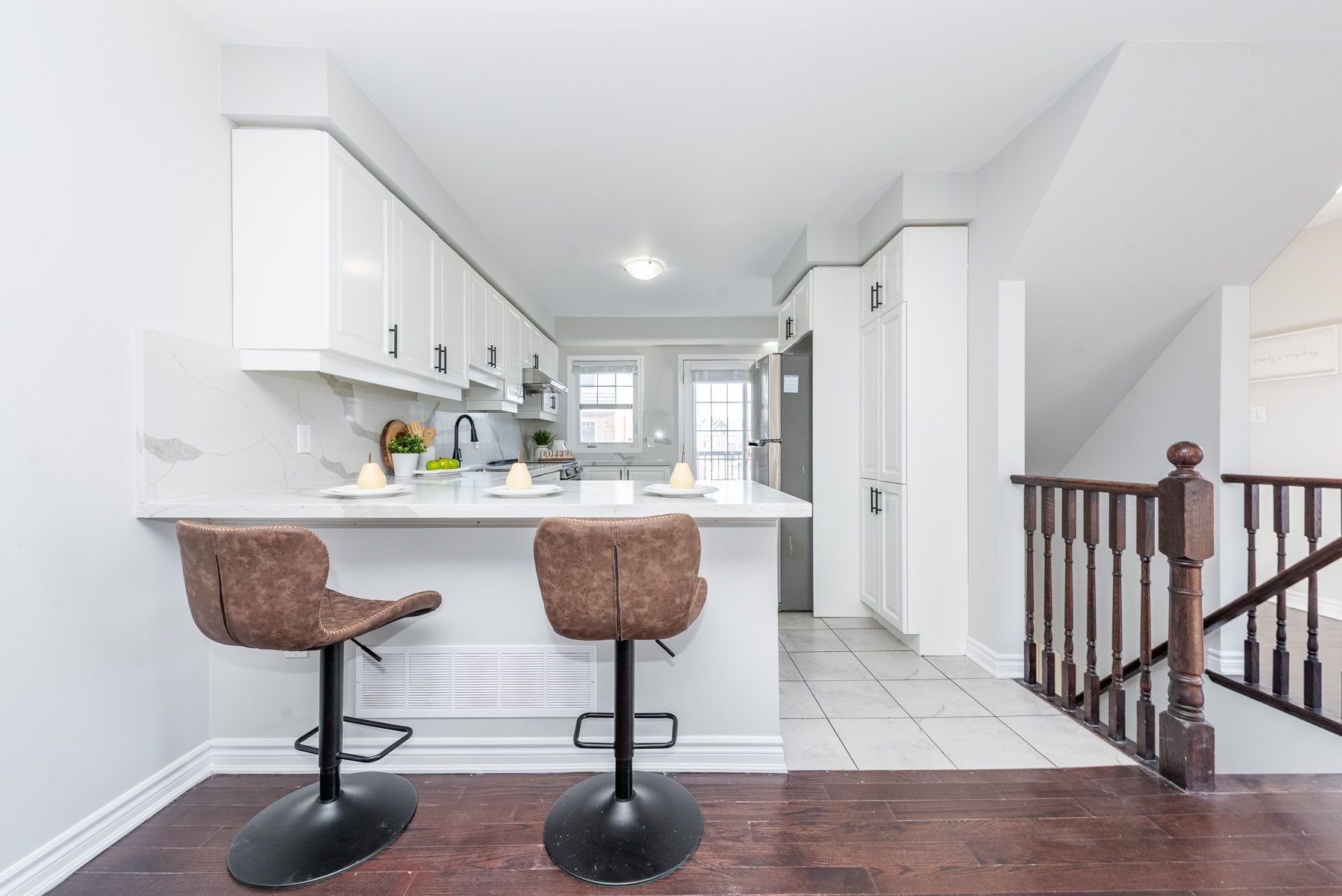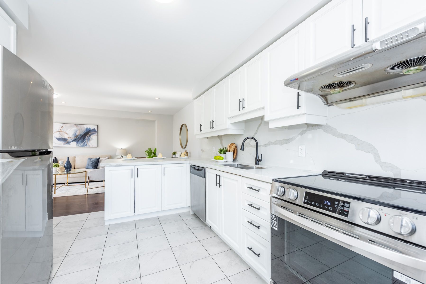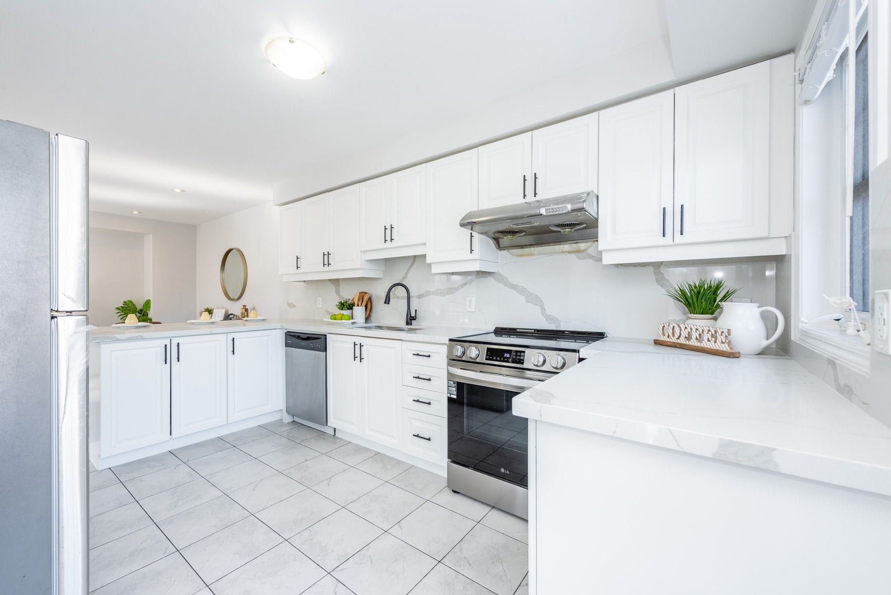• Renovated kitchen with new quartz countertops and stylish fixtures.