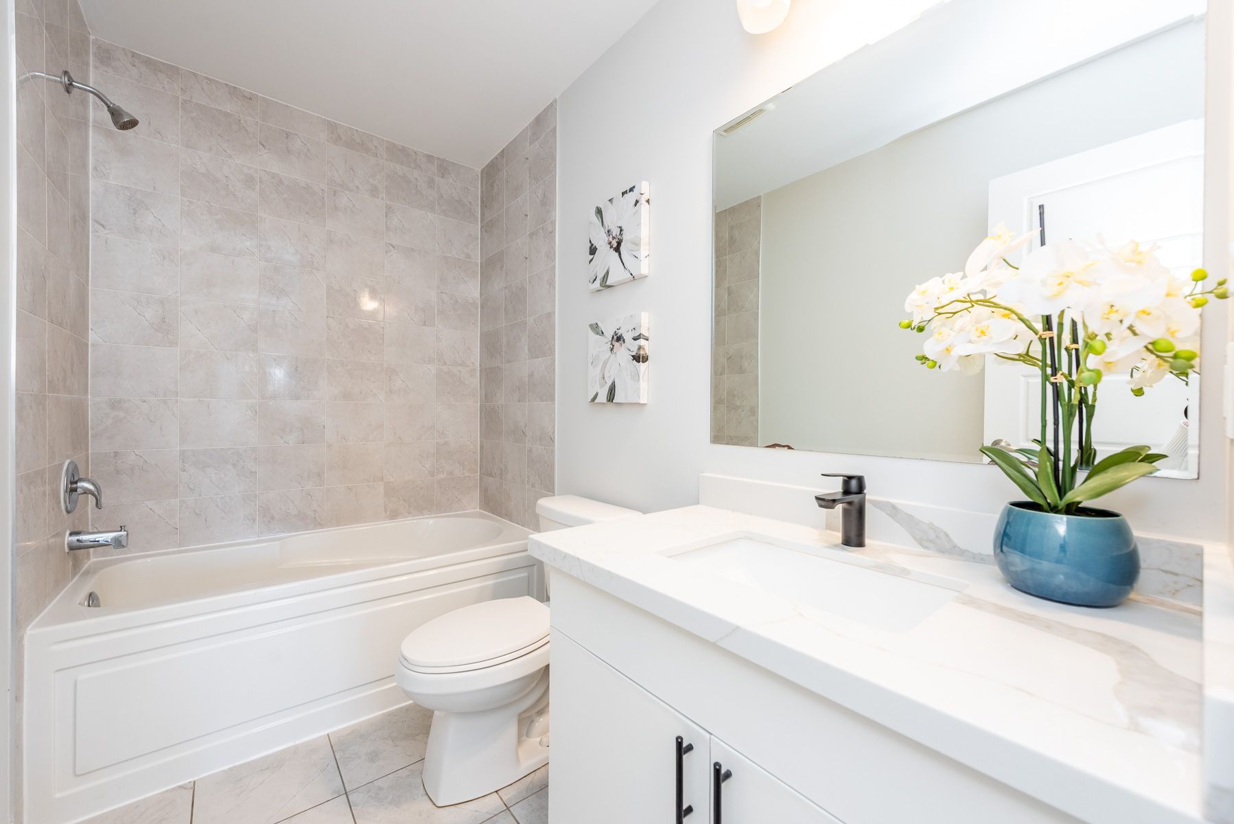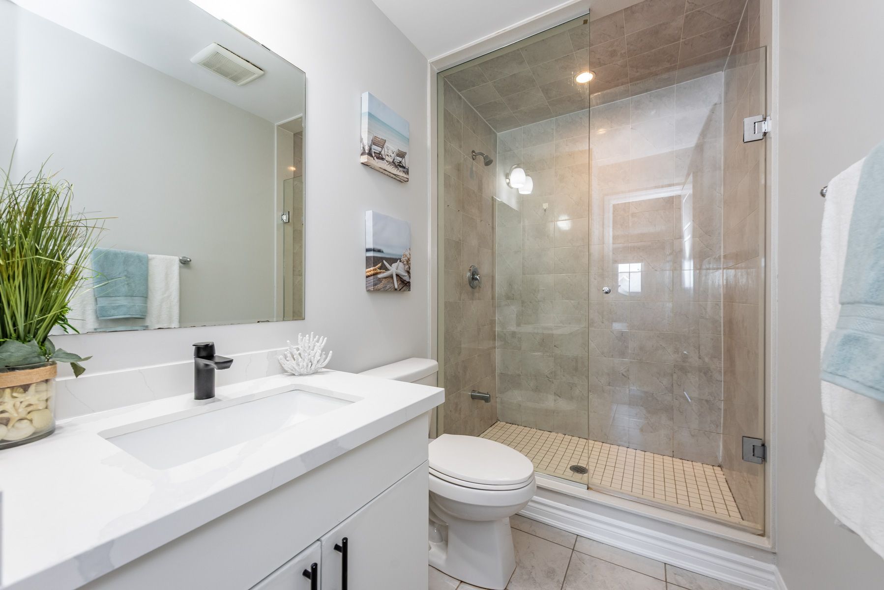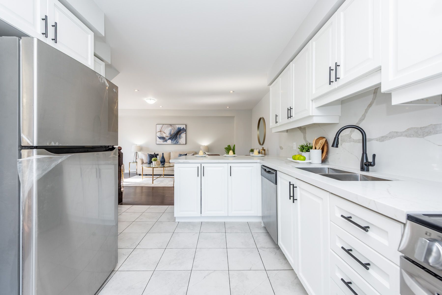 • Renovated kitchen with new quartz countertops and stylish fixtures.