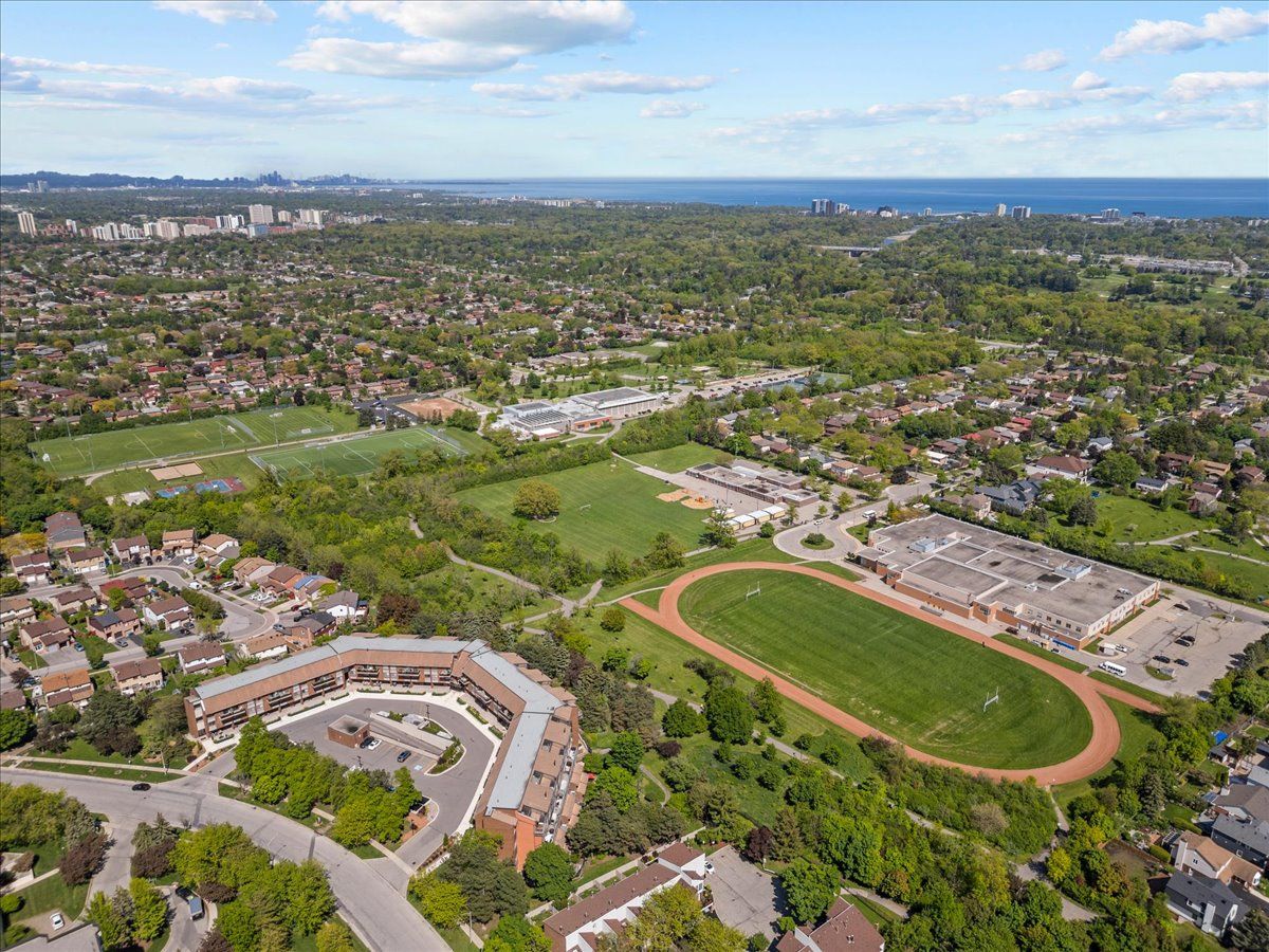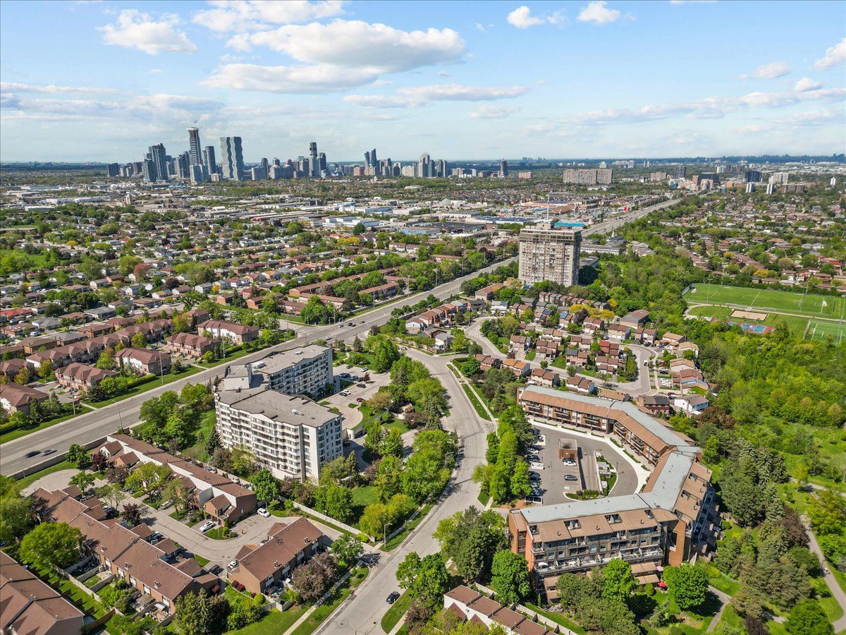 Rarely available 1,500 sq. Ft penthouse-style unit in the highly sought-after huron park community! This sun-filled, 2-story residence offers 3 bedrooms and 3 bathrooms with an expansive townhouse-like layout. Featuring one of the few wood-burning fireplace in the entire building, and three private terraces, this home offers pure comfort and convenience. The updated eat-in-kitchen features granite countertops, stainless steel appliances and tons of storage space. The updated eat-in kitchen boasts granite countertops, stainless steel appliances, a breakfast bar, and walk-out balcony with western exposure - perfect for watching the sunset! The main level includes a versatile 3rd bedroom (perfect for a home office) and a modern powder room with in-suite laundry. Upstairs, discover two massive primary-style bedrooms, each with its own updated ensuite, walk-in closet, and private south-facing terrace. Wait till you see the toronto and mississauga skyline views from each balcony. With public transit, grocery stores, restaurants, and the university of toronto mississauga (utm) just a short walk away, you'll love the lifestyle this location offers. Just a short drive to port credit on the water & downtown toronto! Don't miss your opportunity to own this rare gem in a sought-after neighbourhood. Pet-friendly building!