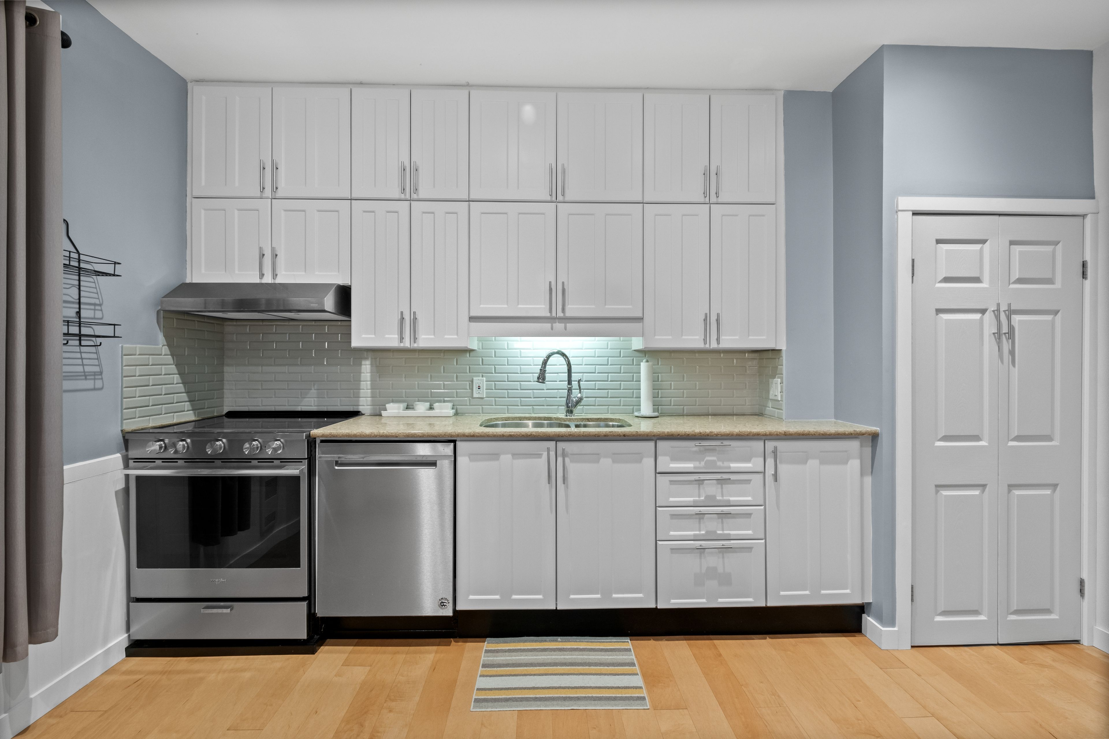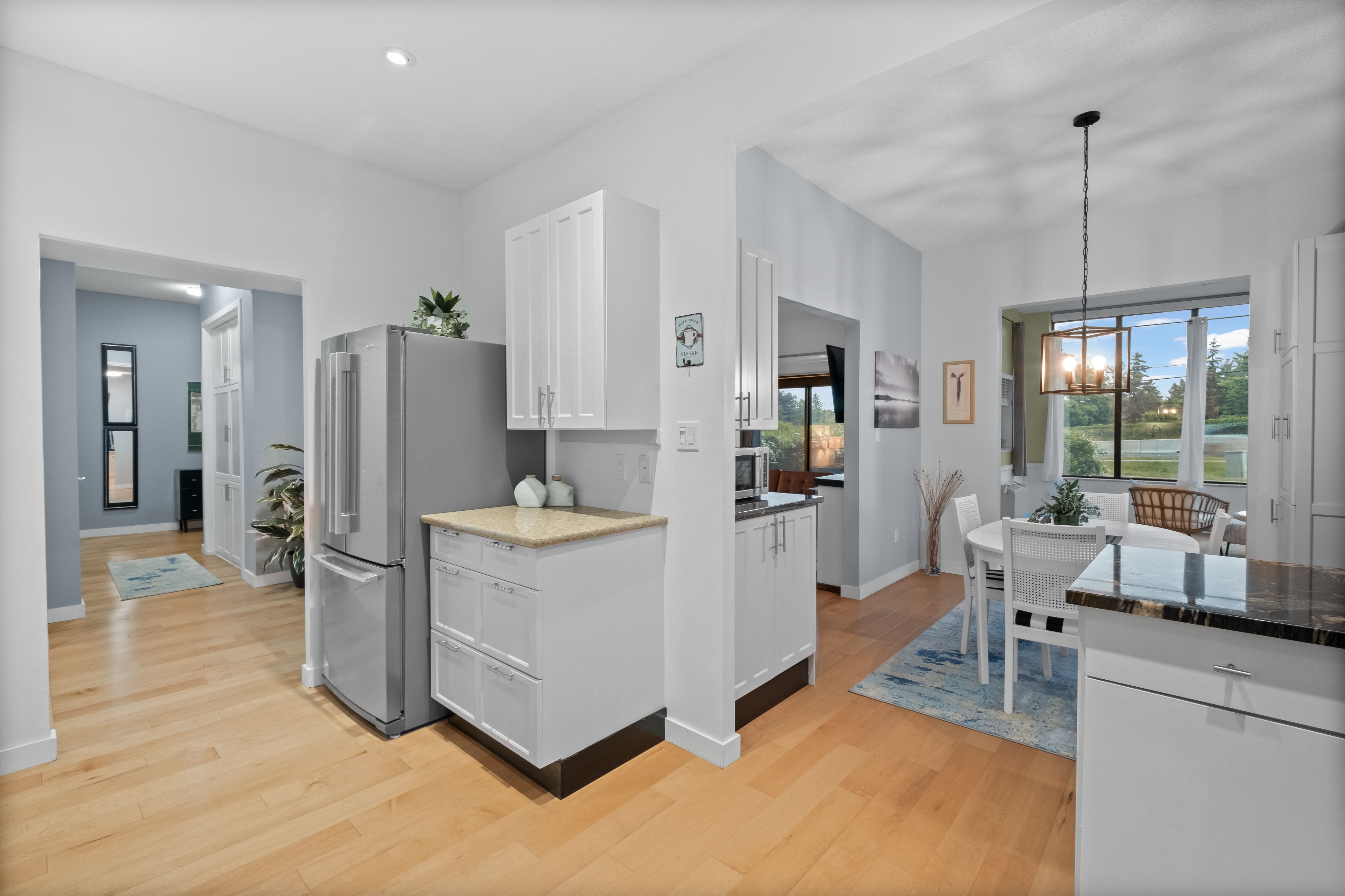 • Updated kitchen features granite countertops and new stainless steel appliances.