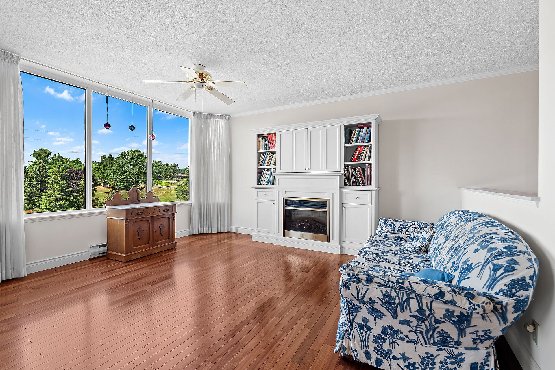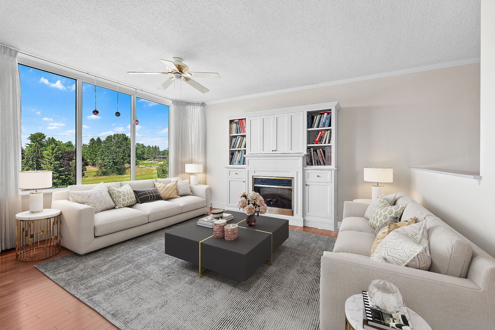 • Bright open-concept living and dining areas with large windows and golf course views.