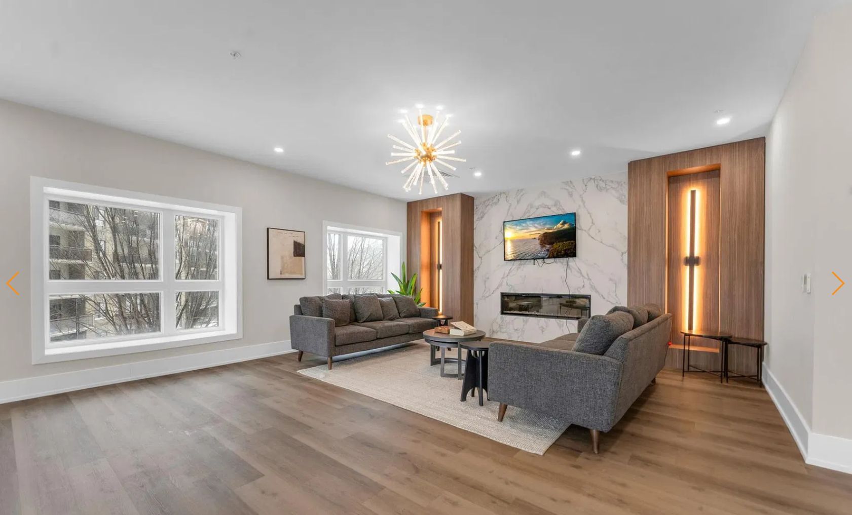 • Bright, open-concept 1-bedroom suite with large windows for natural light.