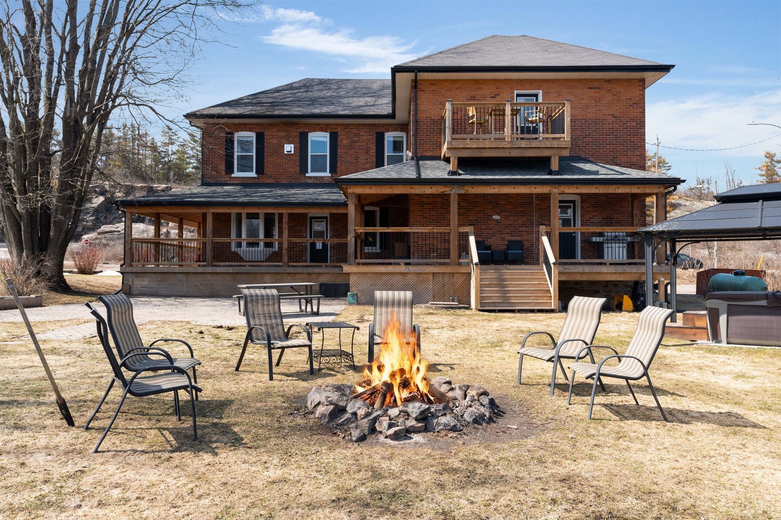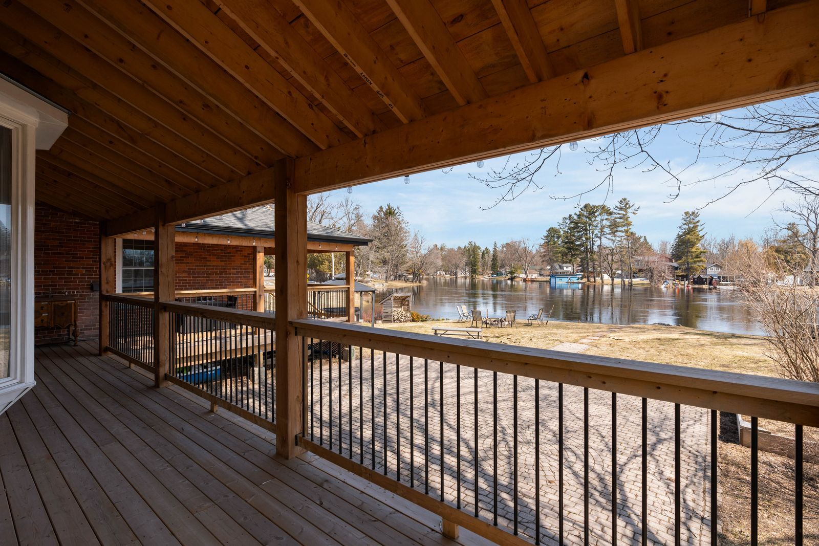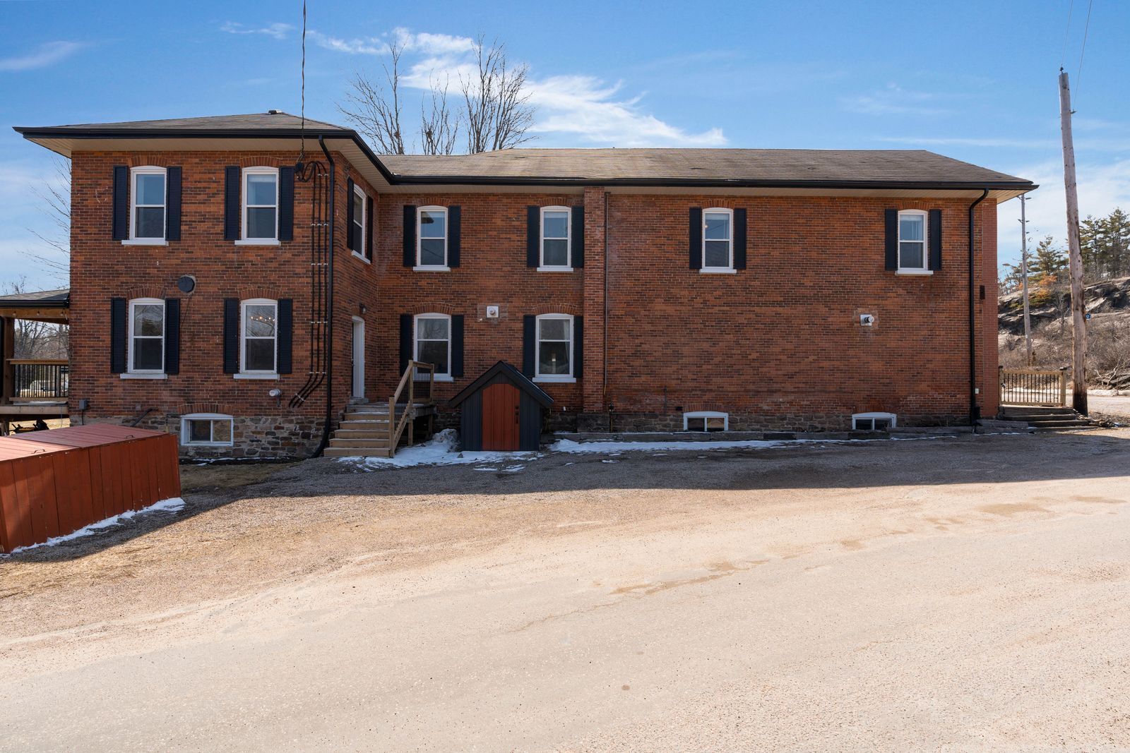 Beautiful waterfront property with over 5000 sqft, 3 kitchens, 7 bedrooms, 7 bathrooms, 380 ft of shoreline, on over an acre with cc5 zoning! This is not just a home, it is a property built for a much larger vision! Set on over an acre with highway 11 access nearby for commuters and boating routes leading toward sparrow lake and the trent severn waterway, this stately all-brick century home offers exceptional flexibility for residential or commercial use, with the scale to support guest accommodation, multigenerational living, or business ventures. Black shutters, plenty of windows, mature perennial gardens, and a newer wraparound deck give the exterior plenty of appeal, while the waterfront setting adds multiple outdoor deck areas, a volleyball court, a horseshoe pit, a newer dock, and ample parking. Original woodwork, 10 foot ceilings, and 3 fireplaces give the main living areas the kind of character newer homes cannot replicate, while updated finishes add a more modern layer to the home's classic appeal. The main kitchen features granite countertops, stainless steel appliances, upgraded cabinetry, and a large island, while 3 kitchens in total expand the options for extended family, shared living, or potential income-producing use. Upper level bedroom and bathroom capacity includes a mix of ensuite, semi-ensuite, and main bath access. Additional updates include fresh paint, plumbing upgrades, baths, laundry room, some window replacements, copper wiring, a 400 amp panel, exterior improvements including all decks and docks, and removal of the heritage designation for added freedom moving forward. This #hometostay really has it all!