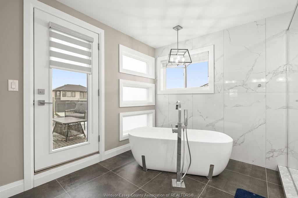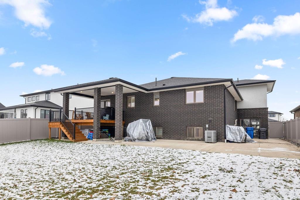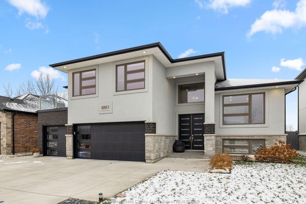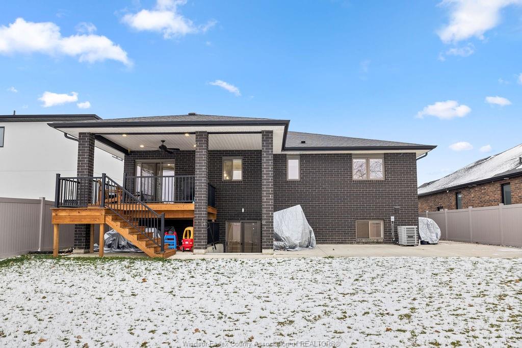 Welcome to this stunning newer-built modern 5-bed, 3-bath home located on a quiet, family-friendly street in east windsor. Just steps from the ganatchio trail, parks, schools, and shopping, this turn-key property blends luxury, comfort, and convenience. Featuring an oversized 3-car garage, spacious open-concept living, and high-end finishes throughout. The primary suite offers a private second-storey balcony, generous walk-in closet, and a spa-like ensuite for the perfect retreat. Enjoy outdoor living on the covered rear porch overlooking a fully fenced yard with no rear neighbours—ideal for privacy and entertaining. Finished top to bottom, this home delivers exceptional space and modern style in one of windsor’s most desirable areas. A must-see!