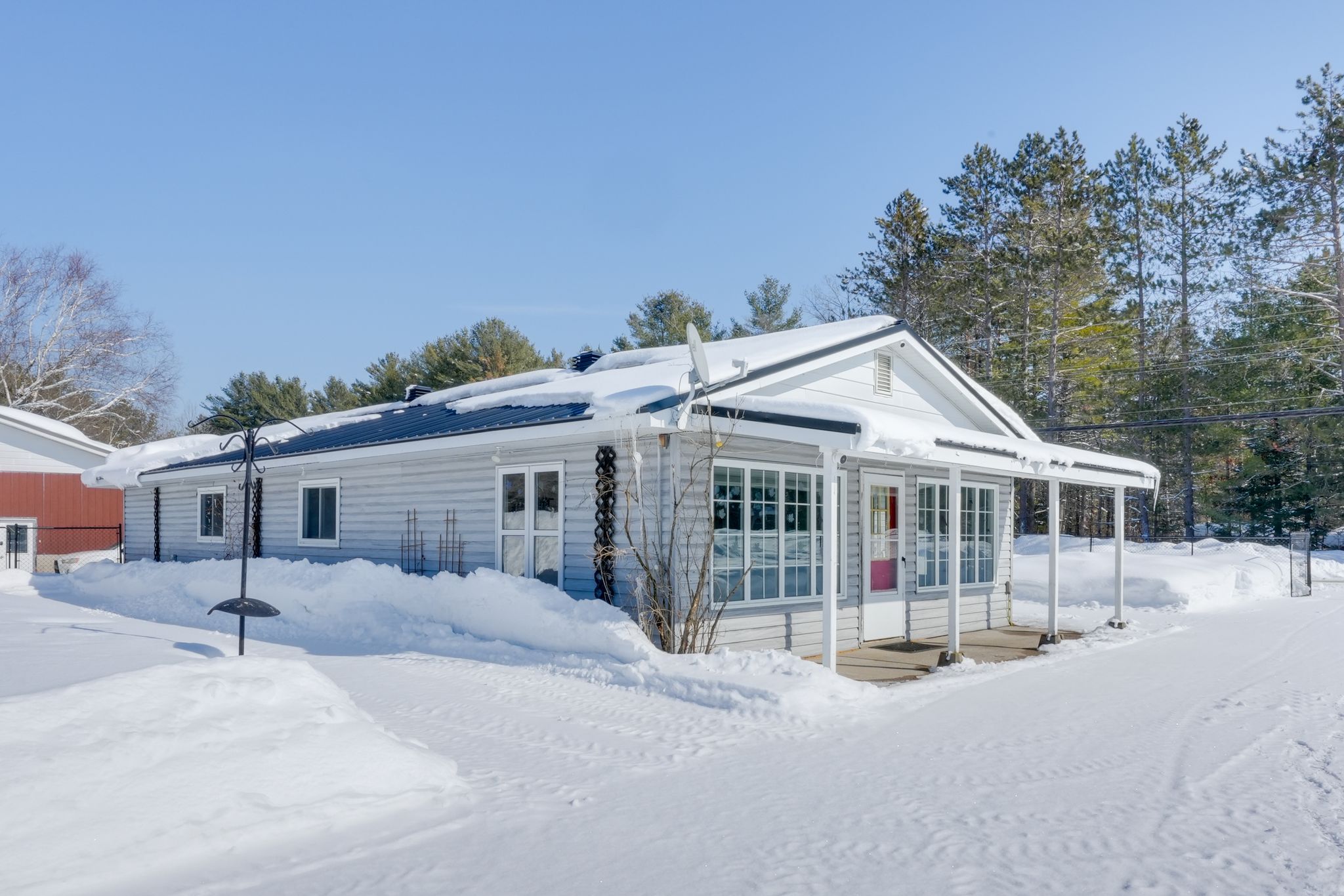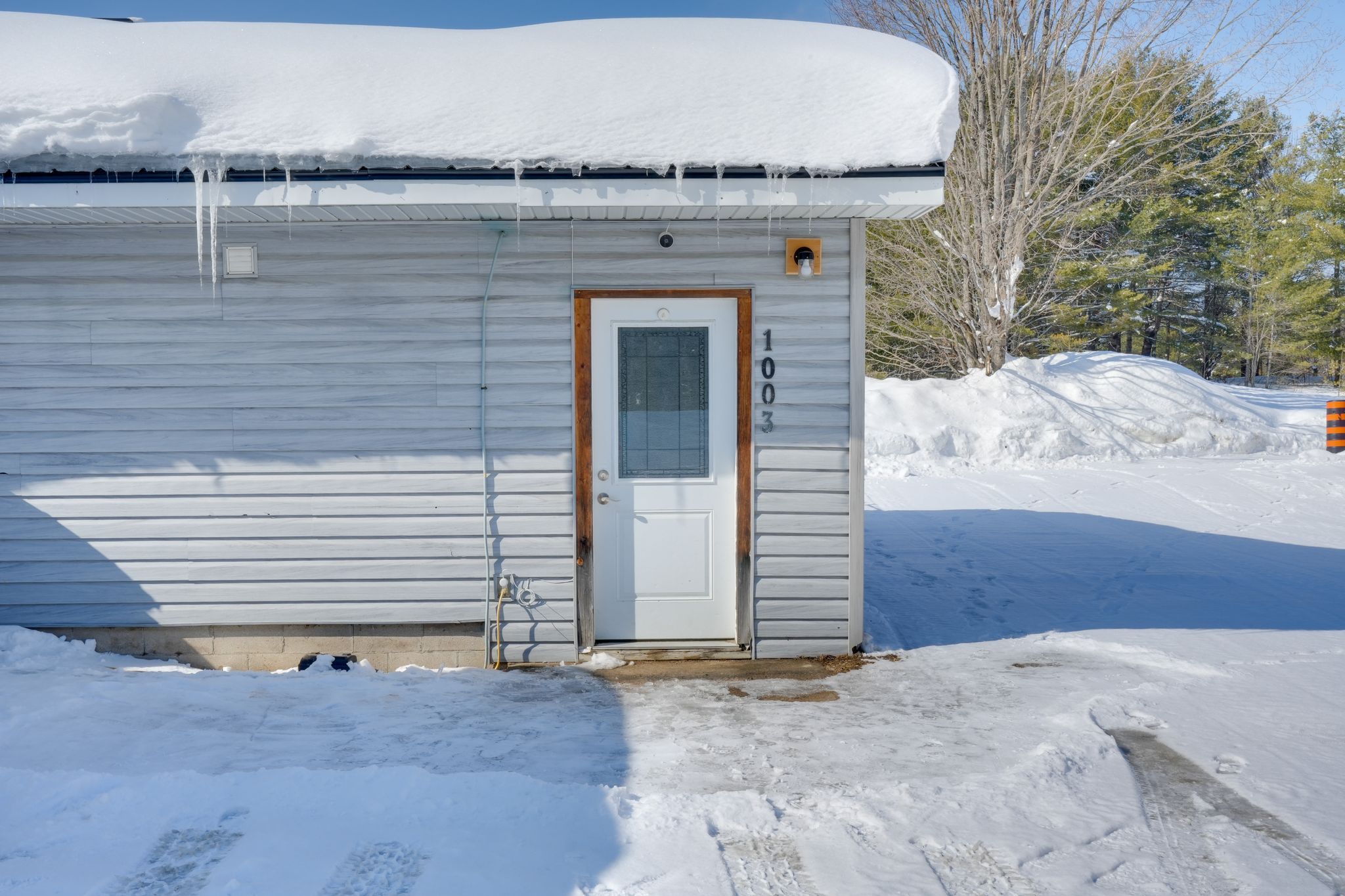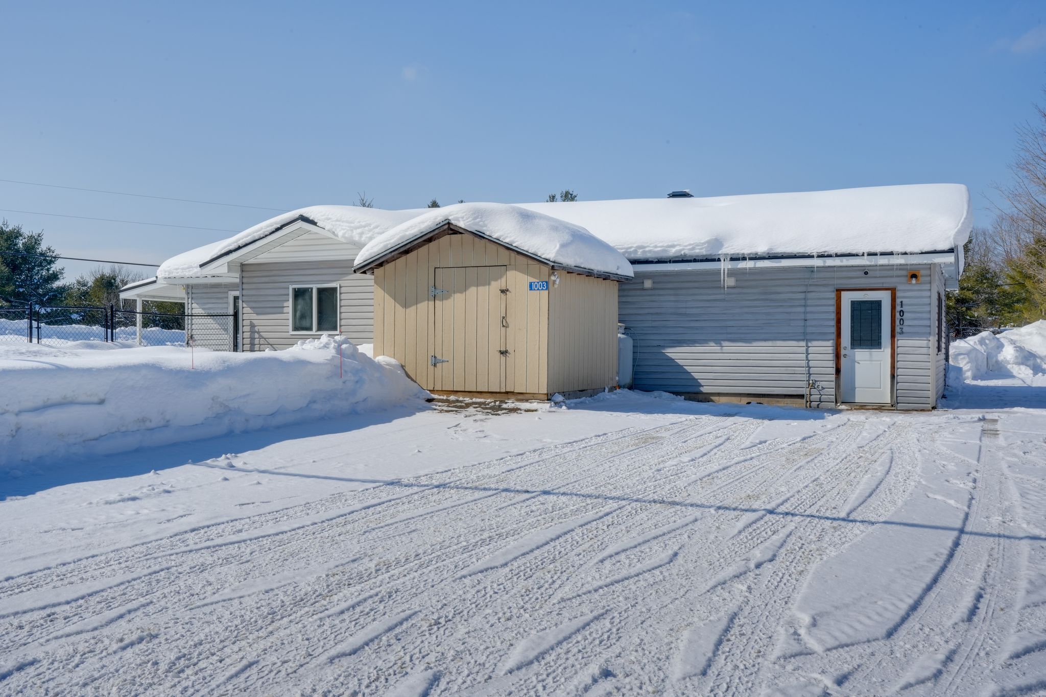 Welcome to 1003 settlers lane in bracebridge, a well maintained 1354 square foot slab on grade bungalow offering comfortable one level living in a peaceful rural setting just minutes from town. This bright and functional home features two generous size bedrooms and one full bath, ideal for first time buyers, downsizers or those looking for easy maintenance living. A spacious mudroom provides the perfect transition from the outdoors with ample room for seasonal storage, boots and gear. The living room offers direct access to a beautiful covered porch, creating a great space to relax and enjoy the surrounding property. Outside, you will find a large fully fenced side yard, perfect for kids and pets, along with a separate shed with electrical service for additional storage or workshop potential. Numerous important upgrades have been completed over the years including a metal roof approximately five years old, drilled well pump, pressure tank, hot water tank and water filtration system replaced in summer 2025, and blown in attic insulation for improved efficiency. The home is also equipped with a generlink generator plug for portable generator connection, propane hookup for a bbq, and high speed fibre optic internet. Located in a desirable rural area with quick access to highway 11 and just minutes to downtown bracebridge and all daily amenities. Along with being located in the highly sought after macaulay school district, enjoy being down the road from the muskoka river and high falls, offering fantastic swimming and outdoor recreation close to home. A solid move in ready home in a convenient and scenic muskoka location.