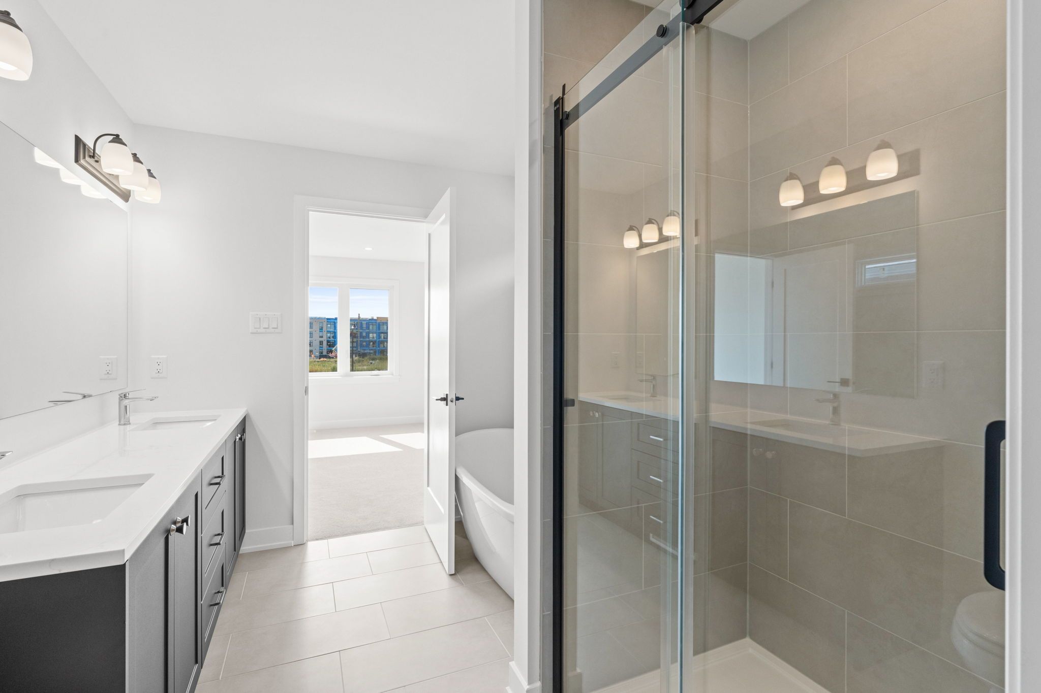 Welcome to stirling meadows in brockville. This newly built semi-detached home offers convenient access to highway 401, as well as nearby shopping, dining, and recreational amenities. The wellington model by mackie homes provides approximately 2,125 square feet of thoughtfully designed living space, featuring four bedrooms, three bathrooms, and quality finishes throughout. The main level is bright and inviting, enhanced by recessed lighting and transom windows that fill the space with natural light. The kitchen combines style and function with crisp white cabinetry, a striking backsplash, stainless steel appliances, quartz countertops, and a contrasting black island that serves as a central gathering spot for casual meals. The adjoining dining and living areas open to a sun deck, ideal for outdoor enjoyment, while a powder room and interior access to the oversized single garage add convenience on the main floor. Upstairs, the primary bedroom offers a five-piece ensuite that includes a soaker tub, separate shower, and dual sinks. Three additional bedrooms, a full bathroom, and a dedicated laundry room complete the second level.