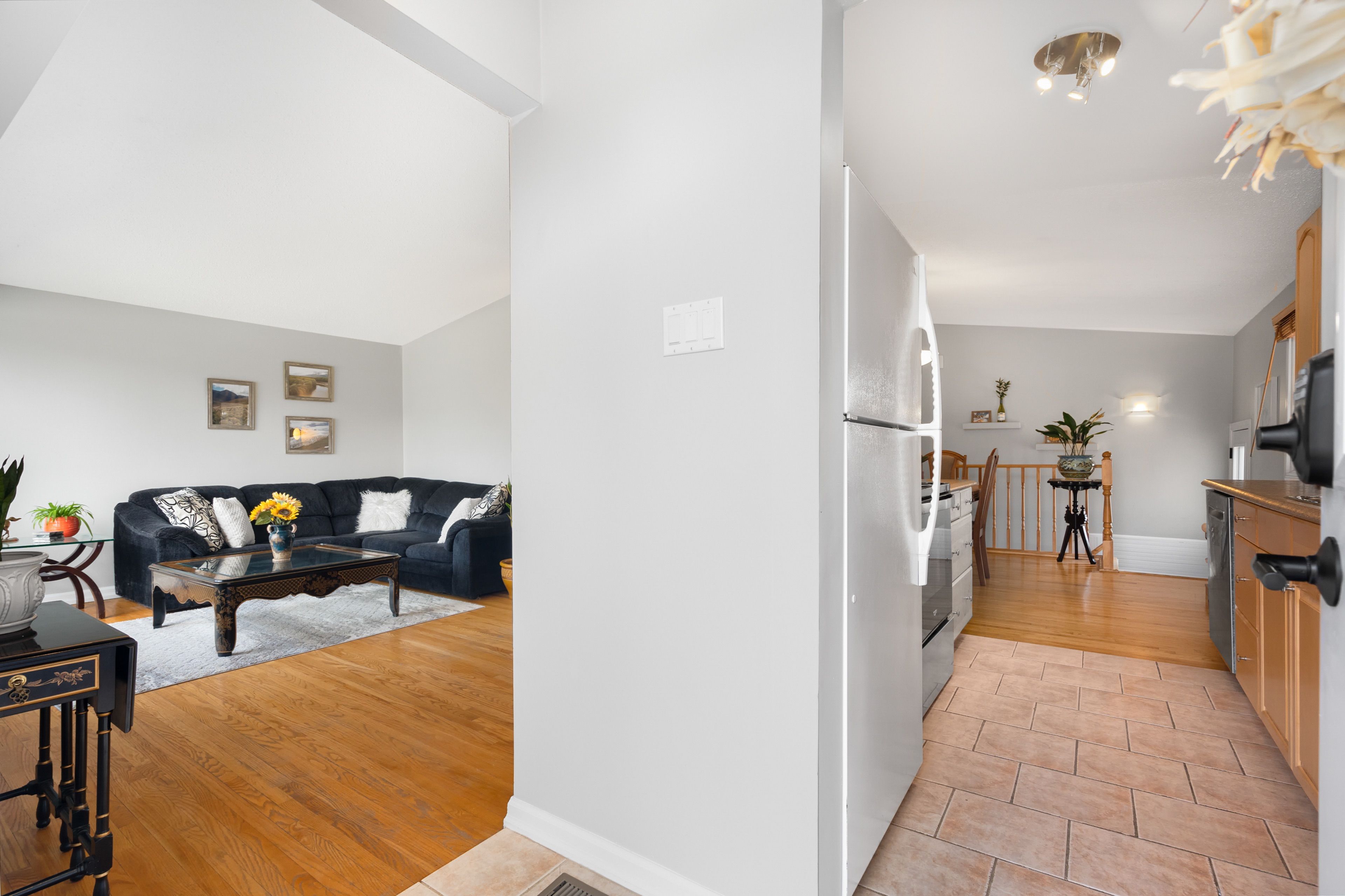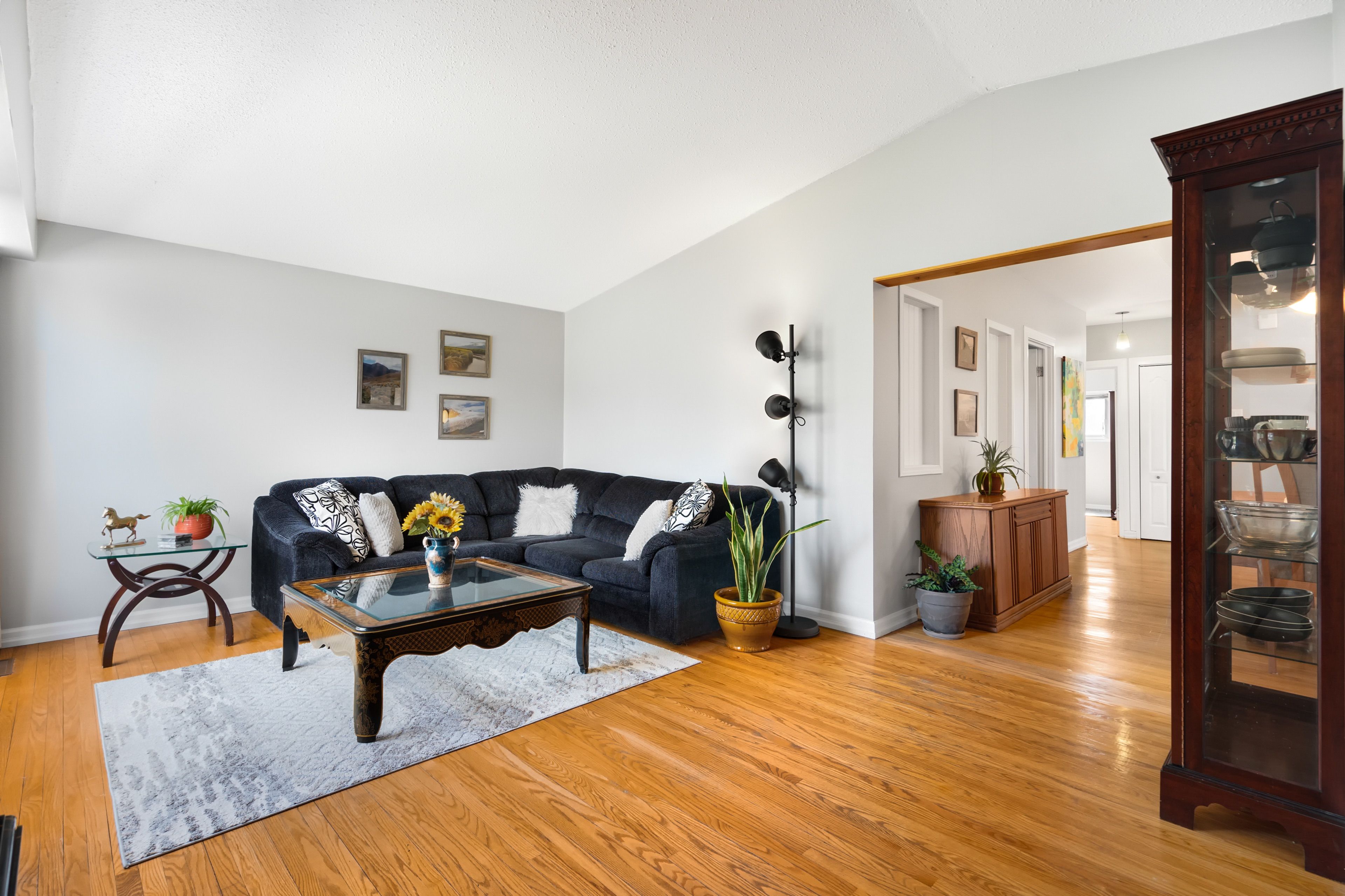 • Open-concept main floor with vaulted ceilings for a bright atmosphere.