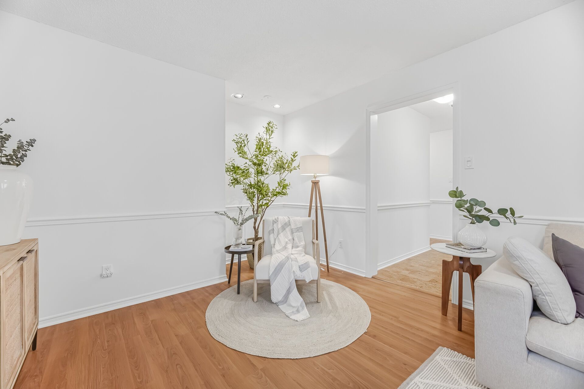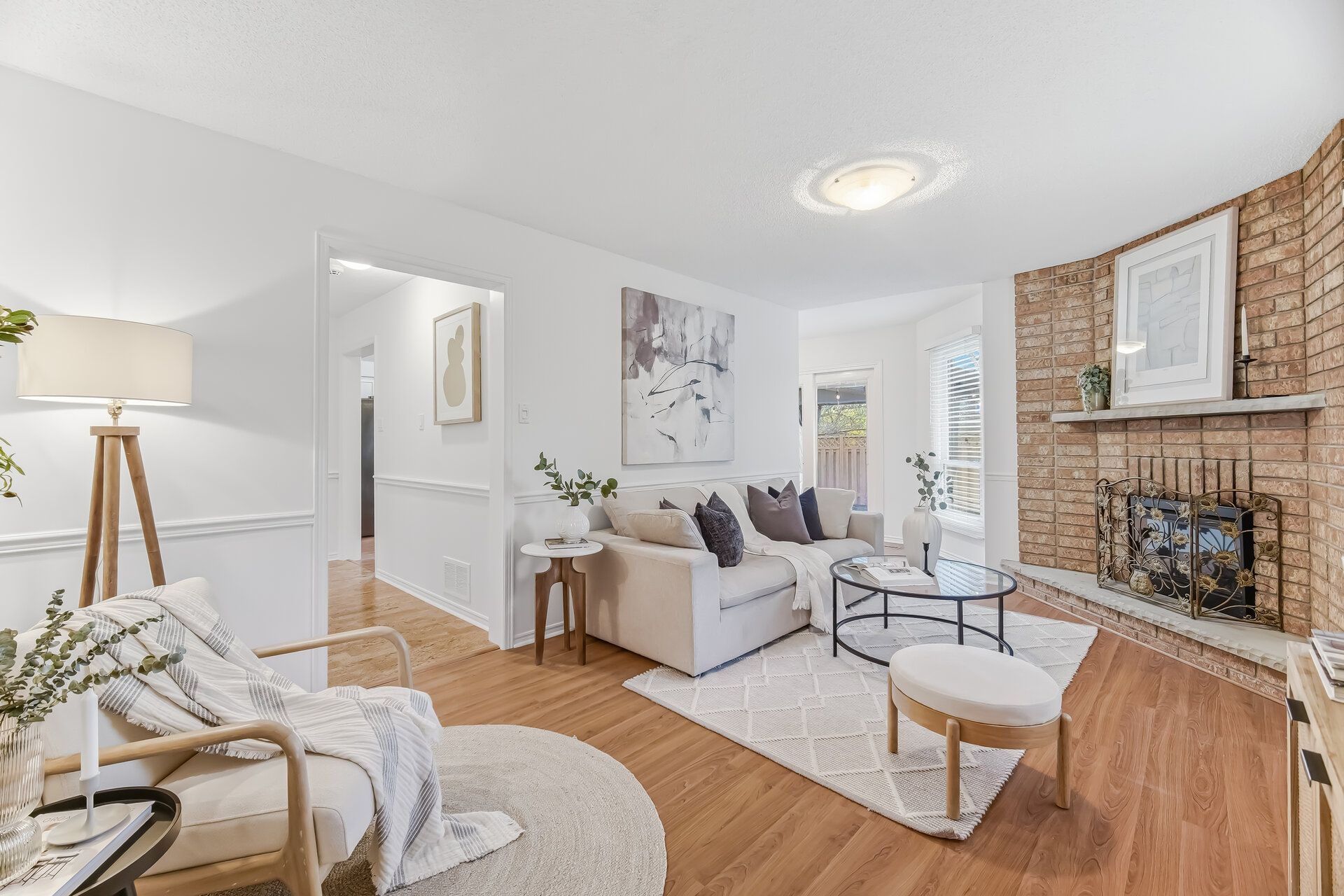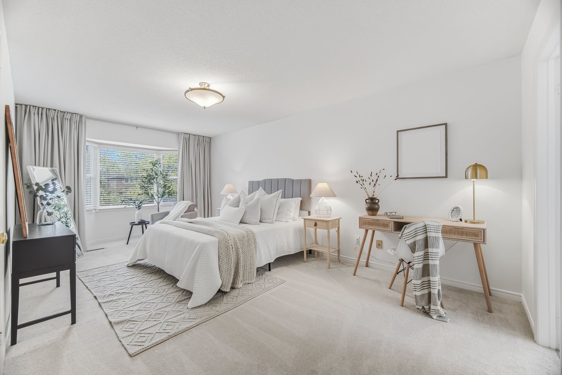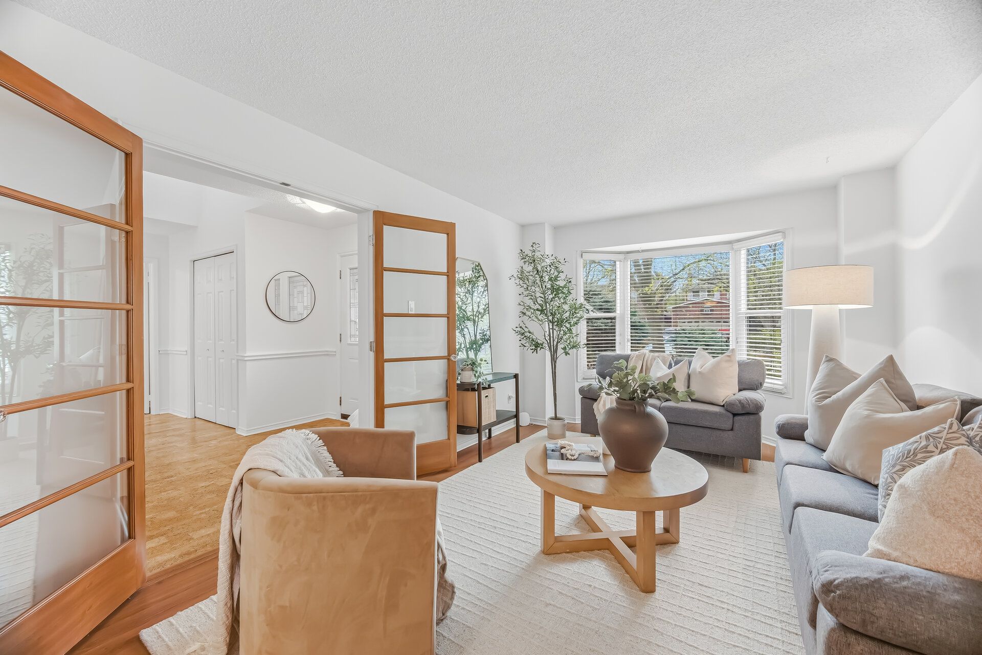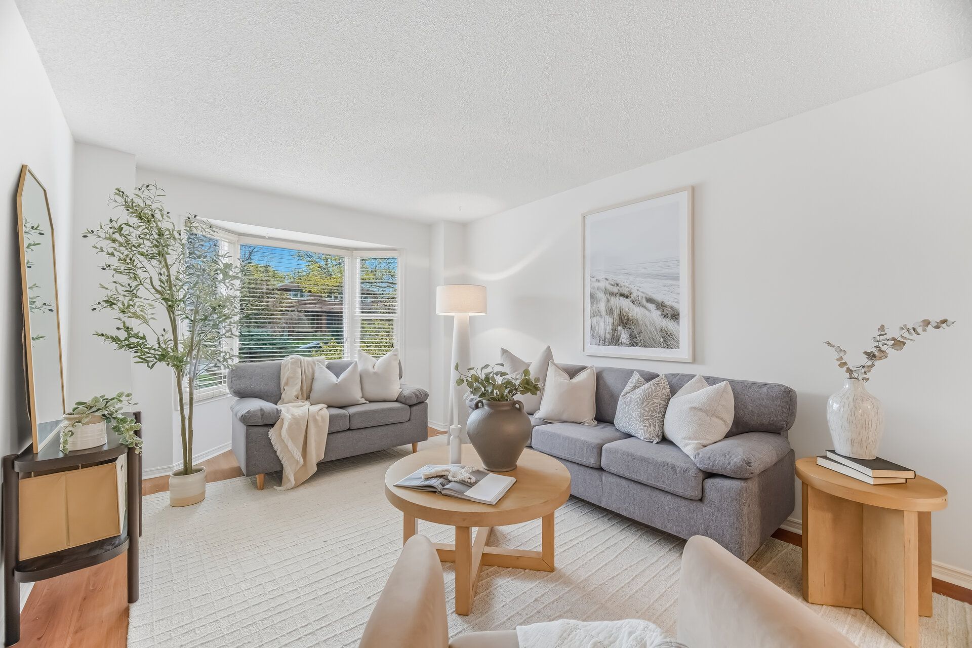 • Bright living room with a charming bay window for natural light.