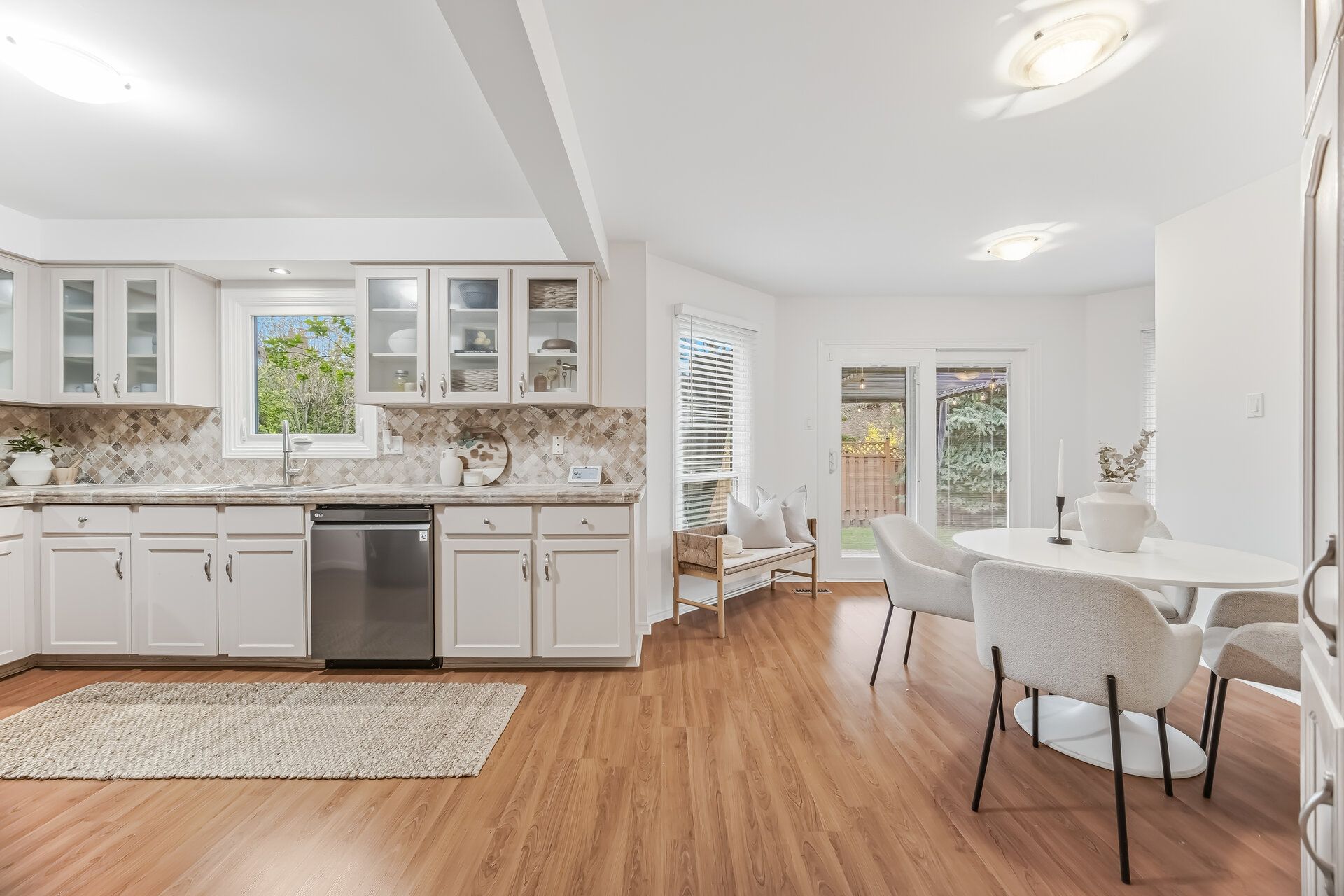 • Gourmet kitchen with a breakfast area overlooking the backyard.