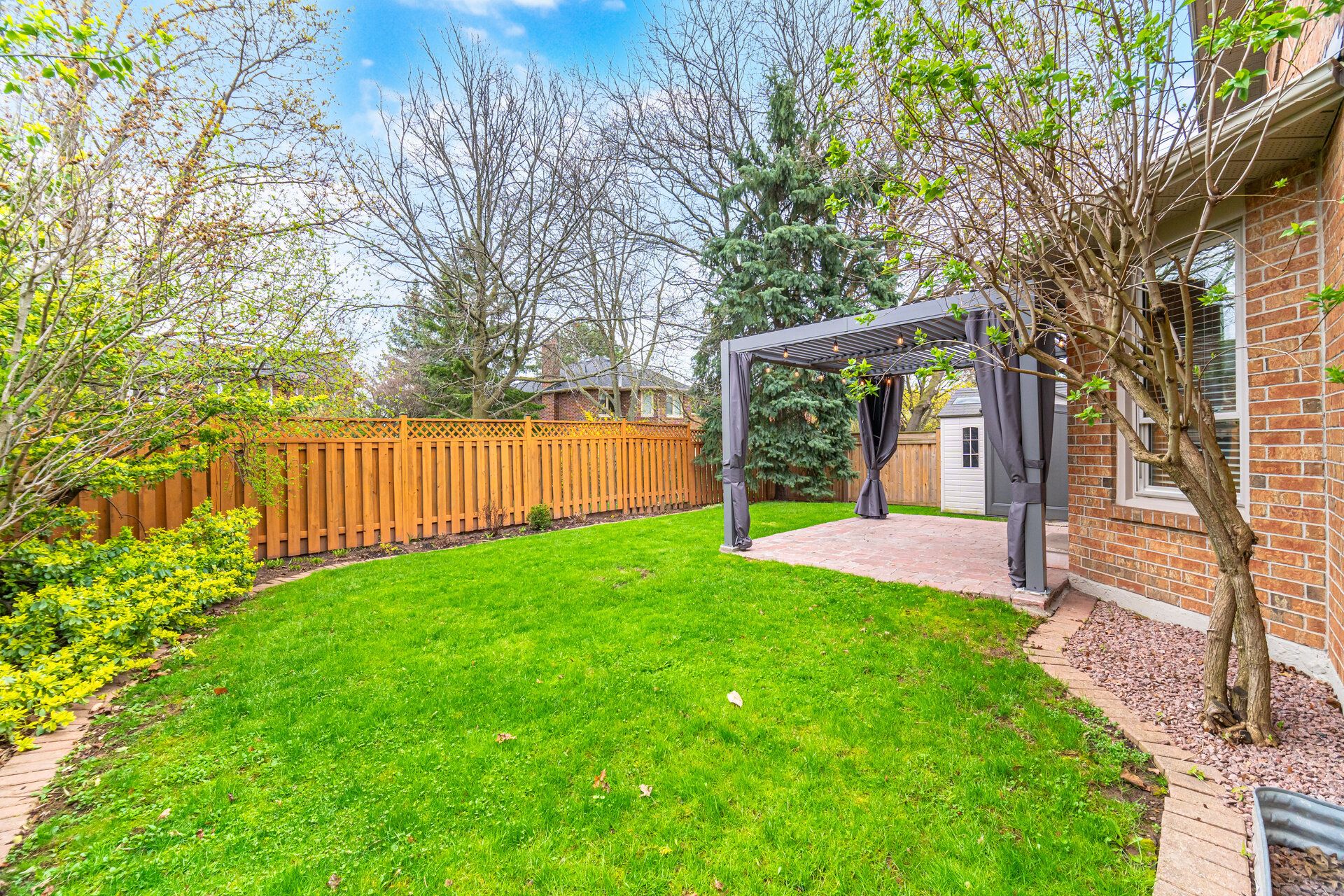 • Landscaped backyard features a pergola and is great for entertaining.