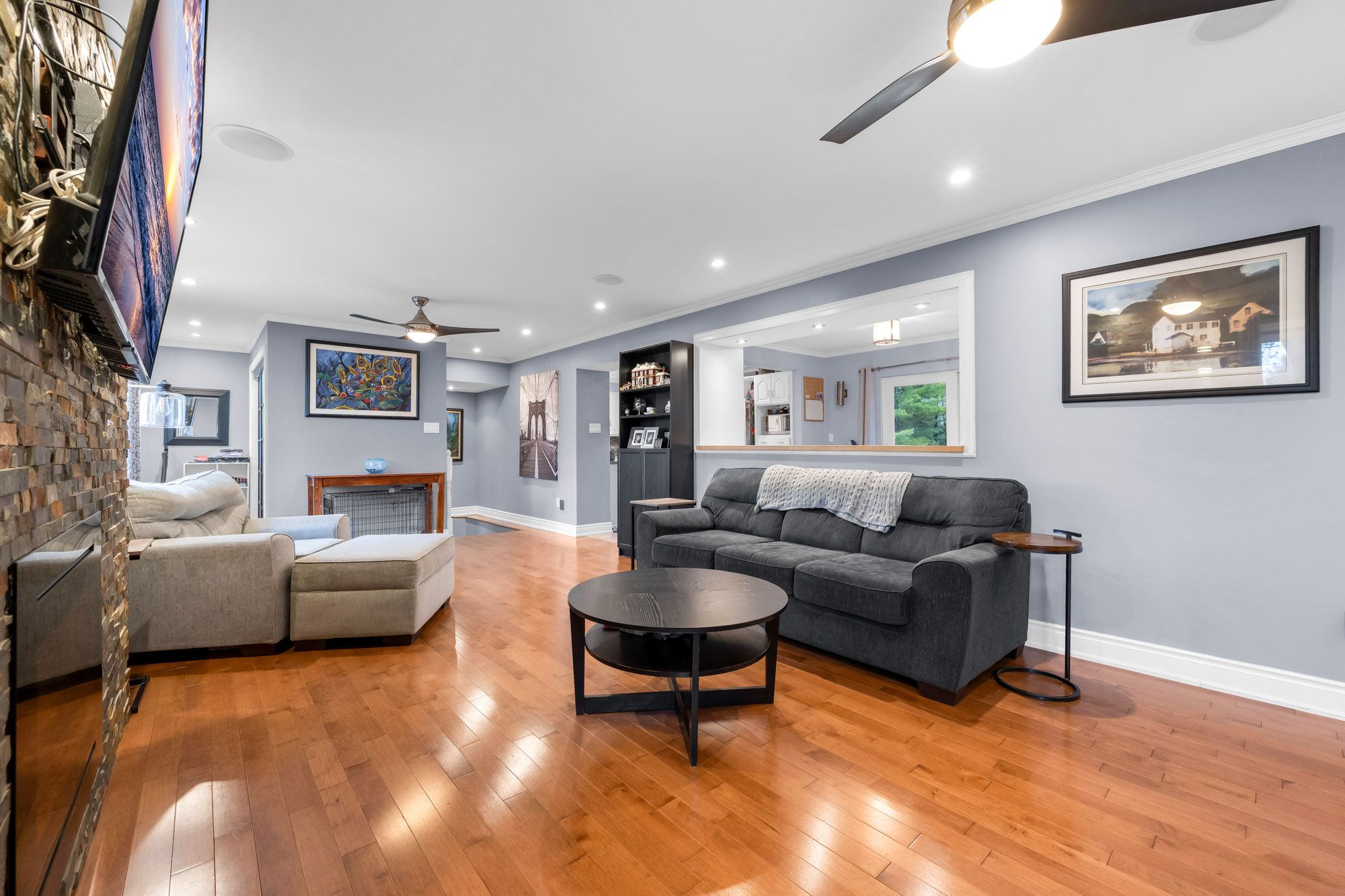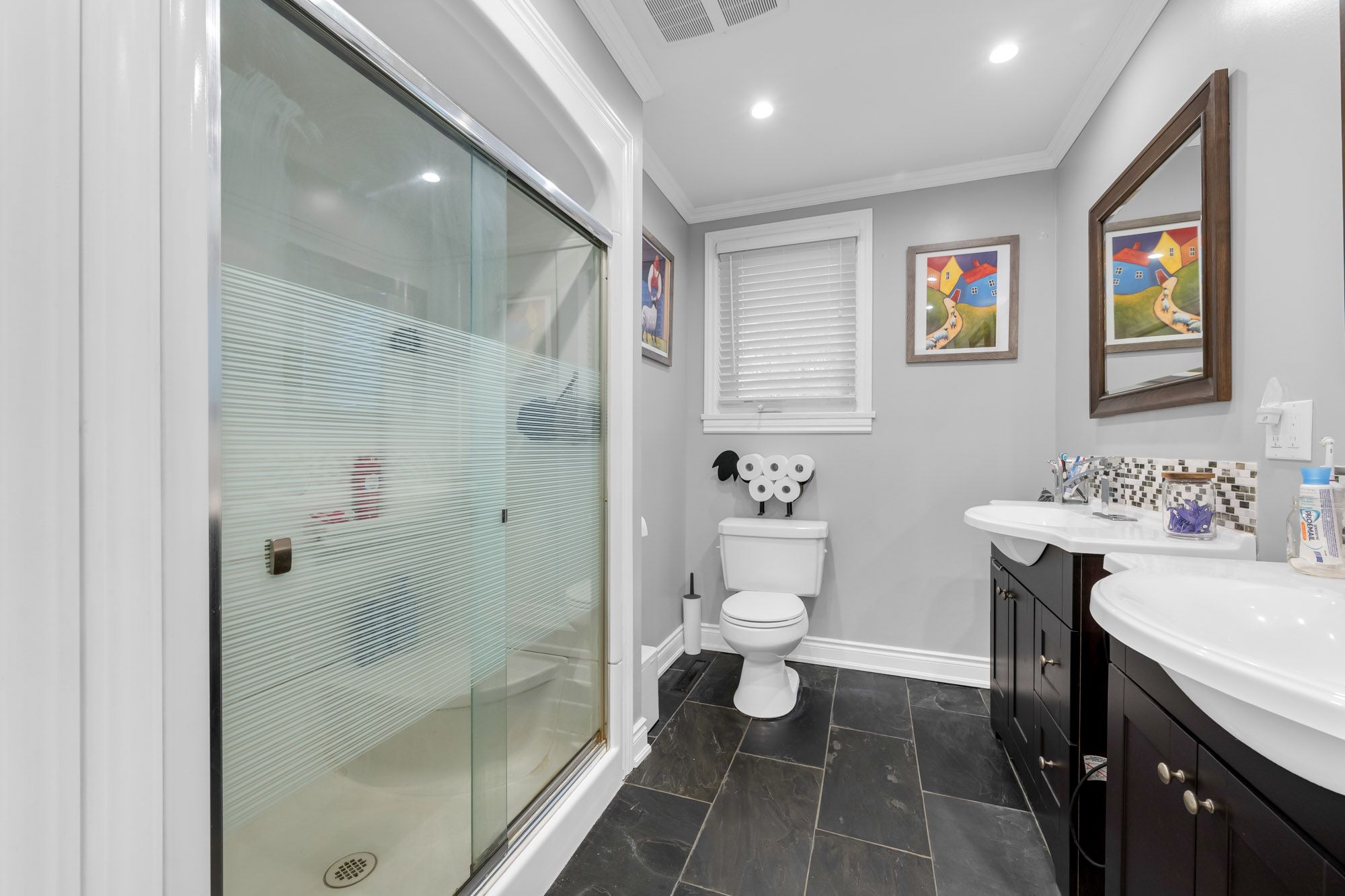 • Open-concept design with heated bathroom floors for winter comfort.