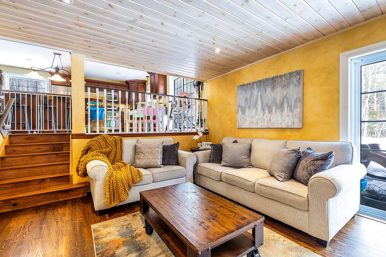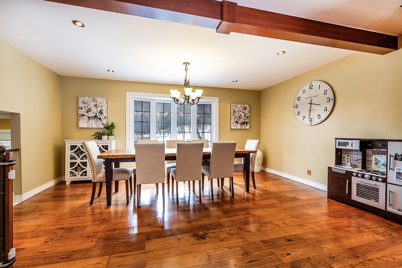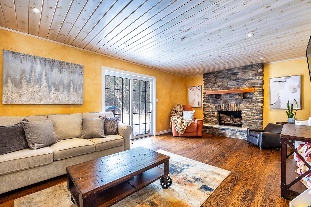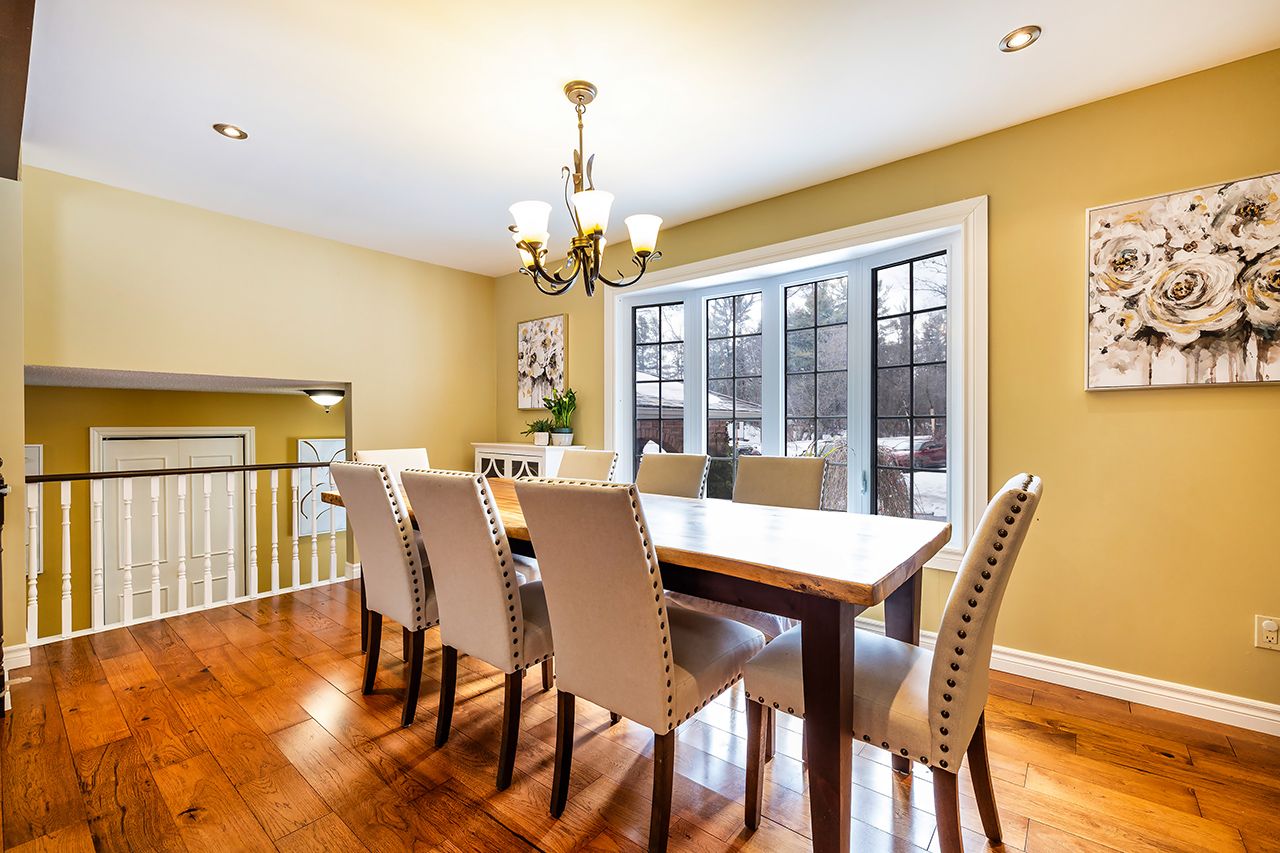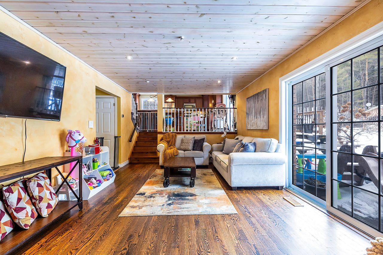 A nature lover's paradise! Nestled in picturesque burketon station, this idyllic property sits on a beautifully wooded 2 acre lot and features a long circular driveway leading to a spacious 1,918 sqft 5-level sidesplit. The stunning kitchen is a true chef's dream, complete with granite countertops, a large island with breakfast bar, custom cabinetry, gleaming hardwood floors, herringbone marble backsplash, stainless steel appliances, pot lighting, pantry with roll-outs, abundant pot and pan drawers, lazy susan, beam ceilings, and a walk-out to the deck. The main floor family room offers hardwood flooring, pot lights, a walk-out to the deck, and a striking (non-functional) fireplace feature. Ceramic flooring carries through the front entry into the main floor powder room and a convenient laundry/mudroom combo offering both direct garage access and a walk-out to the side yard. The lower level boasts a massive rec room with an oak bar and bright above-grade windows, while the fifth level adds flexibility with a newly finished office, a fourth bedroom, and ample storage space. Upstairs, you'll find three generously sized bedrooms serviced by two beautifully updated bathrooms featuring solid surface countertops and vinyl flooring. The primary bedroom offers a walk-in closet and a spa-inspired ensuite with an oversized glass shower. New vinyl flooring runs throughout the upper-level bedrooms and bathrooms. Additional highlights include a fantastic 288 sqft outbuilding with a garage door (built in 2000), serene wooded views from every room, and complete backyard privacy - offering the perfect blend of nature, space, and tranquility to call home.