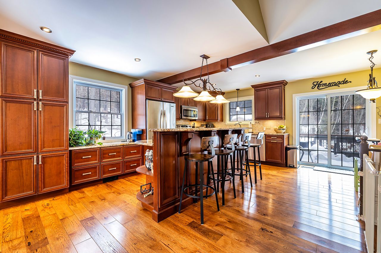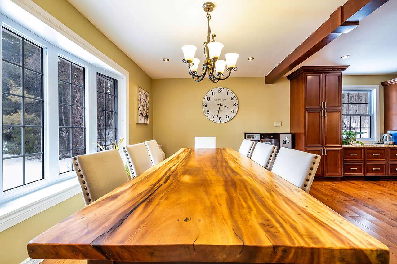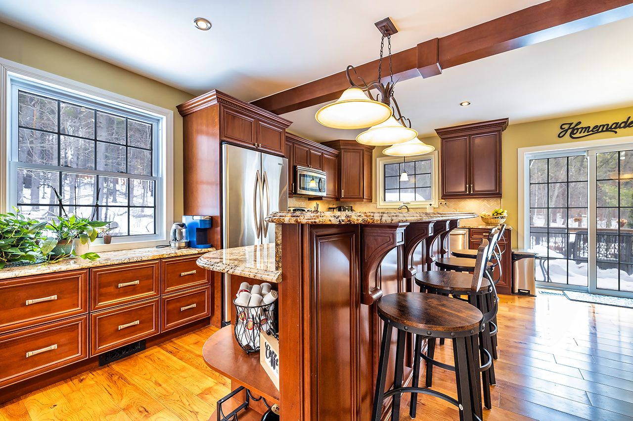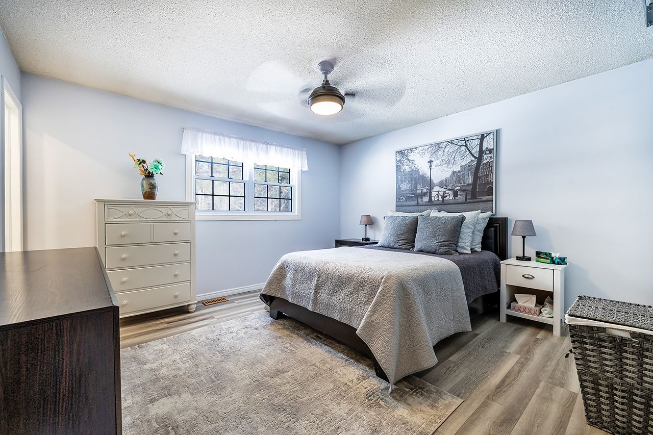A nature lover's paradise! Nestled in picturesque burketon station, this idyllic property sits on a beautifully wooded 2 acre lot and features a long circular driveway leading to a spacious 1,918 sqft 5-level sidesplit. The stunning kitchen is a true chef's dream, complete with granite countertops, a large island with breakfast bar, custom cabinetry, gleaming hardwood floors, herringbone marble backsplash, stainless steel appliances, pot lighting, pantry with roll-outs, abundant pot and pan drawers, lazy susan, beam ceilings, and a walk-out to the deck. The main floor family room offers hardwood flooring, pot lights, a walk-out to the deck, and a striking (non-functional) fireplace feature. Ceramic flooring carries through the front entry into the main floor powder room and a convenient laundry/mudroom combo offering both direct garage access and a walk-out to the side yard. The lower level boasts a massive rec room with an oak bar and bright above-grade windows, while the fifth level adds flexibility with a newly finished office, a fourth bedroom, and ample storage space. Upstairs, you'll find three generously sized bedrooms serviced by two beautifully updated bathrooms featuring solid surface countertops and vinyl flooring. The primary bedroom offers a walk-in closet and a spa-inspired ensuite with an oversized glass shower. New vinyl flooring runs throughout the upper-level bedrooms and bathrooms. Additional highlights include a fantastic 288 sqft outbuilding with a garage door (built in 2000), serene wooded views from every room, and complete backyard privacy - offering the perfect blend of nature, space, and tranquility to call home.