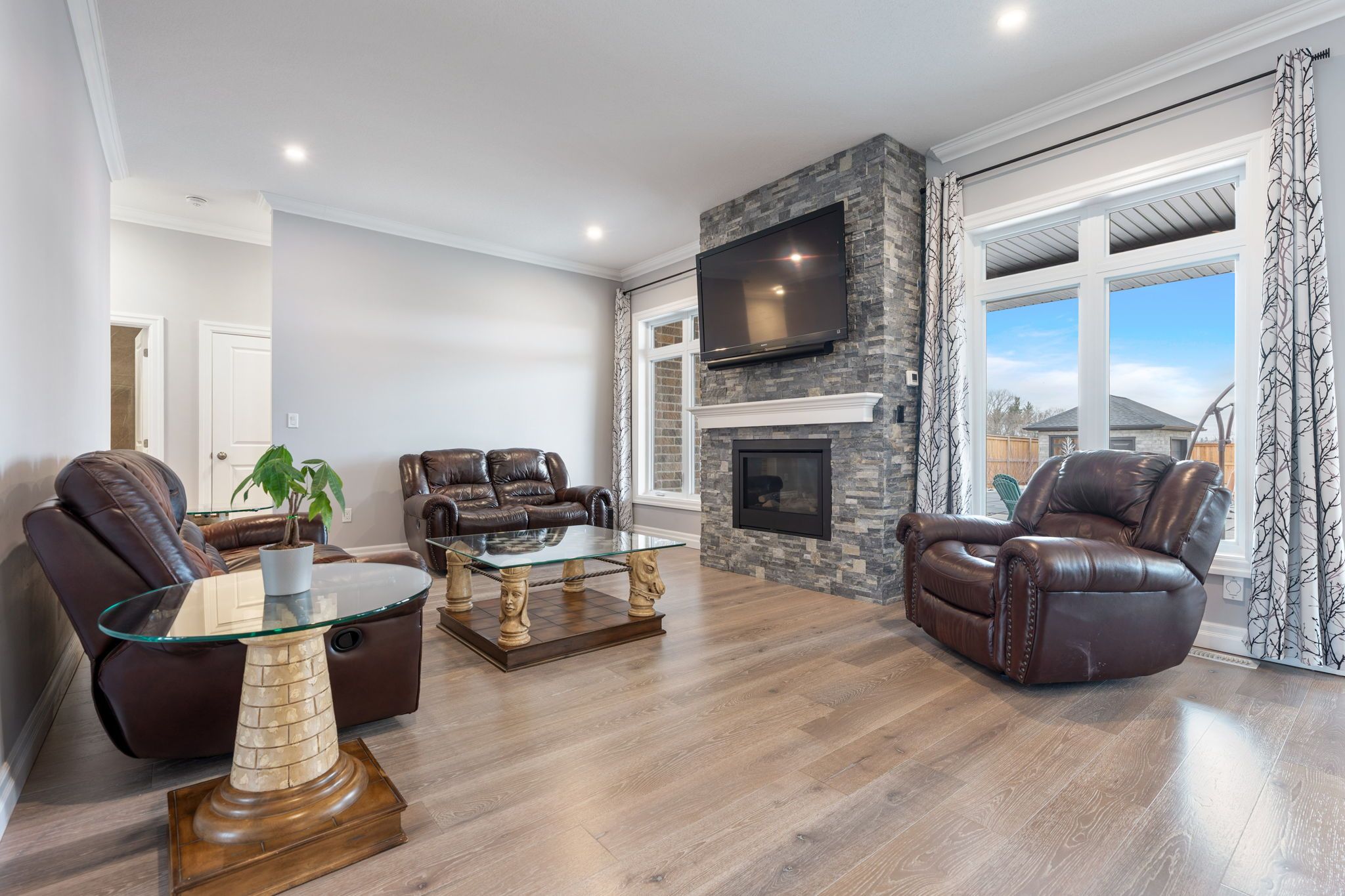 Country living in this like-new bungalow located on a 92' x 185' lot in the quiet village of windham centre. This 3+1 bedroom, 3 bathroom stone and brick home blends sophistication with comfort, making it the perfect haven for you and your family. As you step inside, you'll be greeted by soaring 10-foot ceilings, elegant transom windows that invite natural light to dance throughout the spacious main floor. The open-concept layout creates an airy ambiance, perfect for both entertaining and everyday living. The heart of the home, a meticulously crafted kitchen, is a chef's dream, featuring full-height cabinetry, state-of-the-art built-in appliances, and a generous butler's area ideal hosting. You'll love the large walk-in pantry that offers ample storage for all your culinary needs. With three beautifully appointed bedrooms on the main floor, including a luxurious master suite with an ensuite bathroom, this home ensures comfort for everyone. Descend to the finished basement, where fun and relaxation await. The expansive family room is perfect for cozy movie nights or lively gatherings, while the spacious bar/kitchenette equipped with dual fridges makes entertaining a breeze. An additional bedroom and full bathroom provide ample space for guests or family members, ensuring everyone has their own space. Step outside to discover your private backyard oasis, ideal for summer entertaining and relaxation. Dive into the sparkling heated saltwater in-ground pool, soak up the sun on the surrounding patio or enjoy the shade of the covered porch, this outdoor space is designed for enjoyment, offering a perfect blend of leisure and luxury. Every detail in this meticulously maintained home speaks to refined living, from the exquisite finishes to the thoughtful layout that prioritizes both style and functionality. Additional features: sprinkler system, crown moulding, butlers pantry, speaker system, central vac, r/o system and more.