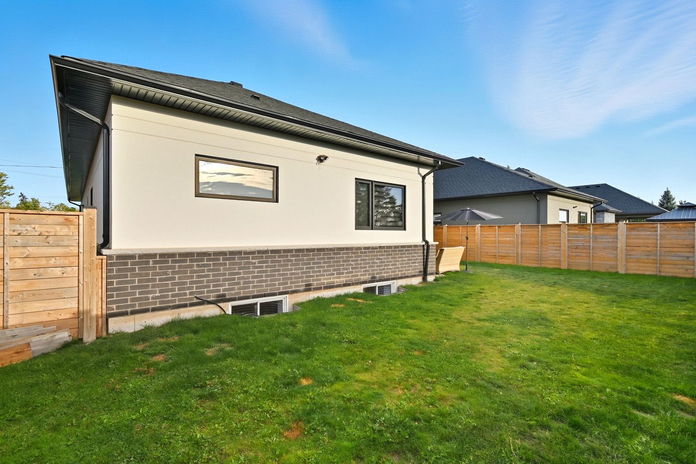 Central fonthill located across from the steve bauer trail, close to parks and schools. Custom built bungalow, 4 years new. 1830 sqft on the main floor, 1600 sqft finished basement, over 3400 sqft of finished living space. Covered front porch, open concept plan, modern quality finishes, 9 ft ceilings, 8 ft doors, engineered hardwood, tiled floors throughout, rustic wood beams in the living area. Stylish kitchen with lacquered finish cabinetry, quartz countertops, tiled backsplash and island with breakfast bar. Floor to ceiling tiled gas fireplace, custom blinds. 3 large bedrooms, a private primary bedroom located at the back of the home, spa- like 5pc ensuite bathroom, large walk-in closet. 2nd bedroom is located down the hall with a main 4 piece bath. Front bedroom currently being used as a den/office. Main floor laundry area entrance from the garage. Oversized double garage, separate walk up entrance to the basement, perfect for the potential of an in-law suite. The lower level features a massive 40 x 22 ft rec room, large windows, a second gas fireplace stone mantel. 4th guest room, spacious 3 piece bathroom, insulated/soundproofed room perfect for a quiet office space or music room. The basement has multiple ethernet cat-8 cables for direct internet capabilities. Fully fenced backyard (2023). Minutes to town, easy access to highway 20 and the qew. 30 minutes to st. Catharines or niagara falls, enjoy our best golf courses and niagara's finest wineries. Flexible closing date available! Come and see for yourself!