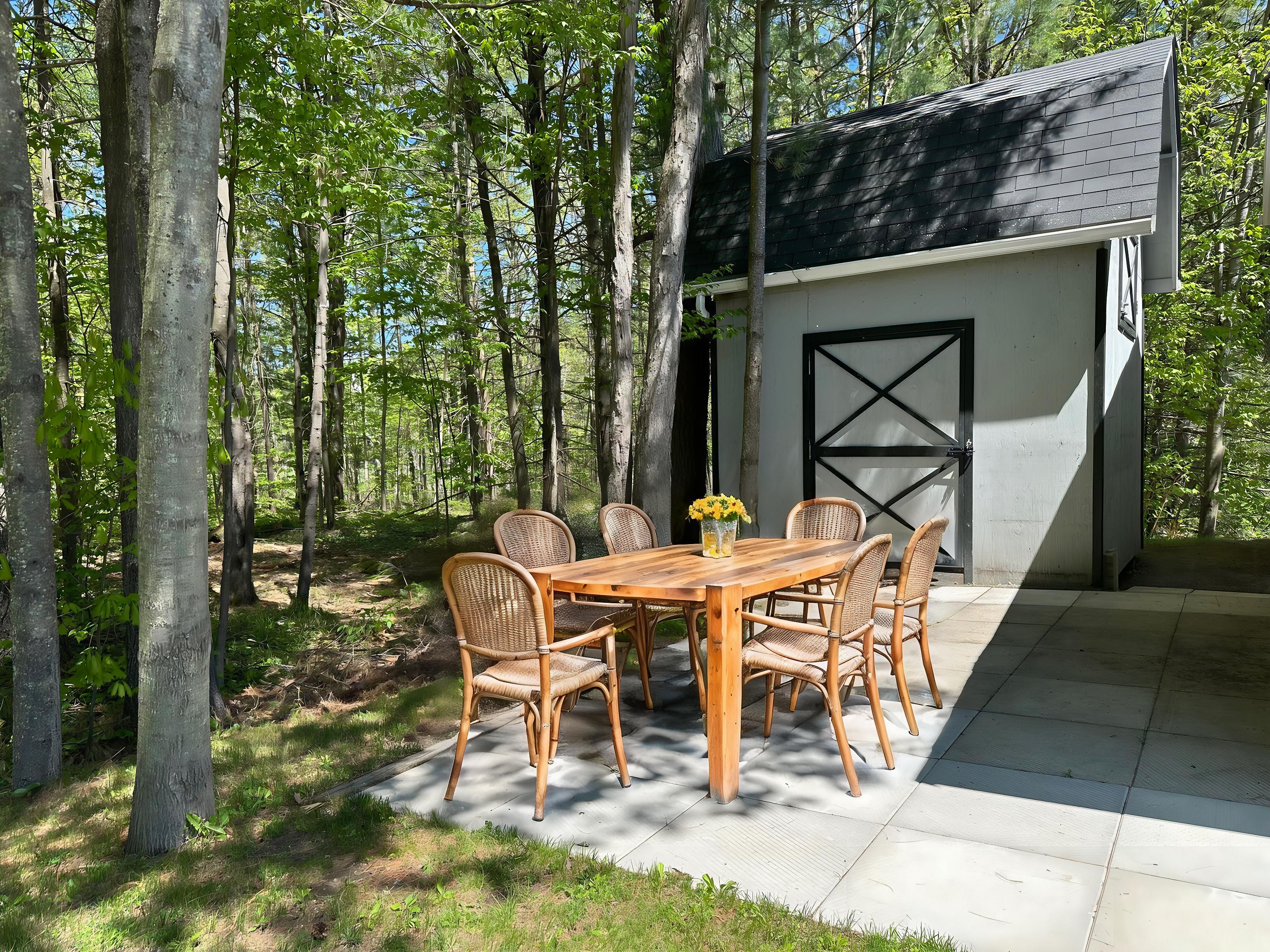 • Private wooded area in the backyard for added tranquility and privacy.