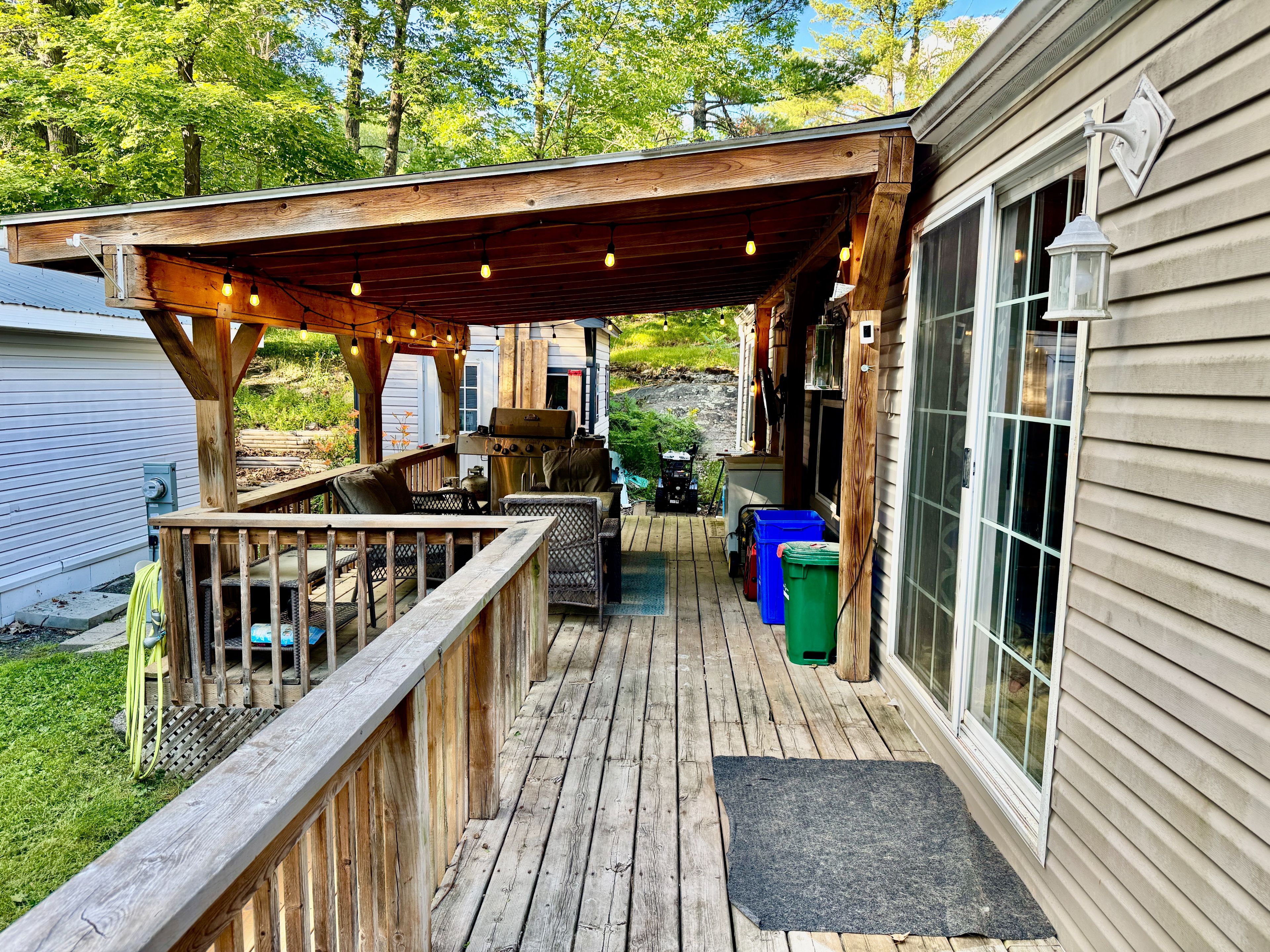 • Covered outdoor deck nearly doubles living space in warmer months.