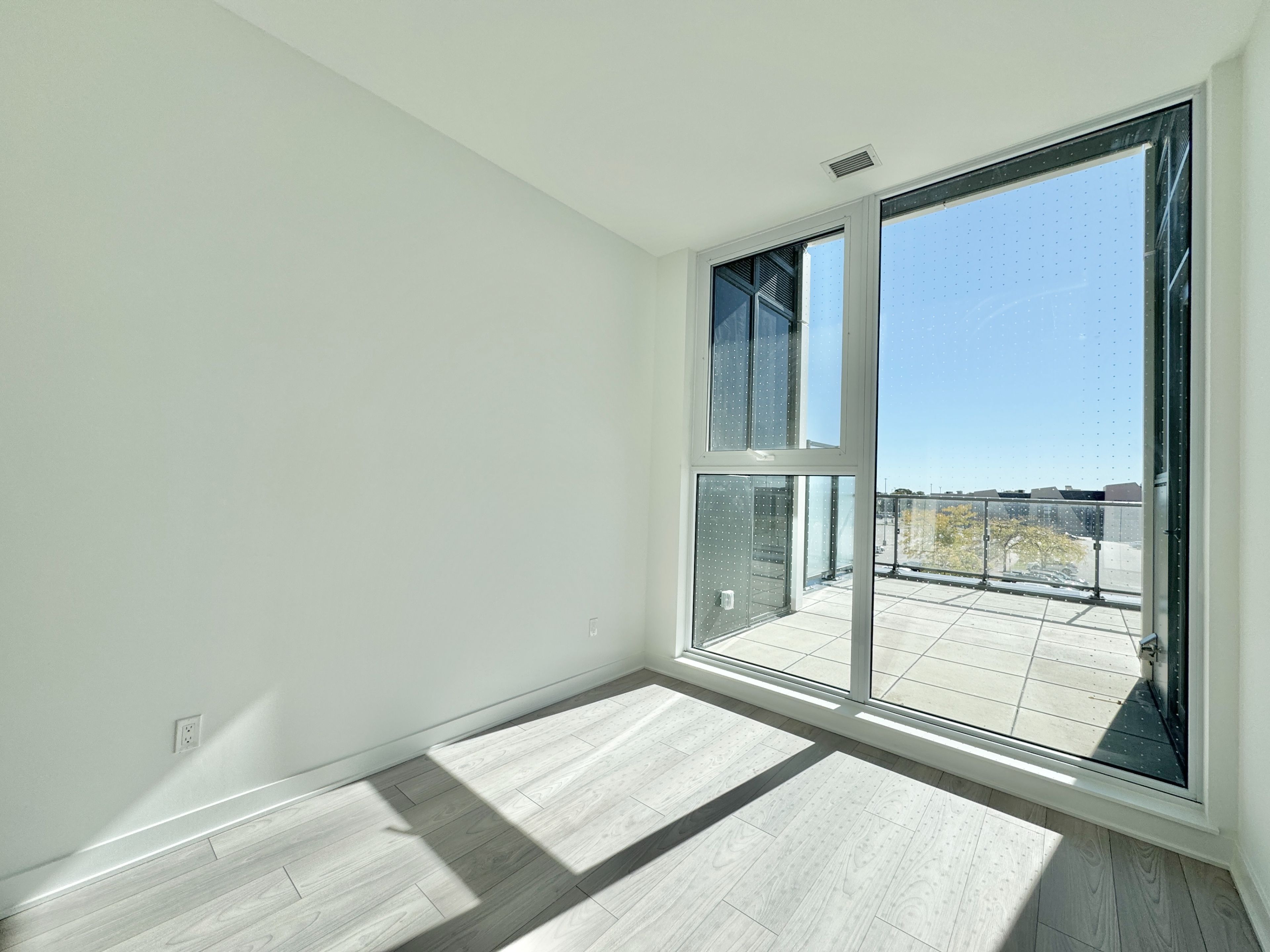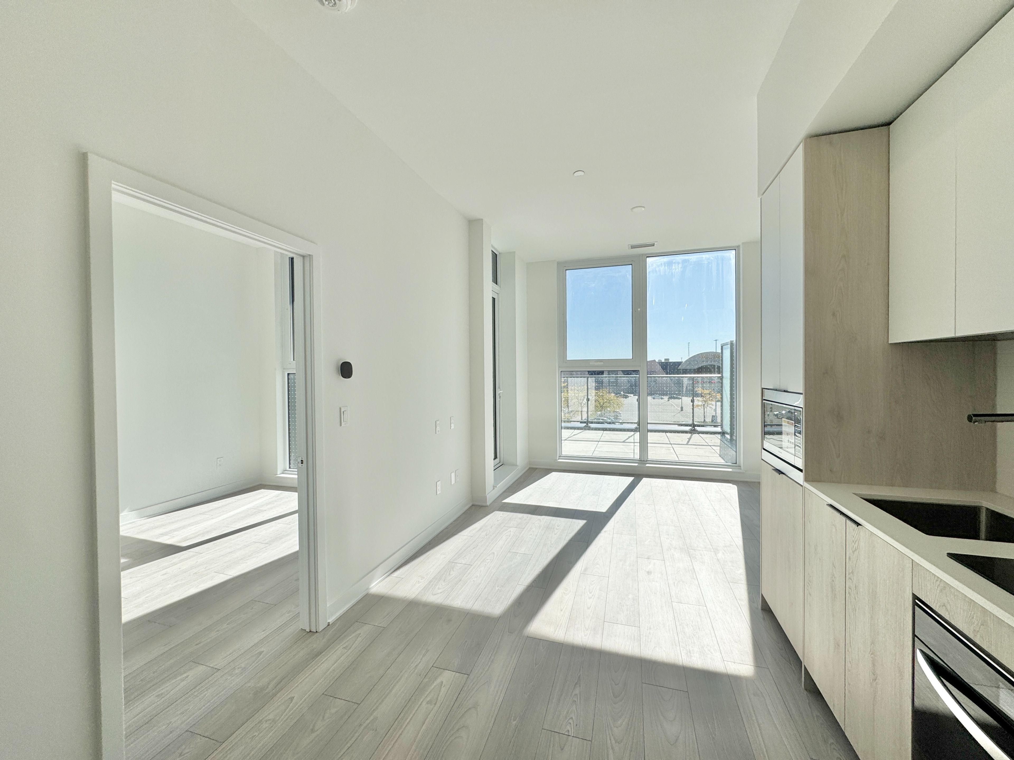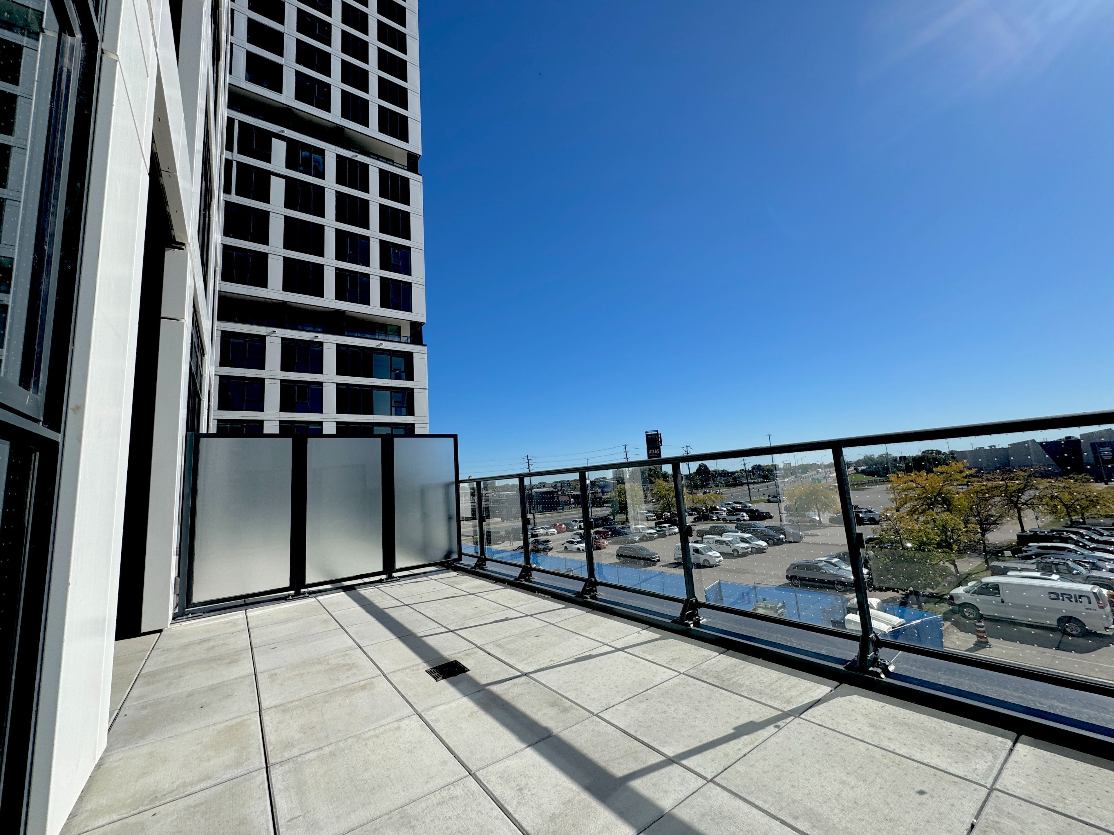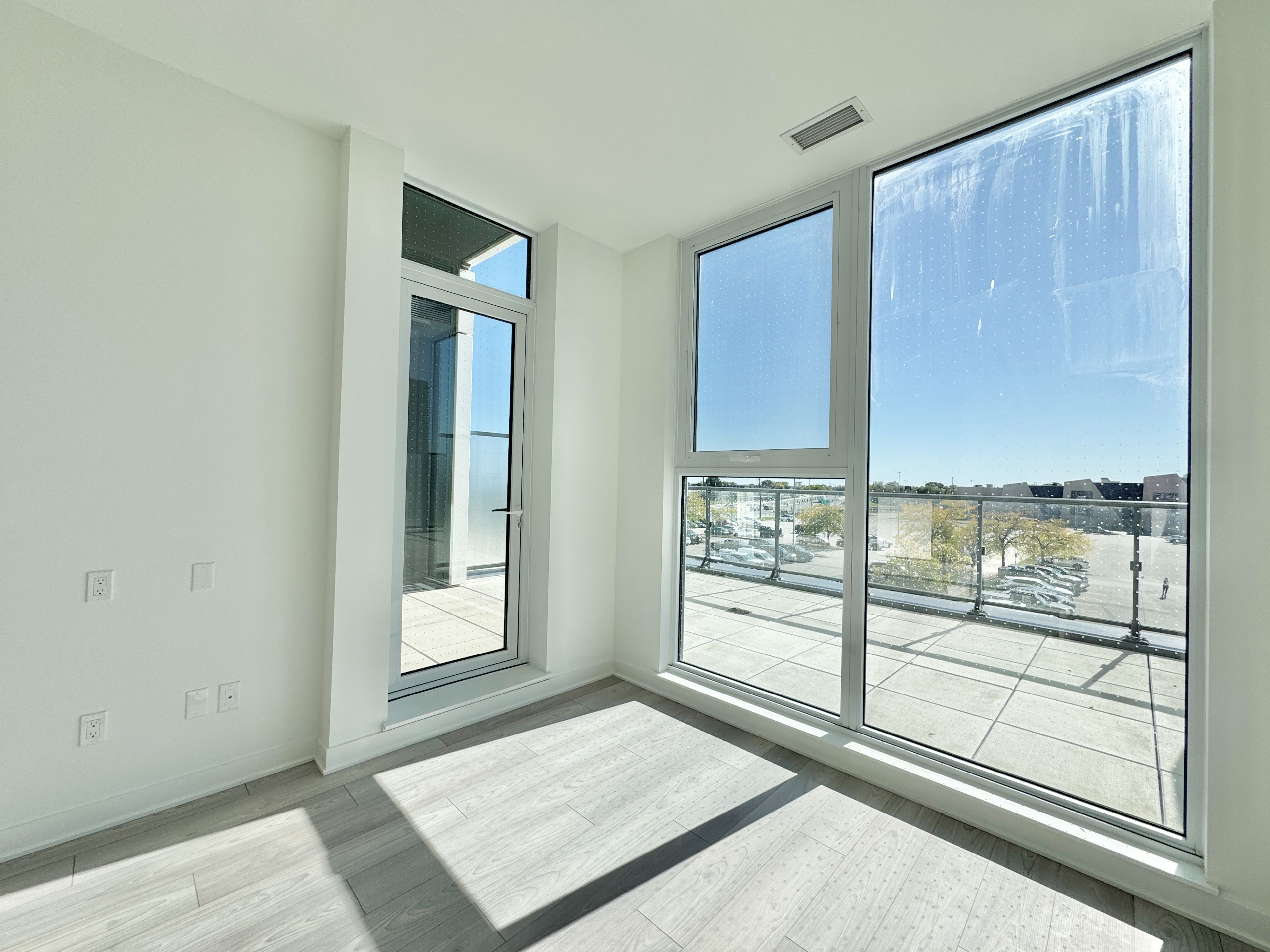 Step into modern comfort in this bright 1-bedroom plus den, 2-bathroom suite featuring 10-foot ceilings, floor-to-ceiling windows, and a sunny south exposure. The open layout includes a spacious den that can easily function as a second bedroom, or home office, offering flexibility for your needs. Enjoy seamless indoor-outdoor living with a massive 271 sq. Ft. Terrace, complete with a gas line and water hookup, perfect for bbqs, gardening, or relaxing in the sun. This suite includes 1 parking space and 1 locker, keyless smart door access, in-suite hvac control, and high-speed internet included. The 1valet resident app centralizes amenity bookings, visitor access, thermostat control, and community updates for an effortless living experience. Building amenities: 24-hour concierge, dog spa, fitness studio, golf simulator, co-working spaces, indoor kids' play studio, party and games rooms, and an outdoor rooftop lounge with cabanas, bbqs, and dining areas. Located in the heart of etobicoke, steps from great dining, shopping, and entertainment. Walk 2 minutes to ttc or 15 minutes to kipling go station, with sherway gardens, costco, ikea, and quick access to highway 427 and the gardiner expressway for easy commuting.