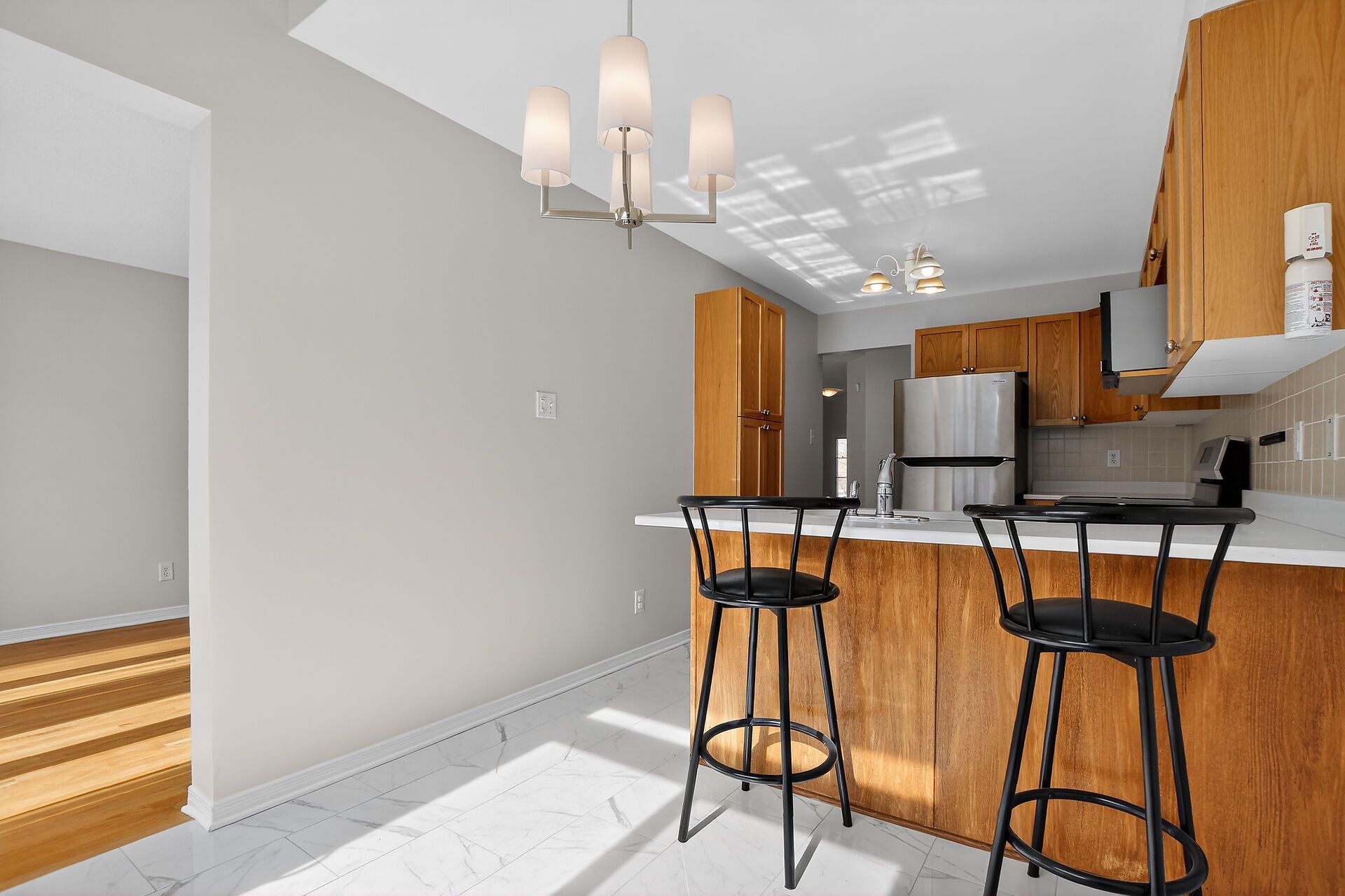 • Updated kitchen with new appliances and elegant quartz countertops.