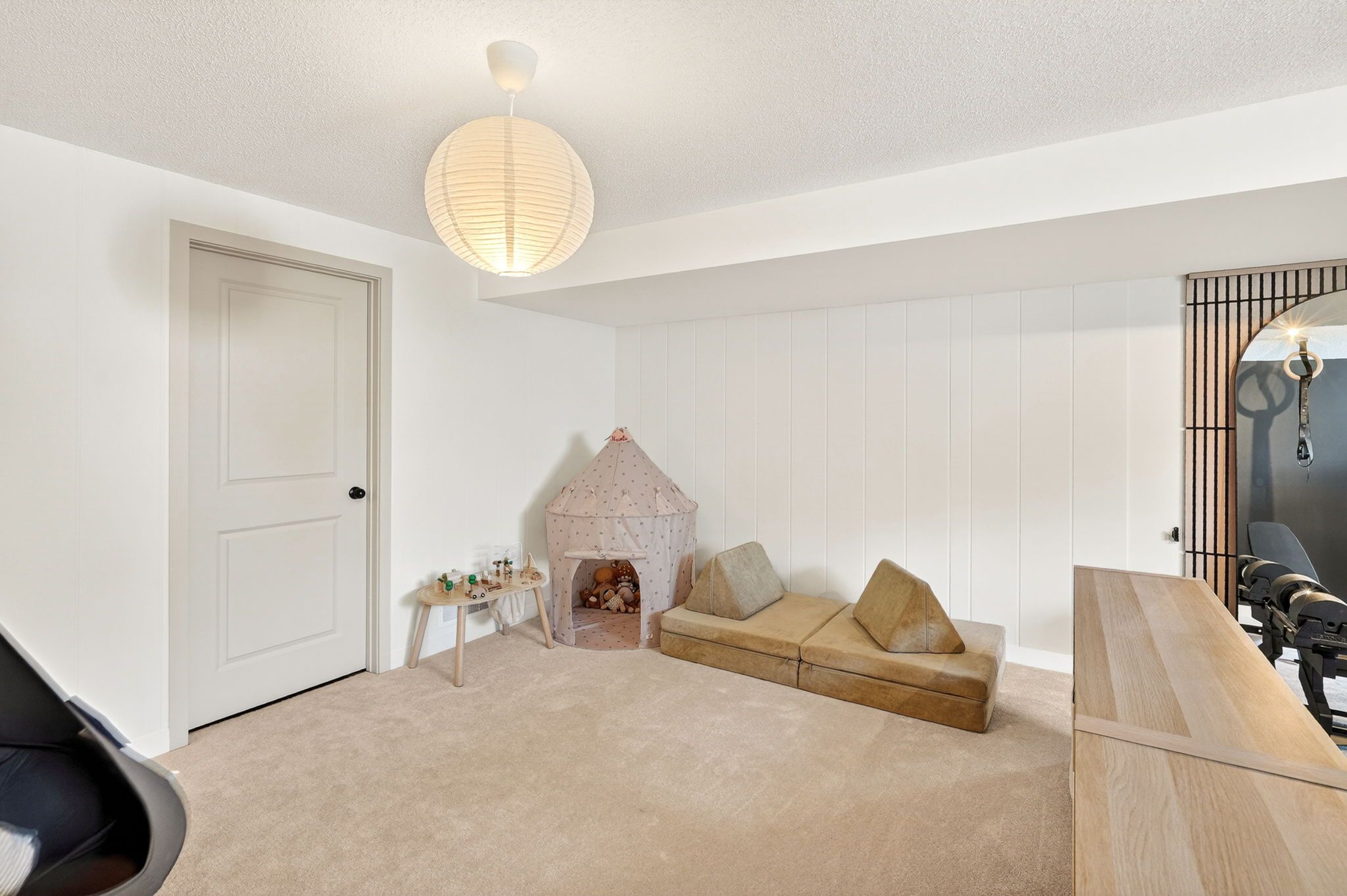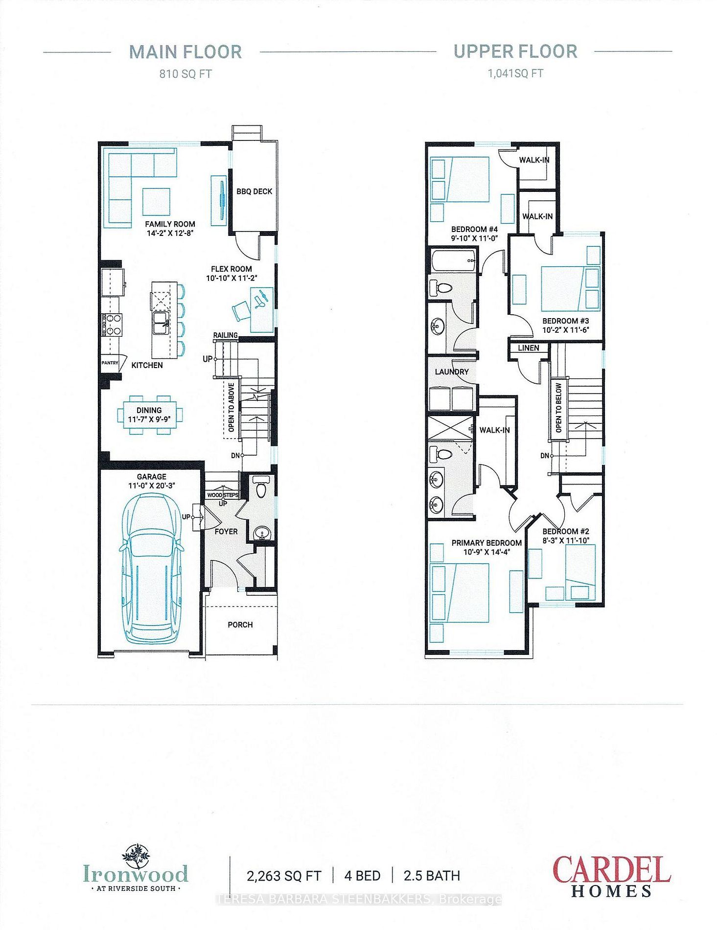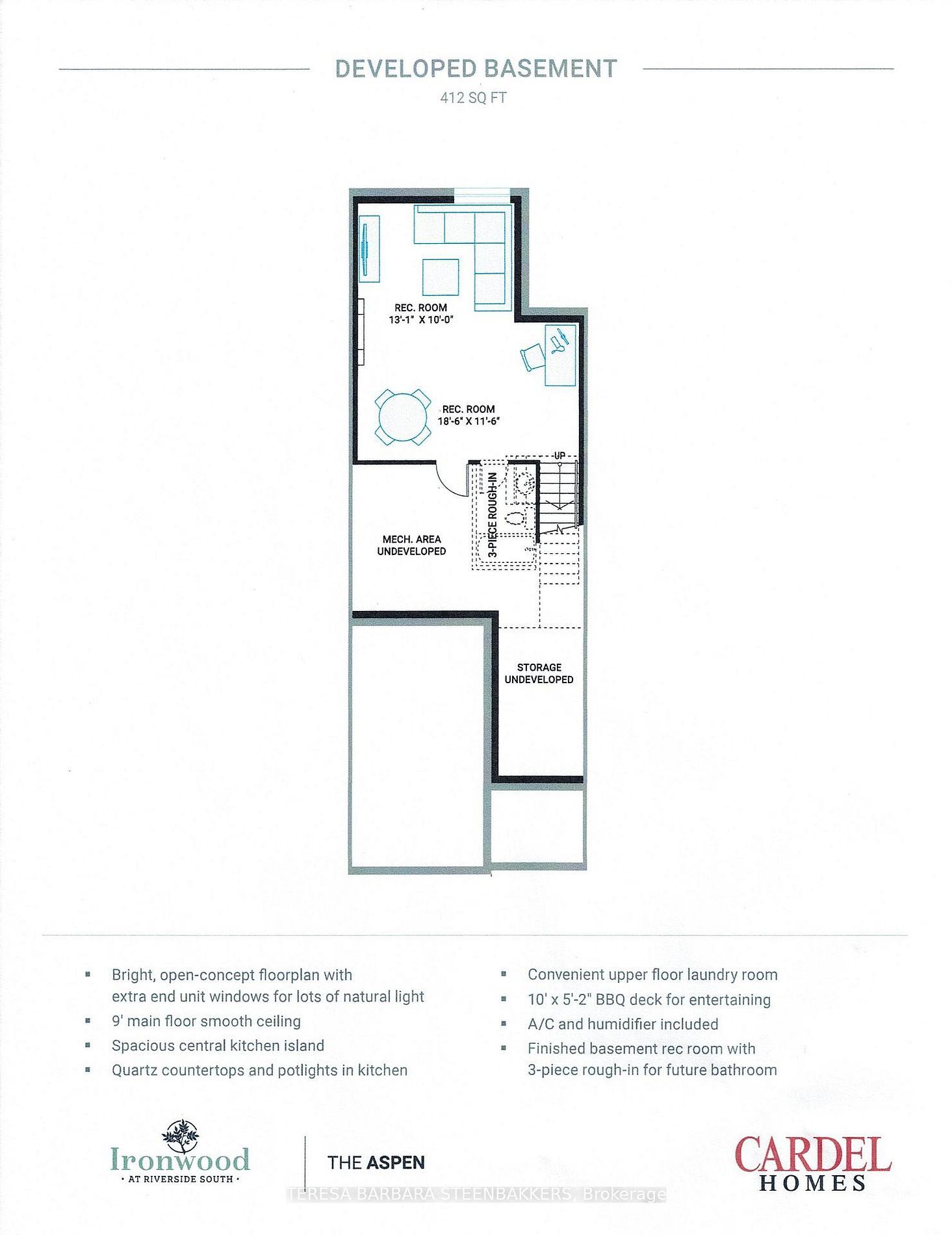 • Outdoor BBQ deck and quiet garage door opener for convenience.