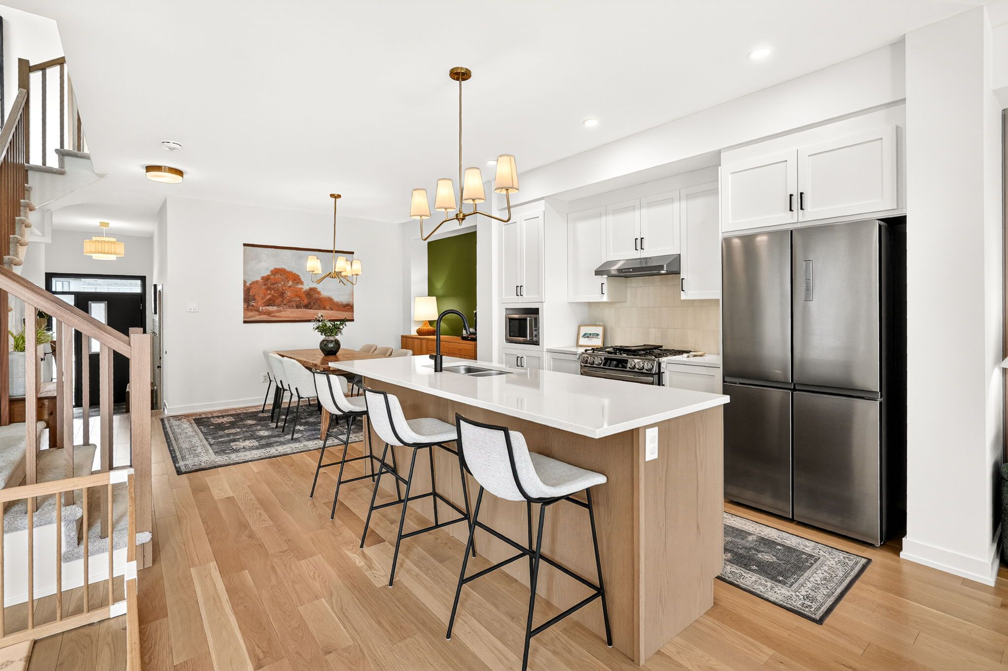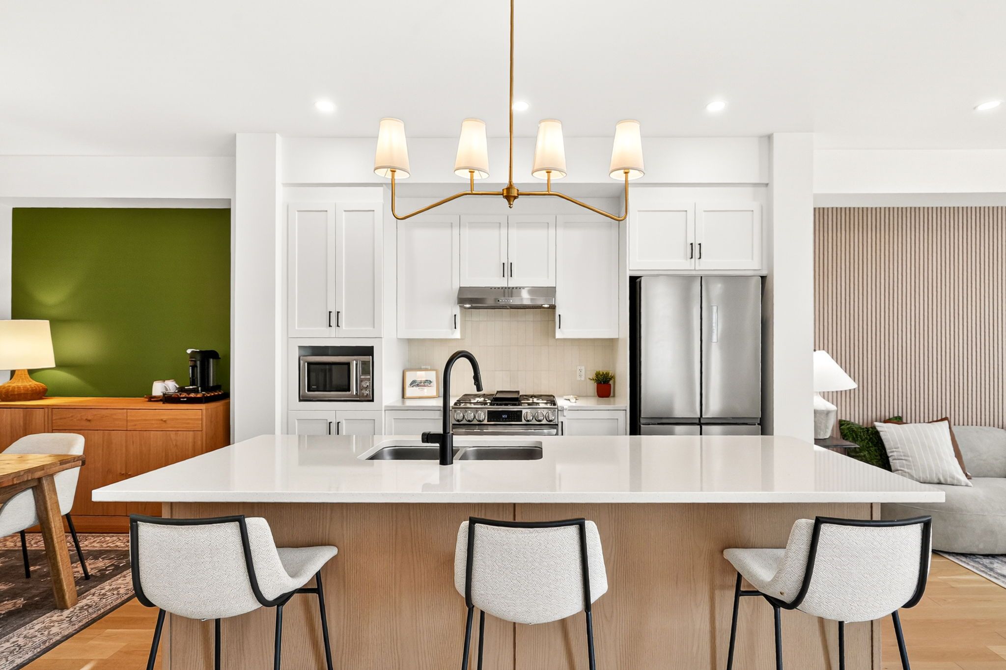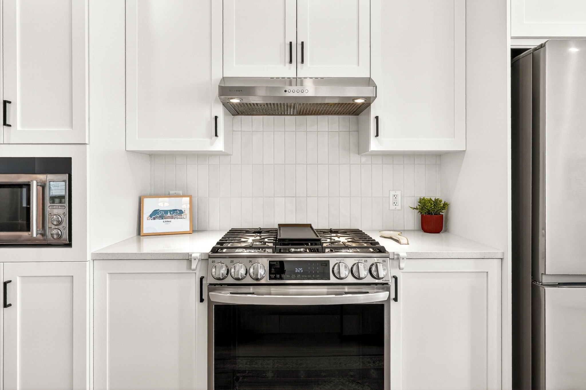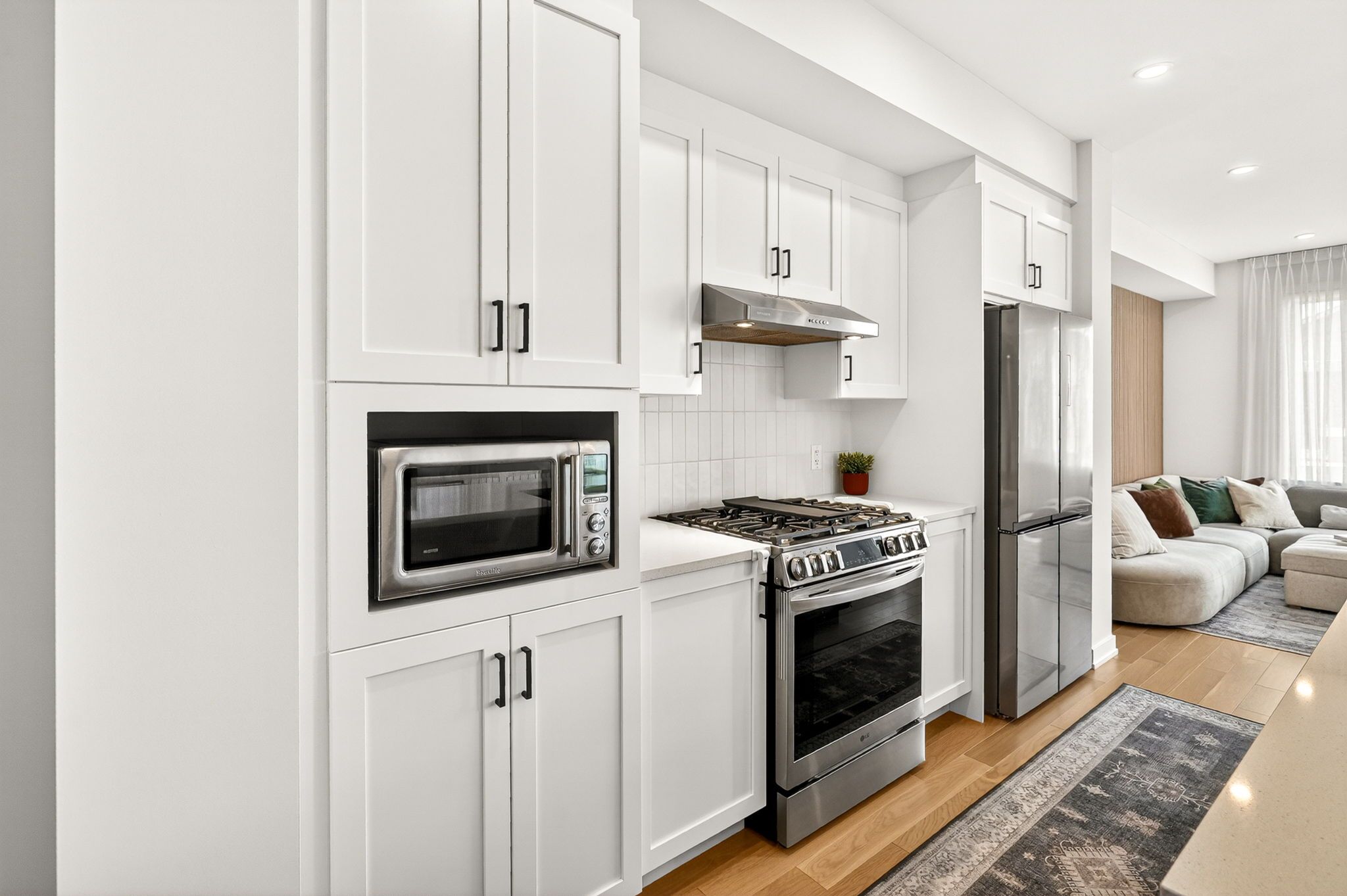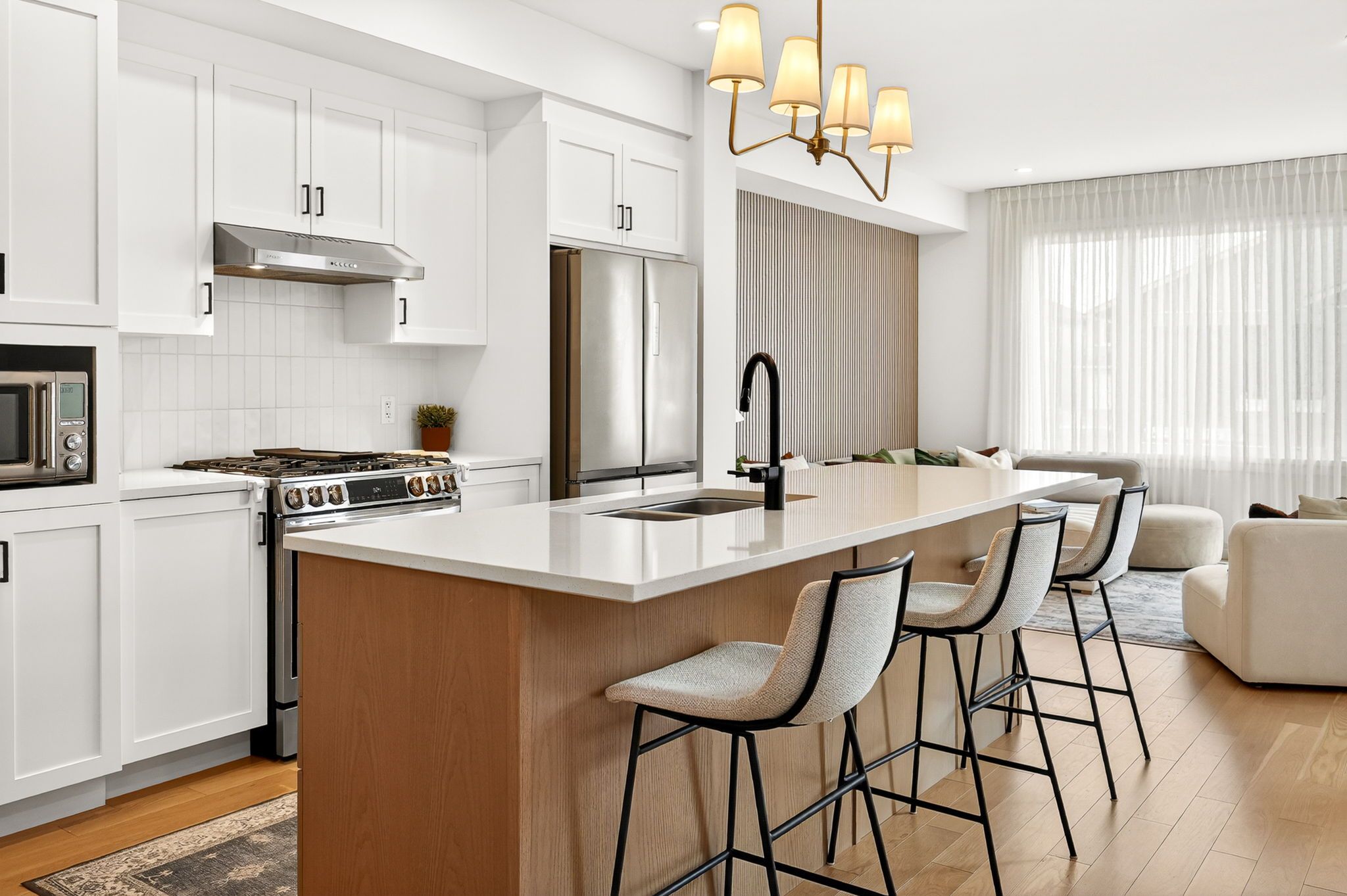 • Gourmet kitchen featuring quartz countertops and smart appliances.
