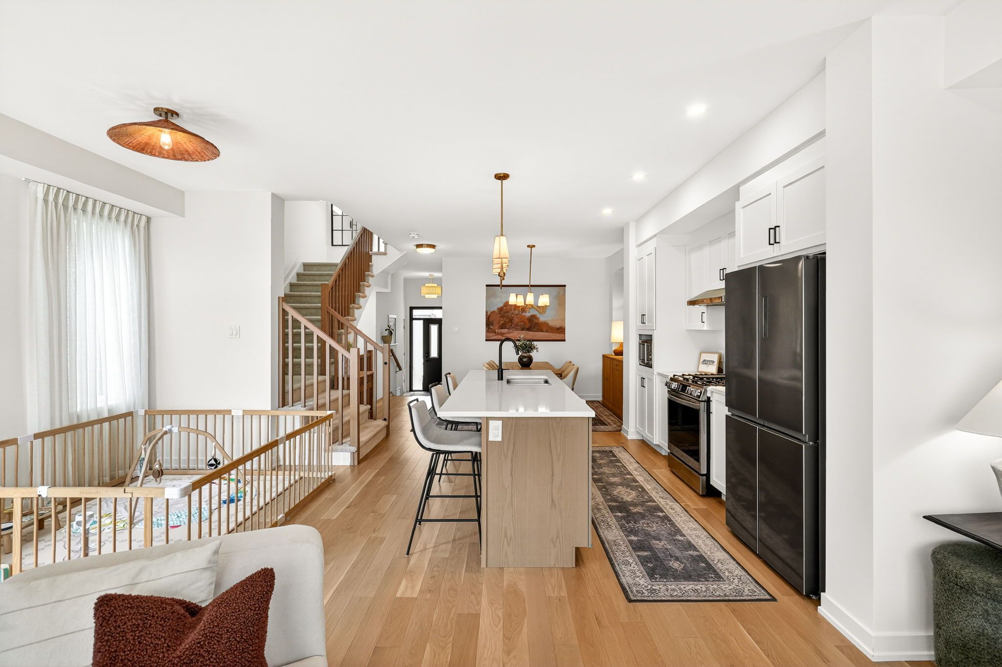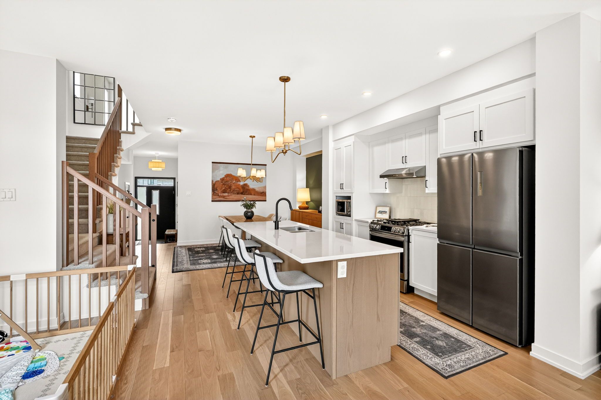 Welcome to 1009 acoustic way, a stunning 2024 cardel aspen (2,263 sq. Ft) 4 bedroom end-unit that rivals any model home in the booming community of ironwood riverside south. Boasting over $50k plus in builder upgrades & extensive custom owner improvements, this residence perfectly blends professional craftsmanship with bespoke designer style. The main floor is defined by sophisticated hardwood floors & an abundance of natural light thanks to upgraded windows in the flex room, powder room, & stairwells etc. At the heart of the home, the gourmet kitchen features hanstone tofino quartz countertops, category 2 cabinetry, an expanding island & a premium lg smart gas range & ss appliances. Designer touches abound, including custom wainscoting, accent walls, & elegant wallpaper paired with upgraded light fixtures & sleek matte black hardware throughout. Upstairs, you will find 4 spacious bedrooms with ample storage w/ 3 walk-in closets. The primary ensuite & 2nd bathroom serves as a true retreat, featuring a second drop-in sink, quartz counters, & upgraded tile. For ultimate modern comfort, the home is equipped with custom motorized blackout blinds, 6 4" led pot lights, & extra smart home devices. Situated on a 108. 60ft x 25. 25ft deep-end unit lot, the exterior offers a 51 sq. Ft. Bbq deck & 2024 eavestrough. Complete with an extra-quiet garage door opener & a basement featuring a 3-piece rough-in, this home provides the turn-key luxury of townhouse living & convenience. The rear neighbours are new build bungalows. 24-hour irrevocable on all offers.