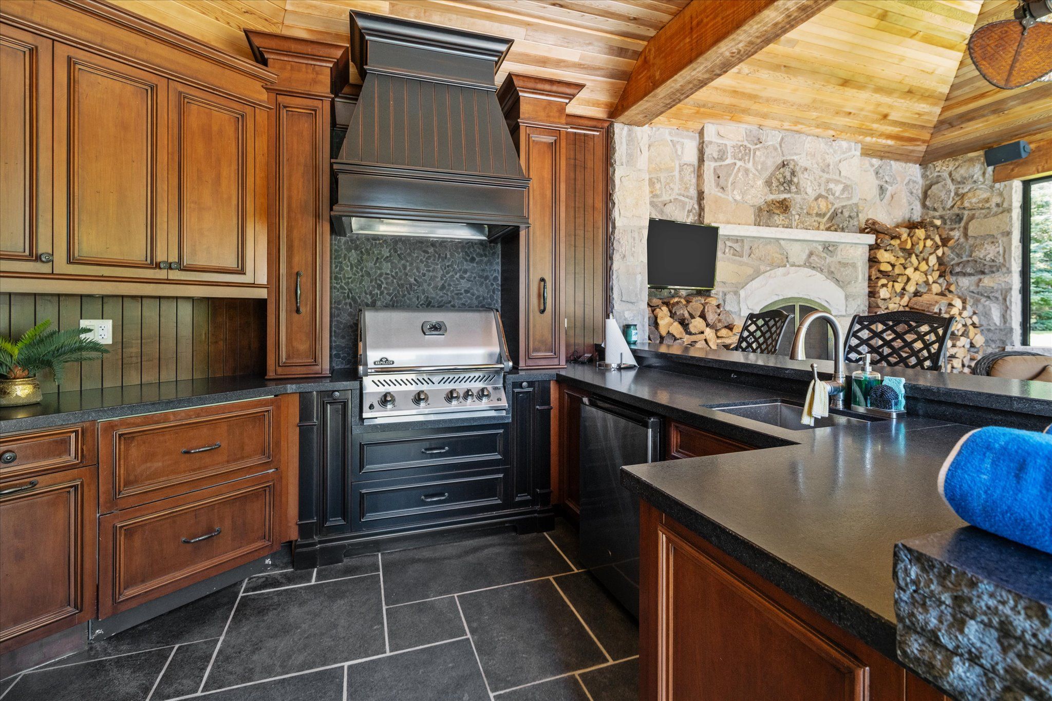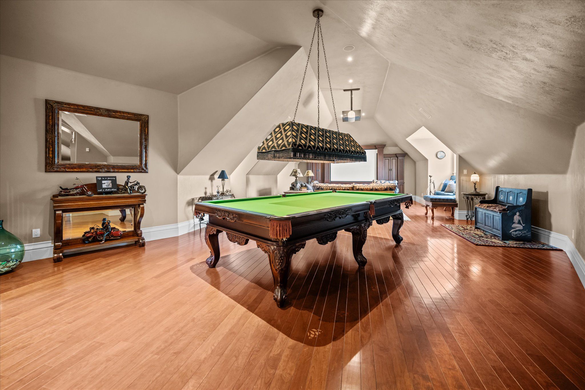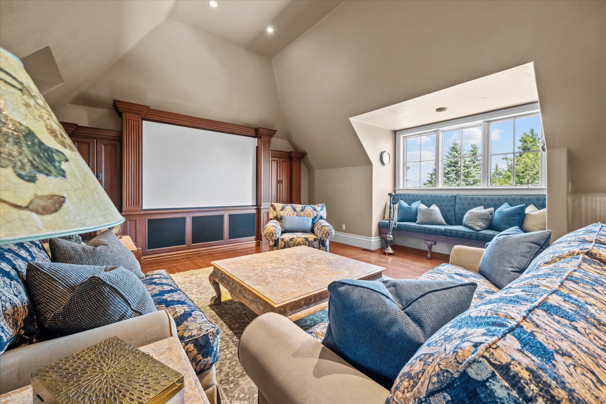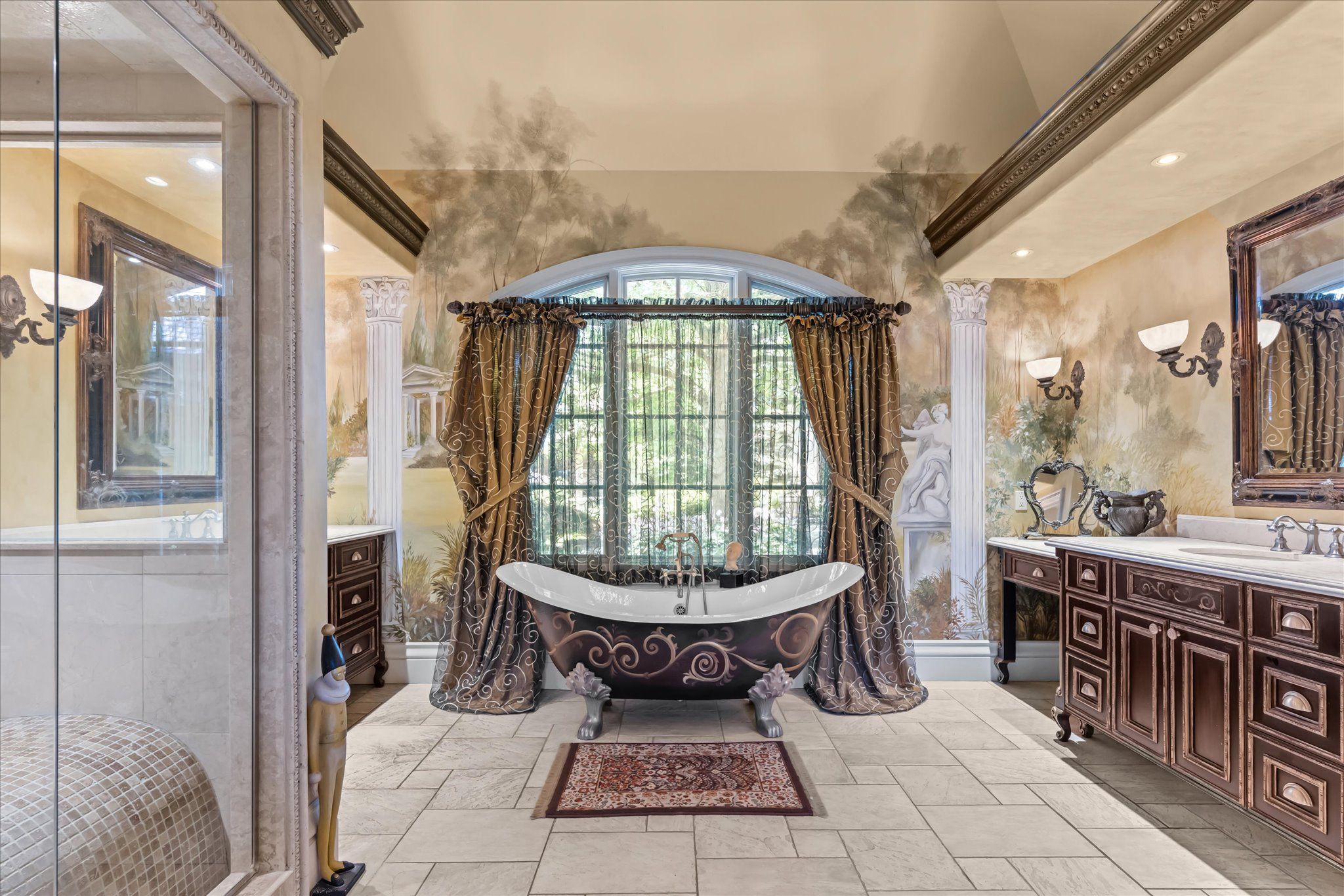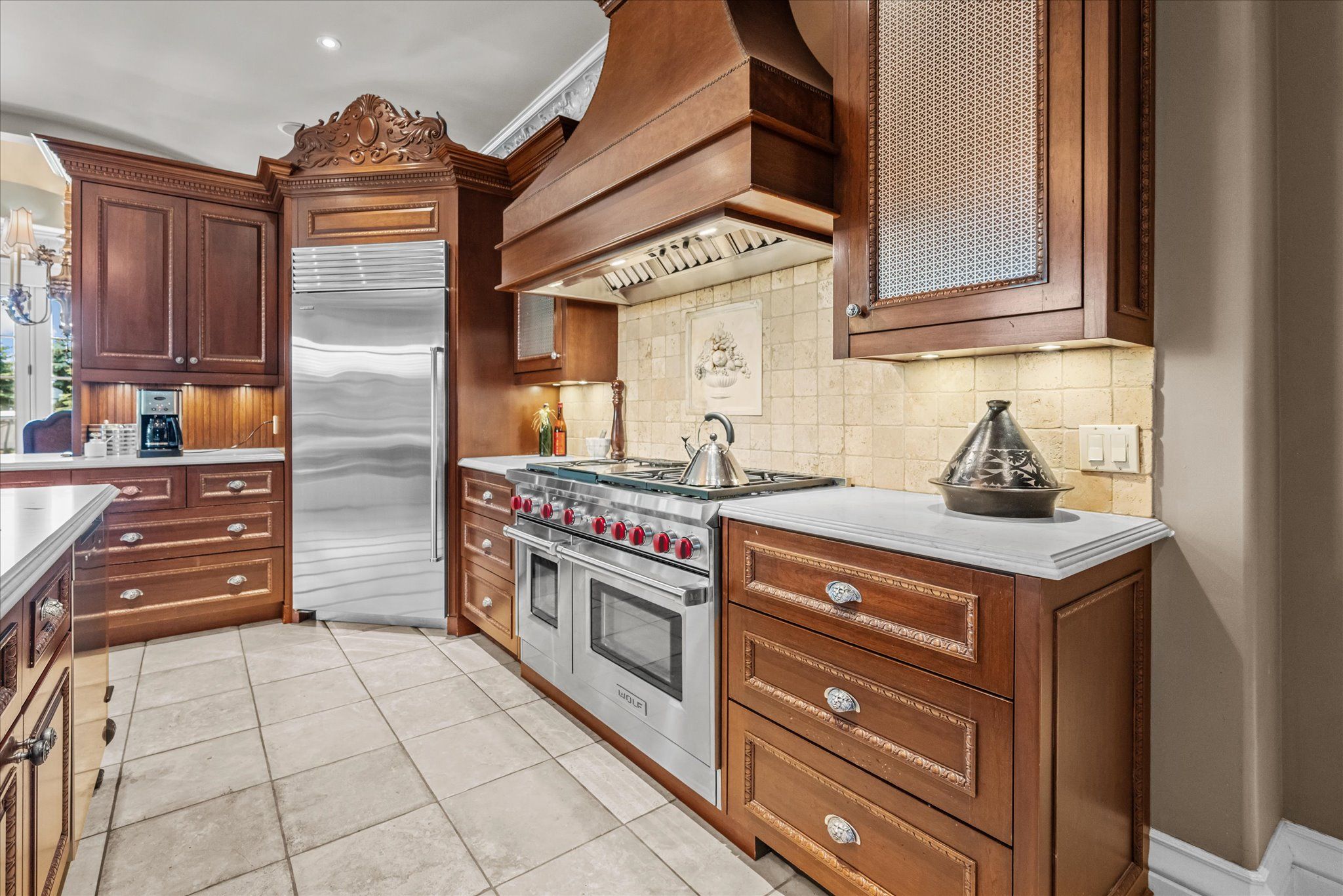 Stonegate manor - an architectural masterpiece! Nestled on 2. 5 acres of manicured grounds behind private gates in prestigious whispering pines estates, stonegate manor is a palatial estate crafted by an award-winning builder. A picturesque pond with fountain greets you at the foot of the driveway, setting the tone for timeless french manor-inspired elegance. A grand foyer with 17. 5-foot cathedral ceiling and hand-painted mural opens to a living room with 18-foot vaulted ceiling, two-storey cherrywood gas fireplace and expansive windows flooding the space with natural light. The chefs kitchen features a 48" wolf gas range, sub-zero fridge, miele dishwasher, servery, and three sets of french doors opening to a private courtyard. The formal dining room connects to a wine cellar with antique asian doors, while a private office with 15-foot vaulted ceiling, gas fireplace and built-ins offers a refined workspace. The luxurious primary suite boasts a 14-foot vaulted ceiling, courtyard walkout, gas fireplace, walk-in closet, gym, and spa-inspired 7-piece ensuite with clawfoot tub and steam shower with built-in chaise. A lofted entertainment area features a 14-foot vaulted ceiling, wet bar, pool table, theatre setup, and powder room. The finished lower level includes heated floors, full kitchen, 3 bedrooms, 2 baths, and walkout to a private patio - ideal for multi-generational living. Resort-style amenities include an inground saltwater pool with integrated hot tub, standalone hot tub, koi pond, and an additional pond with fountain. The cabana features a wood-burning fireplace, kitchen, seating, automatic mosquito screens, 2-piece powder room, and change room. Additional highlights: elevator to all levels, crestron home automation, oversized 3-car garage, and new concrete/asphalt driveway. A rare offering of elegance and lifestyle - just minutes north of campbellville!