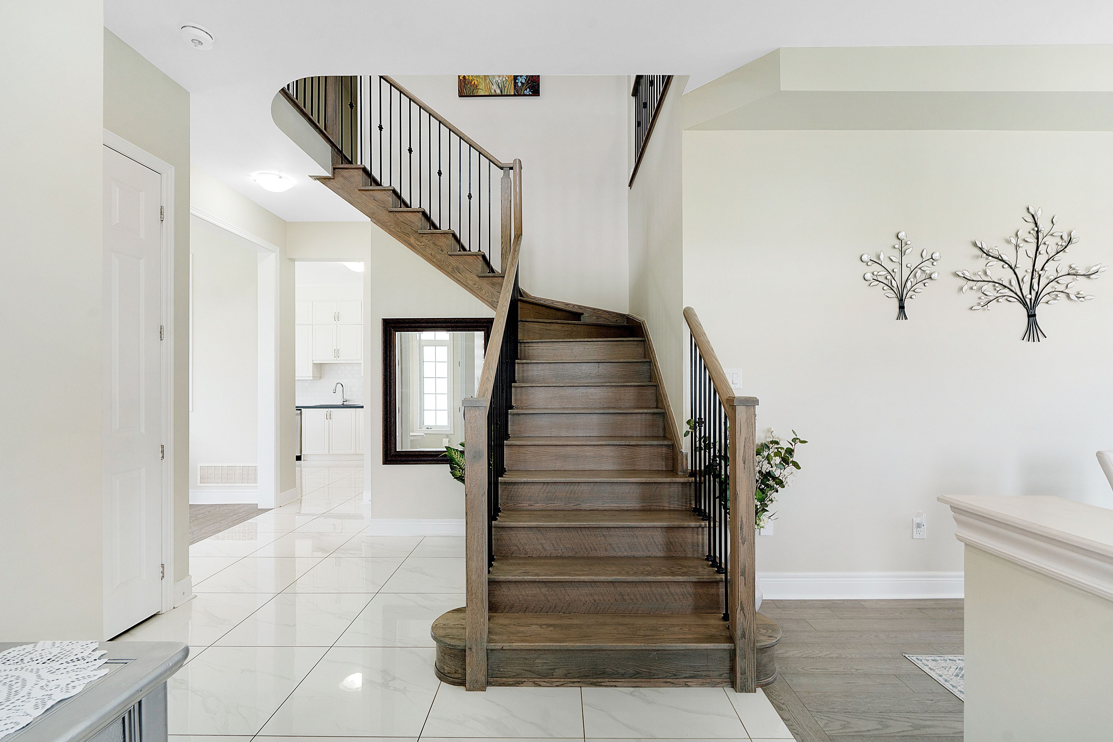 Detached corner home at 10th line & danby. This impressive detached residence features 4 spacious bedrooms and 4 full bathrooms, offering comfort and functionality for modern family living. A rare 10-ft ceiling on the main level and 9-ft ceilings on the second floor enhance the home's grand and airy feel. The elegant brick exterior complements the home's striking two-storey design. Step into a grand foyer showcasing custom marble flooring, an impressive wood staircase, and wrought-iron and wood railings, all accentuated by soaring ceilings and statement lighting. The home offers spacious living and dining areas, ideal for entertaining, along with a large kitchen featuring granite countertops. The unfinished basement with a separate entrance presents excellent potential for a future basement apartment or additional living space. Ideally located close to hospitals, schools, grocery stores, and recreational amenities including a country club and golf course, with quick highway access for easy commuting-this home truly offers an unbeatable combination of elegance, space, and convenience.