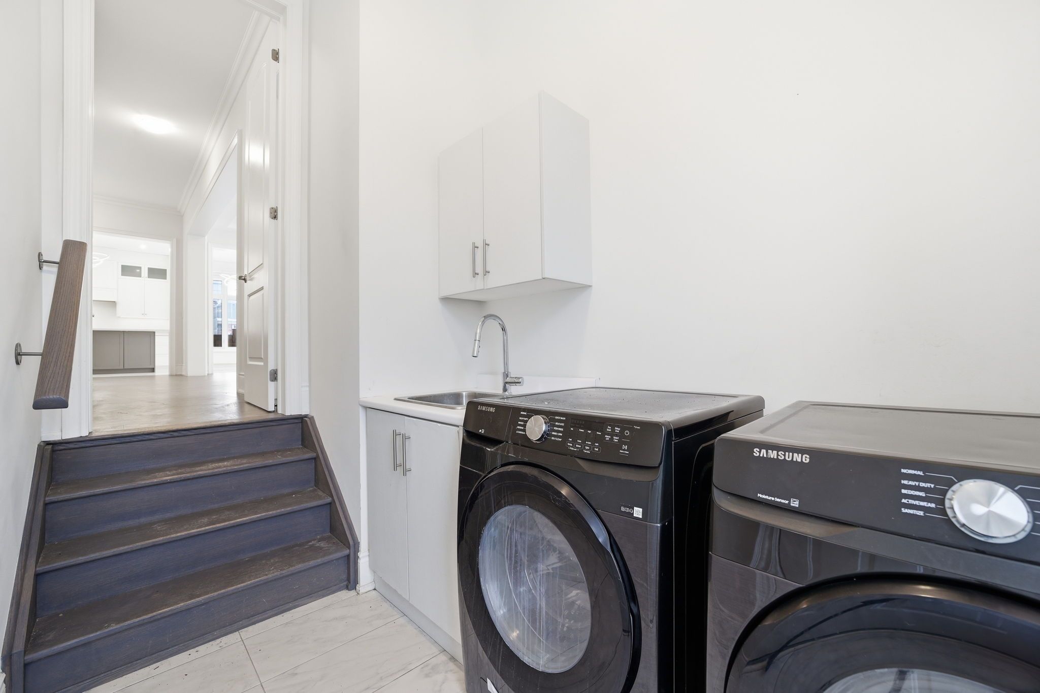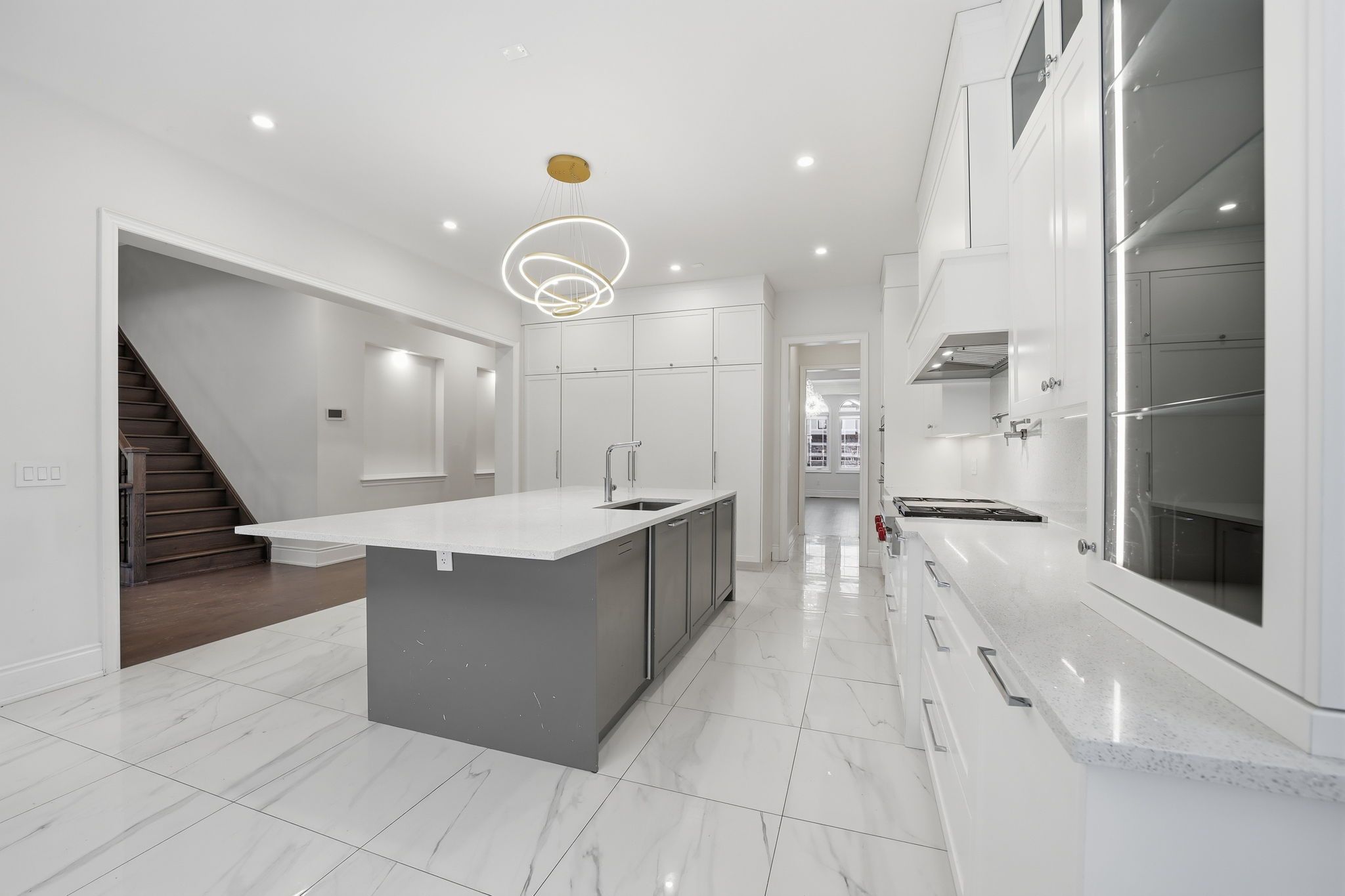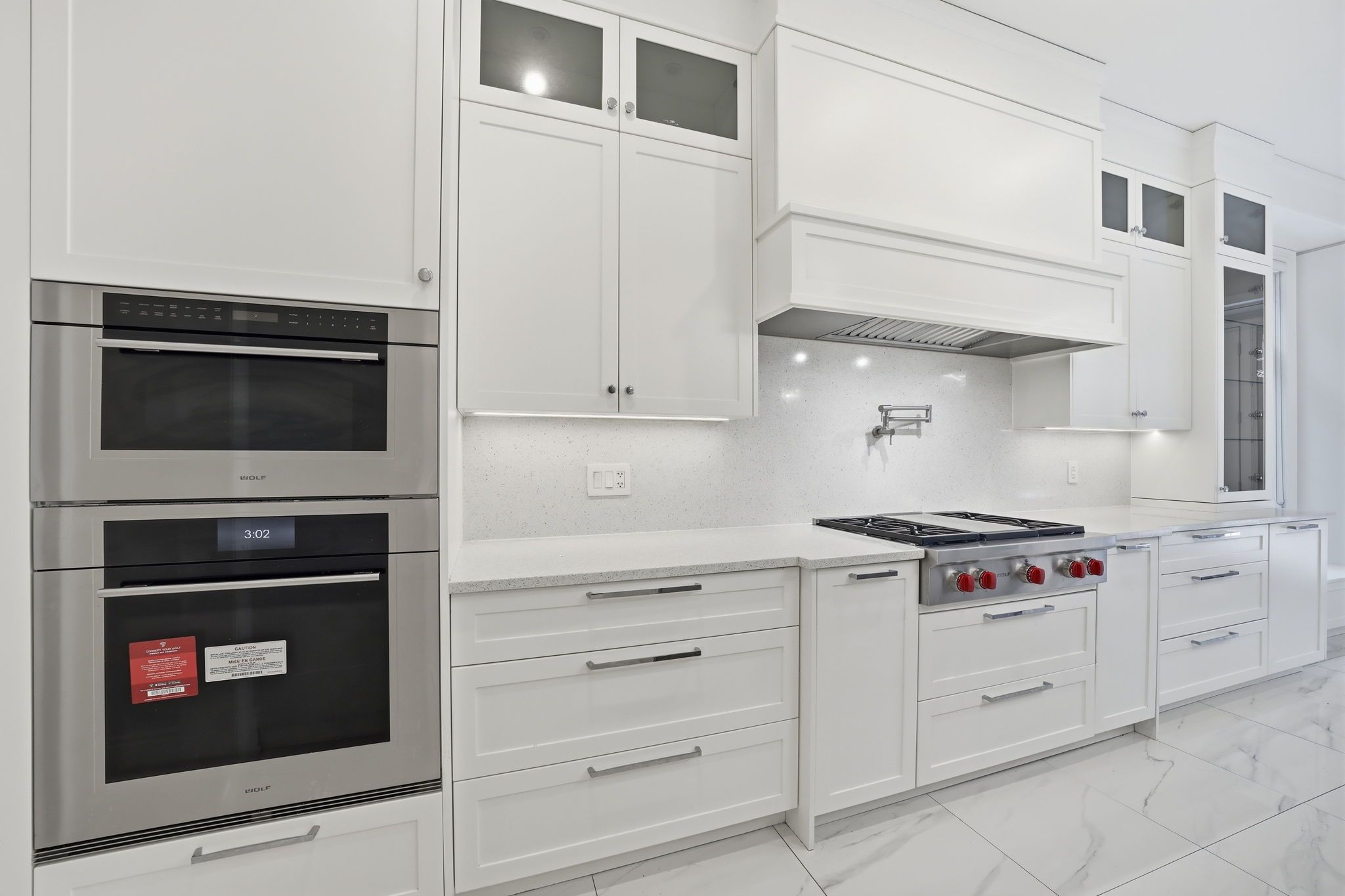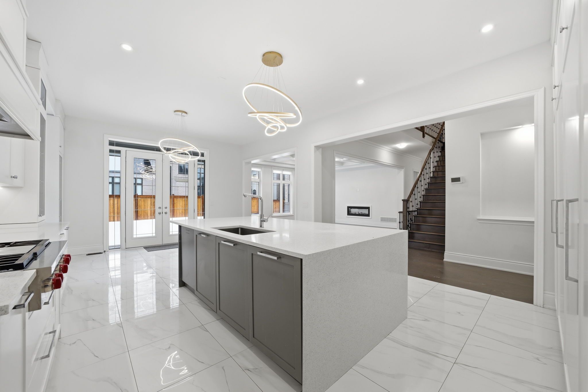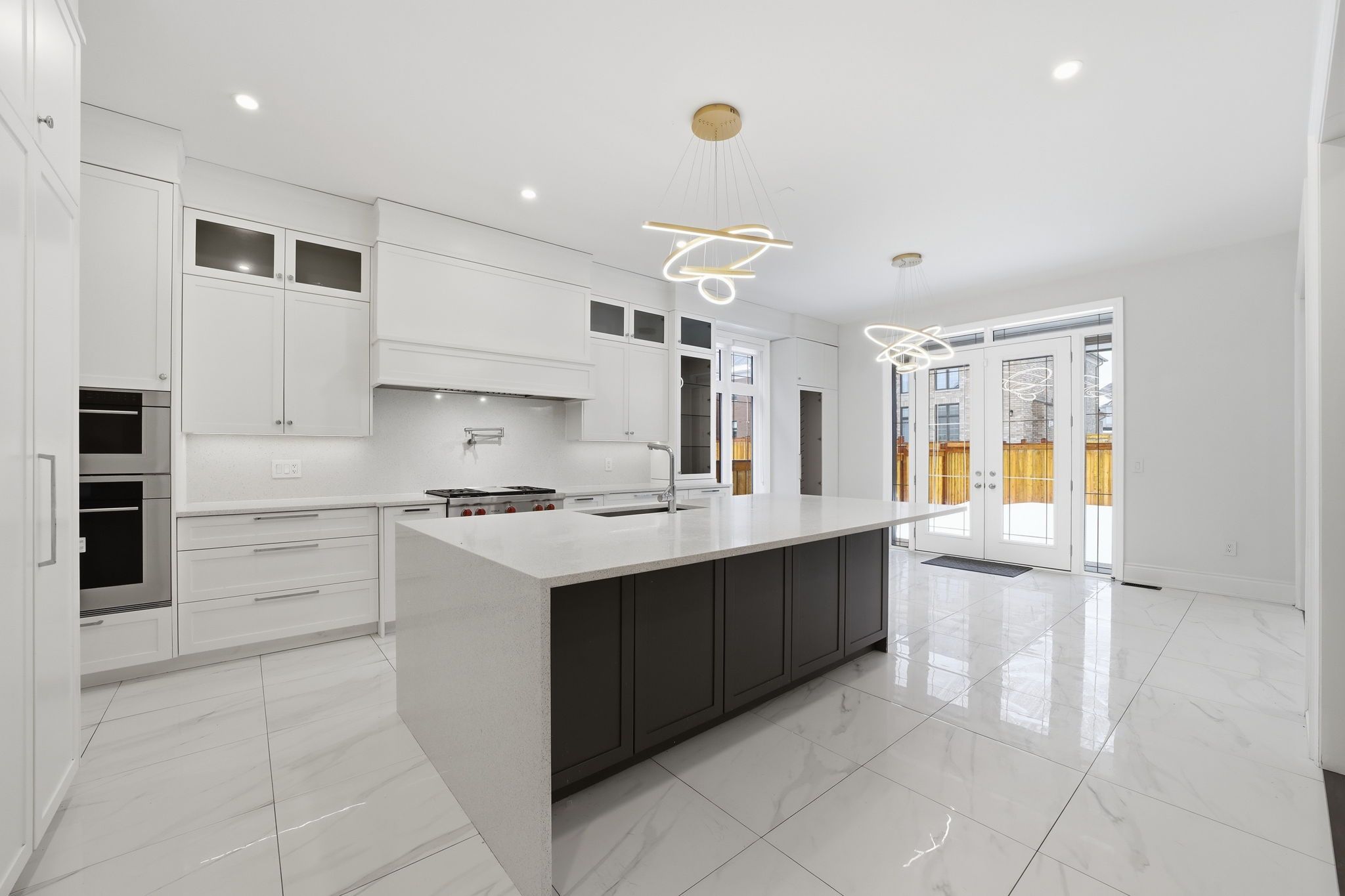 • Modern chef's kitchen with premium appliances and granite countertops.