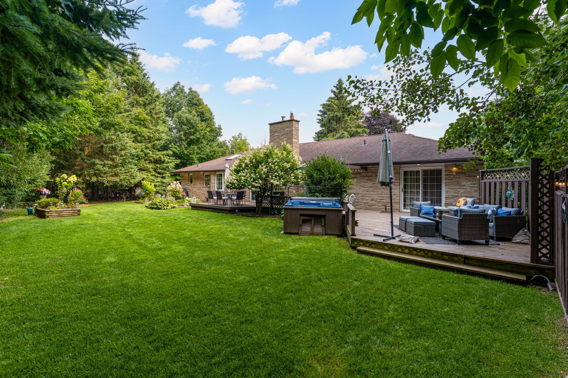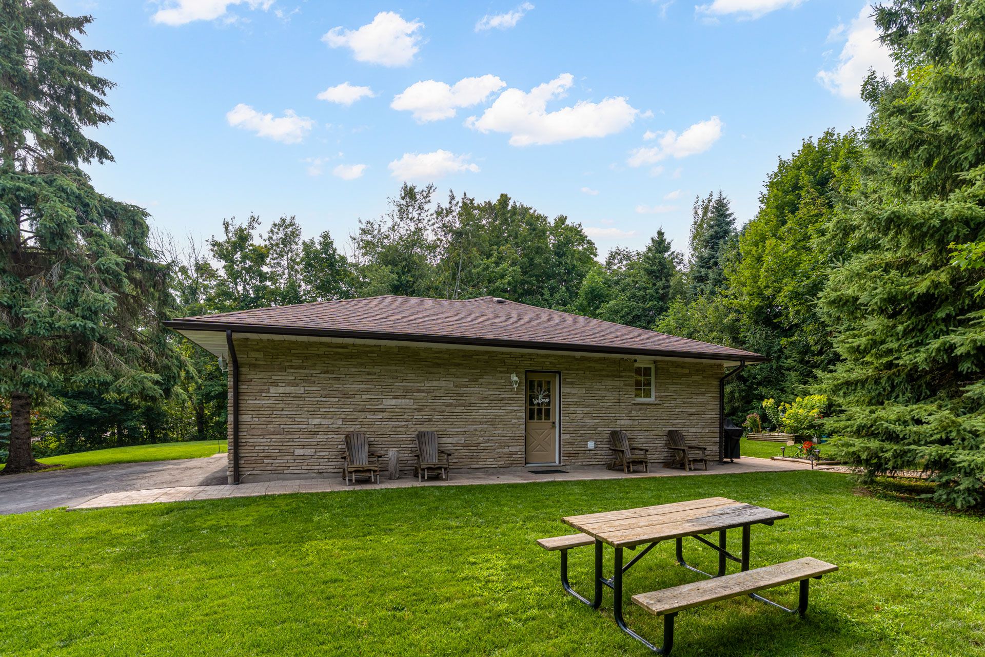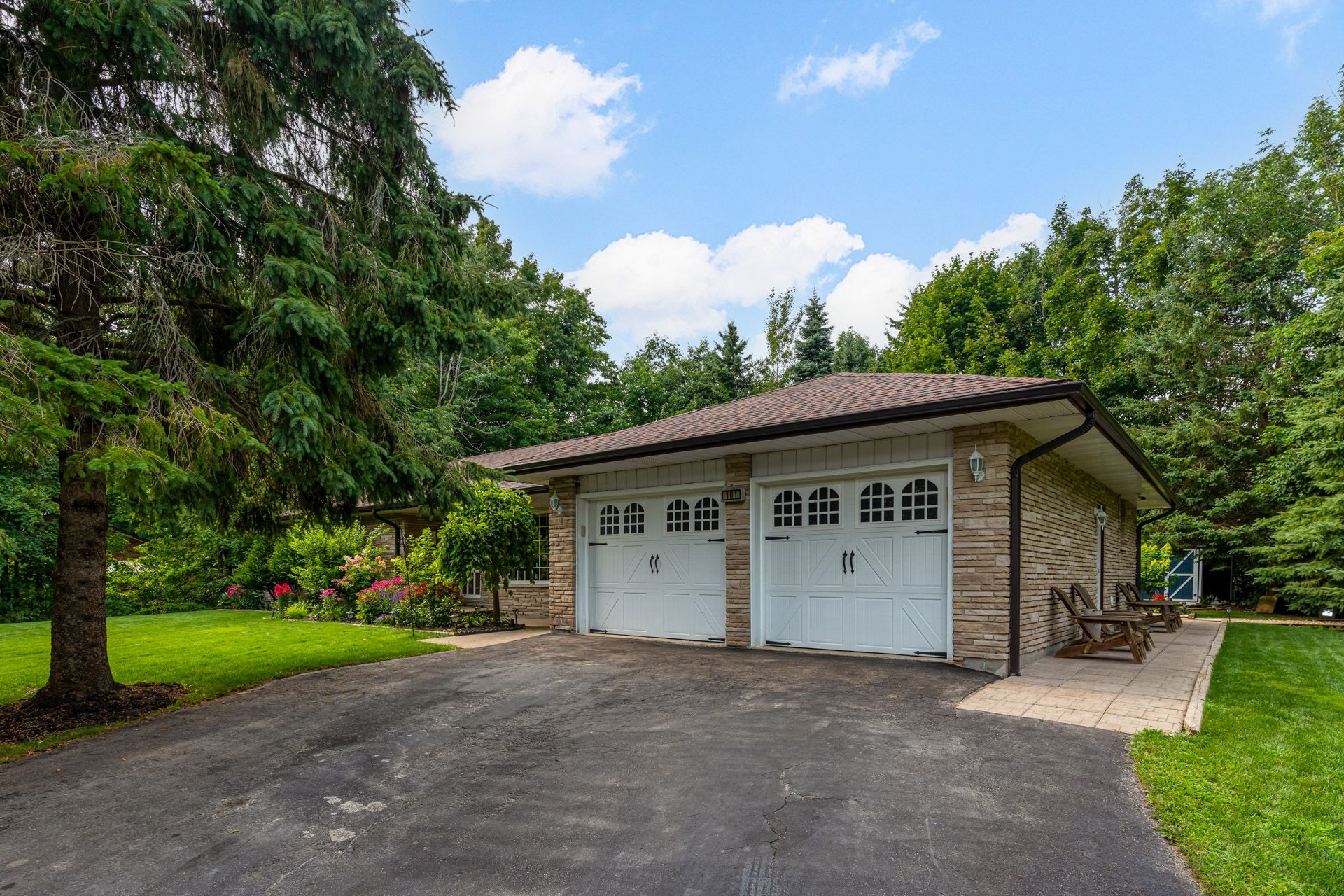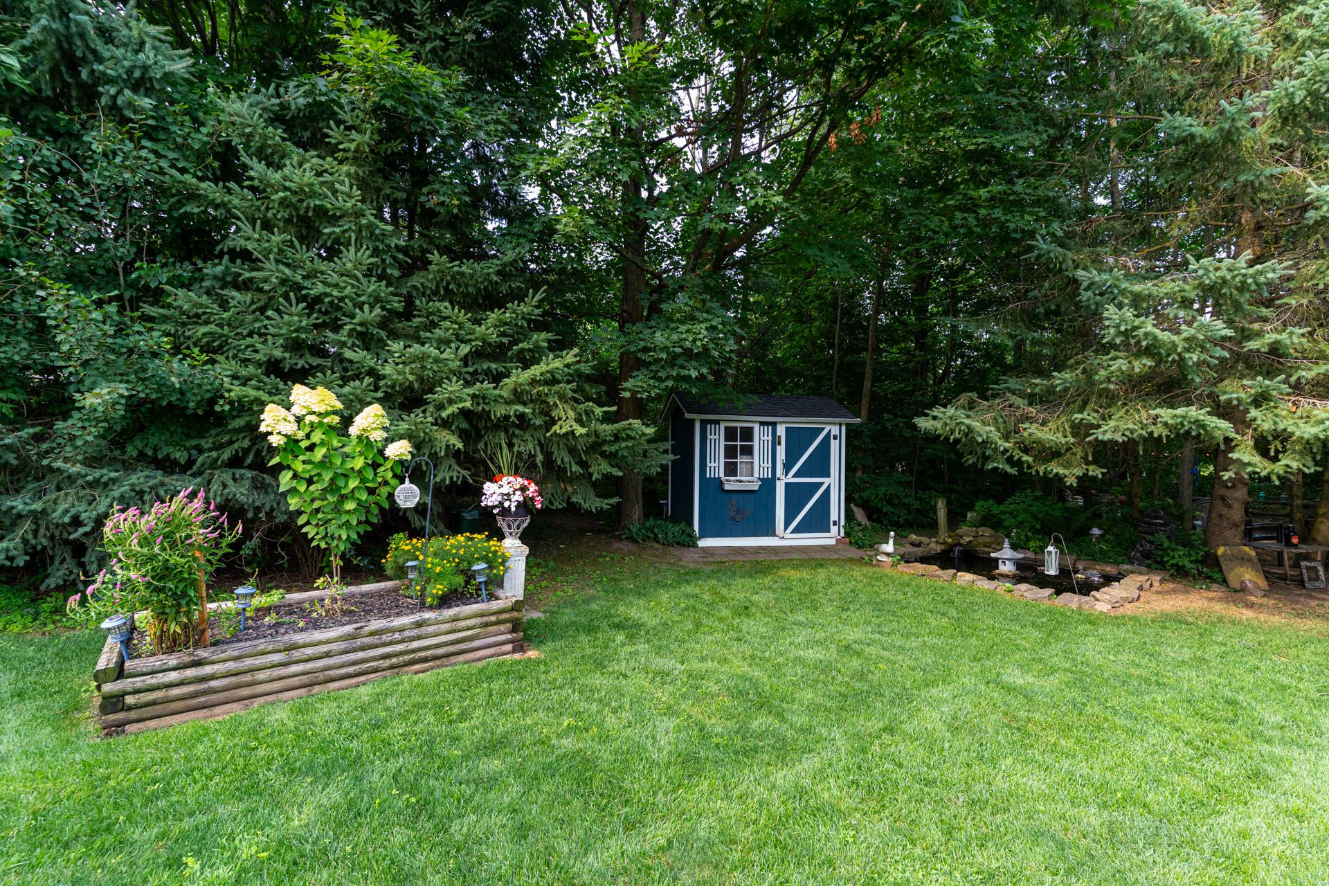 Experience the perfect blend of small-town charm and countryside tranquility with this exceptional property in a highly sought after area of shelburne. Set on a beautifully landscaped . 55-acre corner lot with mature trees, this home offers privacy, space, and a unique country in town feel just minutes from all amenities. A front yard sprinkler system keeps the lush landscaping vibrant and easy to maintain. A rare find, this property boasts two driveways, one ideal for trailers, rvs, or extra vehicles, plus a double car garage and parking for up to nine cars. Inside, you are welcomed by a tiled foyer with double closet leading to a formal living room with vinyl flooring and an oversized bay window. The cozy family room features a stone wood burning fireplace, wainscoting, and a walkout to the back deck. The kitchen is bright and inviting with a massive skylight, large windows, stainless steel fridge, and dishwasher. The spacious primary bedroom is a private retreat with a walkout to the deck and hot tub, a walk in closet, and a 5-piece semi ensuite. Two additional bedrooms each offer large windows and double closets. The main floor laundry room includes cabinets, a sink, and a side entrance with direct garage access, ideal for creating an in-law suite or basement apartment, plus a convenient 3-piece bathroom. The finished basement is an entertainers dream, styled with vintage wood paneling for a retro arcade vibe, complete with a bar, two bedrooms, a 3-piece bathroom, and a large utility room ready to be converted into a kitchen if desired. From summer evenings in your private backyard to hosting game nights downstairs, this property offers a lifestyle of space, flexibility, and fun in one of shelburne's best locations.