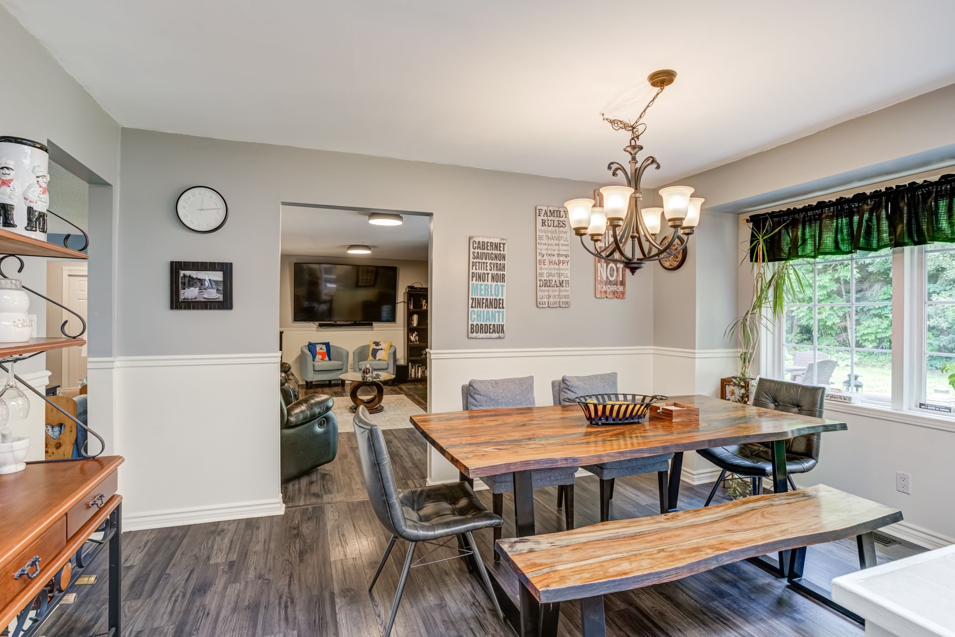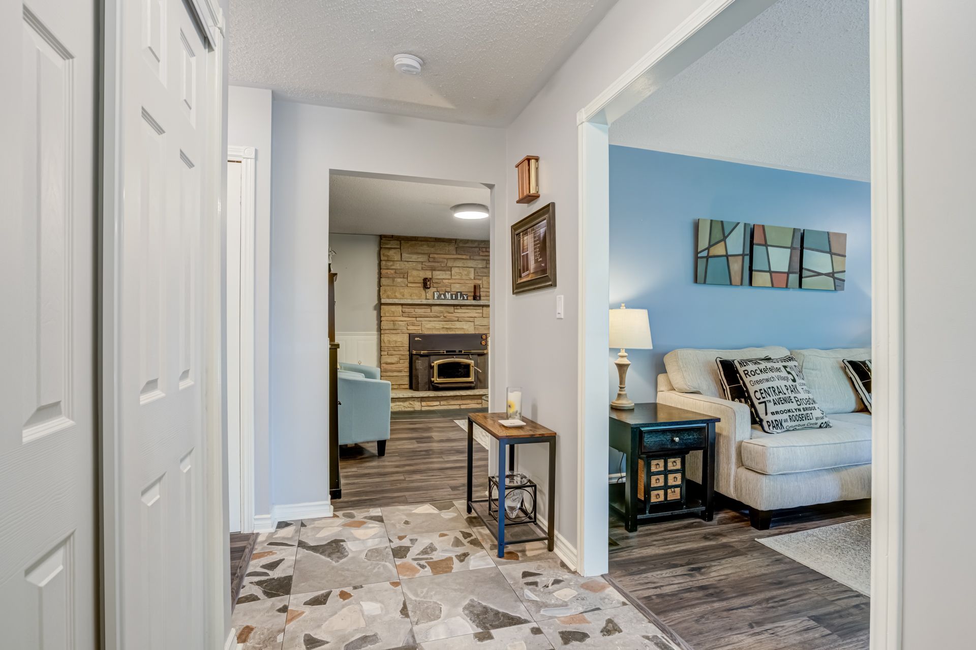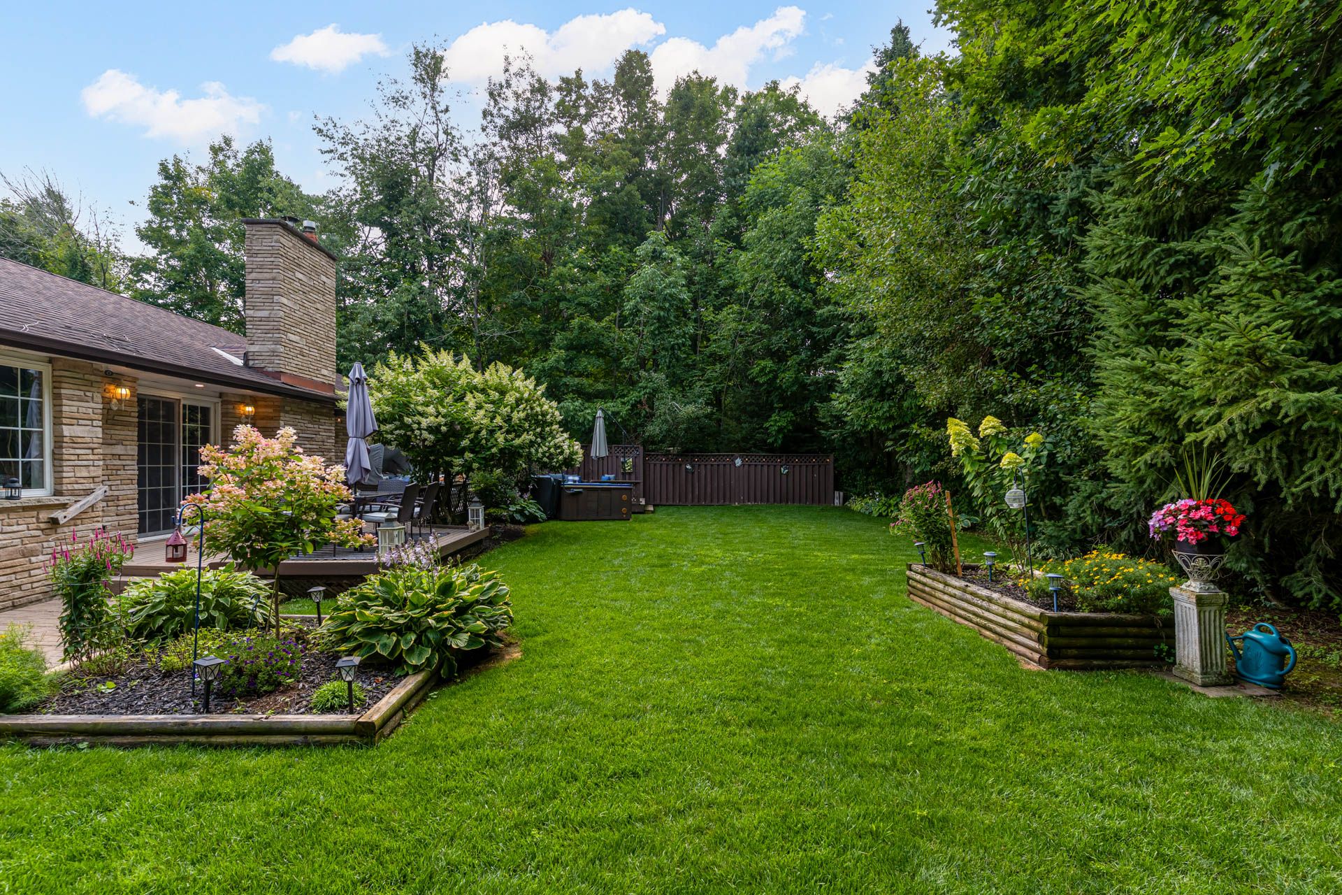 Experience the perfect blend of small-town charm and countryside tranquility with this exceptional property in a highly sought after area of shelburne. Set on a beautifully landscaped . 55-acre corner lot with mature trees, this home offers privacy, space, and a unique country in town feel just minutes from all amenities. A front yard sprinkler system keeps the lush landscaping vibrant and easy to maintain. A rare find, this property boasts two driveways, one ideal for trailers, rvs, or extra vehicles, plus a double car garage and parking for up to nine cars. Inside, you are welcomed by a tiled foyer with double closet leading to a formal living room with vinyl flooring and an oversized bay window. The cozy family room features a stone wood burning fireplace, wainscoting, and a walkout to the back deck. The kitchen is bright and inviting with a massive skylight, large windows, stainless steel fridge, and dishwasher. The spacious primary bedroom is a private retreat with a walkout to the deck and hot tub, a walk in closet, and a 5-piece semi ensuite. Two additional bedrooms each offer large windows and double closets. The main floor laundry room includes cabinets, a sink, and a side entrance with direct garage access, ideal for creating an in-law suite or basement apartment, plus a convenient 3-piece bathroom. The finished basement is an entertainers dream, styled with vintage wood paneling for a retro arcade vibe, complete with a bar, two bedrooms, a 3-piece bathroom, and a large utility room ready to be converted into a kitchen if desired. From summer evenings in your private backyard to hosting game nights downstairs, this property offers a lifestyle of space, flexibility, and fun in one of shelburne's best locations.