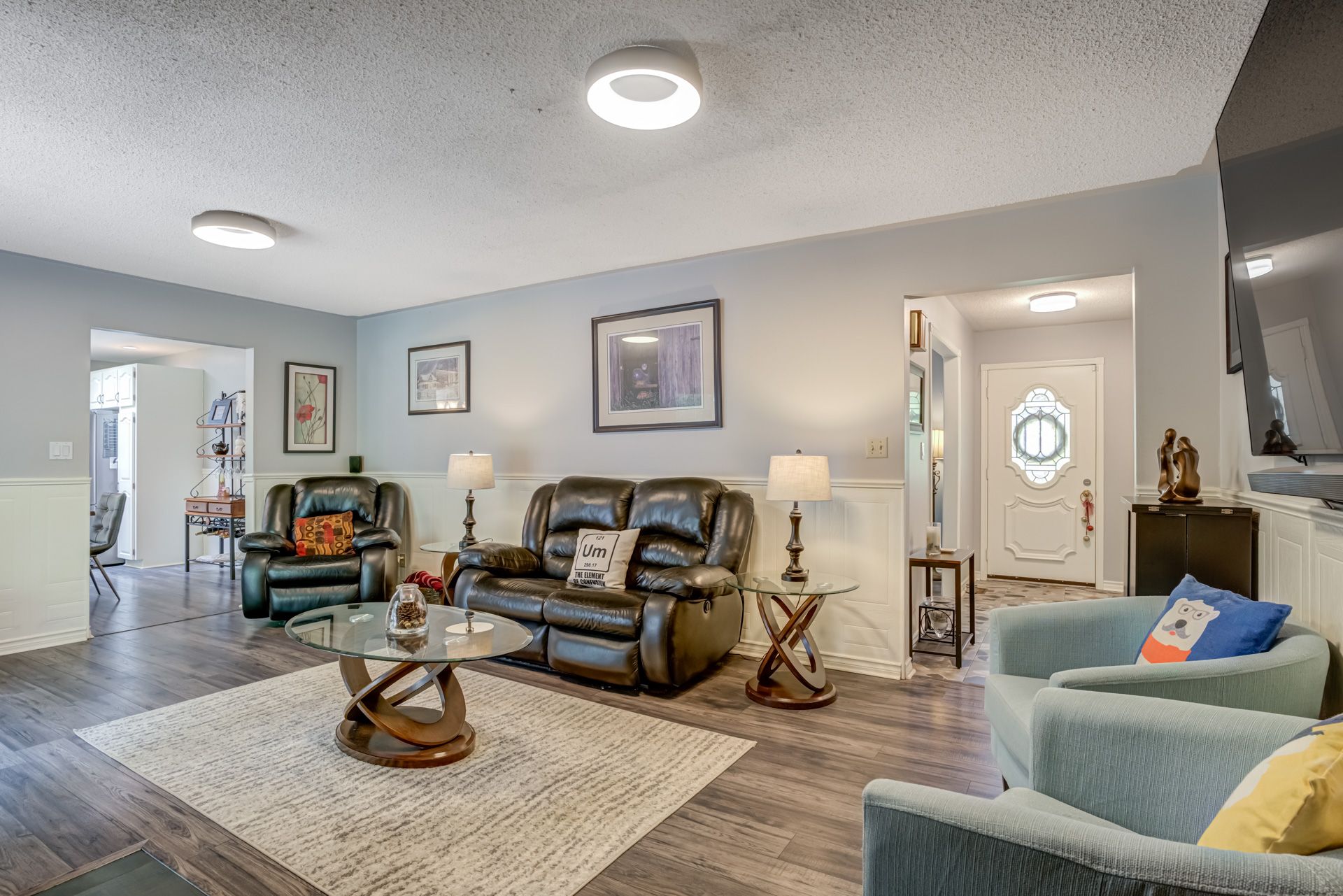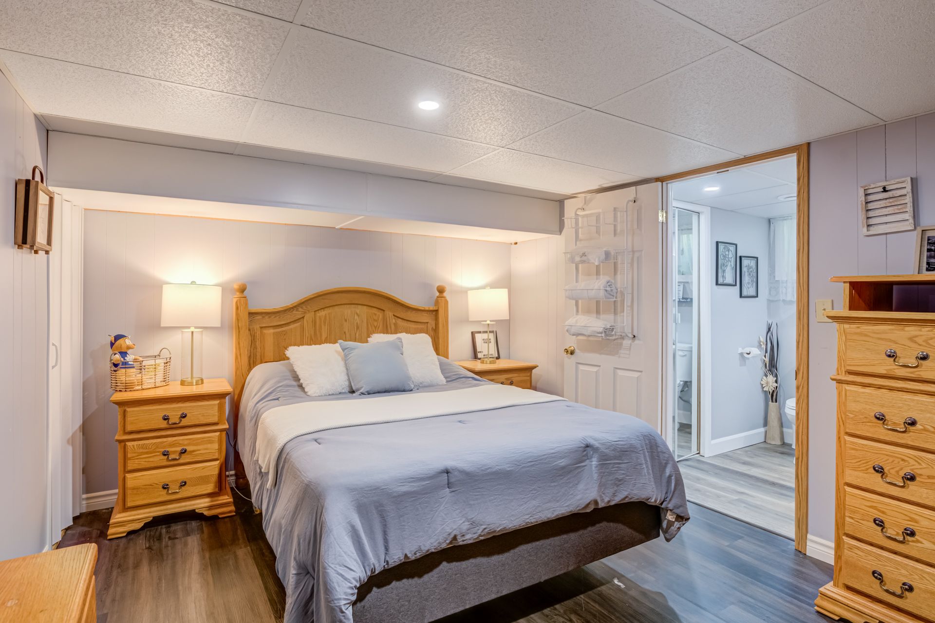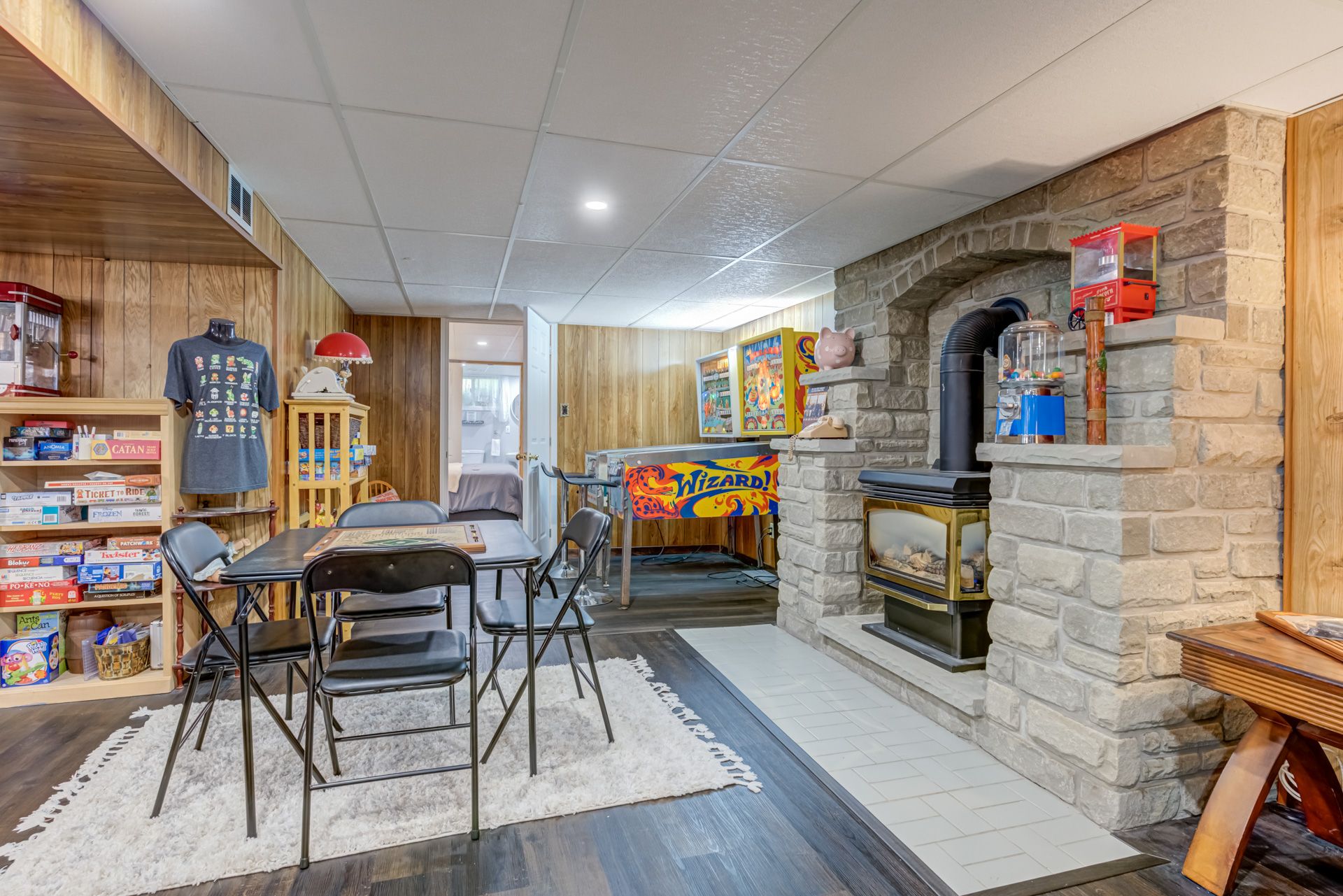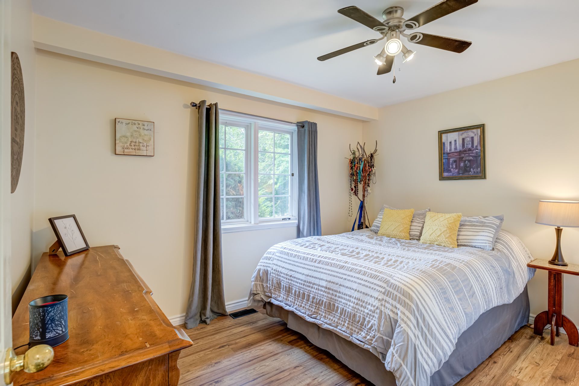 Experience the perfect blend of small-town charm and countryside tranquility with this exceptional property in a highly sought after area of shelburne. Set on a beautifully landscaped . 55-acre corner lot with mature trees, this home offers privacy, space, and a unique country in town feel just minutes from all amenities. A front yard sprinkler system keeps the lush landscaping vibrant and easy to maintain. A rare find, this property boasts two driveways, one ideal for trailers, rvs, or extra vehicles, plus a double car garage and parking for up to nine cars. Inside, you are welcomed by a tiled foyer with double closet leading to a formal living room with vinyl flooring and an oversized bay window. The cozy family room features a stone wood burning fireplace, wainscoting, and a walkout to the back deck. The kitchen is bright and inviting with a massive skylight, large windows, stainless steel fridge, and dishwasher. The spacious primary bedroom is a private retreat with a walkout to the deck and hot tub, a walk in closet, and a 5-piece semi ensuite. Two additional bedrooms each offer large windows and double closets. The main floor laundry room includes cabinets, a sink, and a side entrance with direct garage access, ideal for creating an in-law suite or basement apartment, plus a convenient 3-piece bathroom. The finished basement is an entertainers dream, styled with vintage wood paneling for a retro arcade vibe, complete with a bar, two bedrooms, a 3-piece bathroom, and a large utility room ready to be converted into a kitchen if desired. From summer evenings in your private backyard to hosting game nights downstairs, this property offers a lifestyle of space, flexibility, and fun in one of shelburne's best locations.