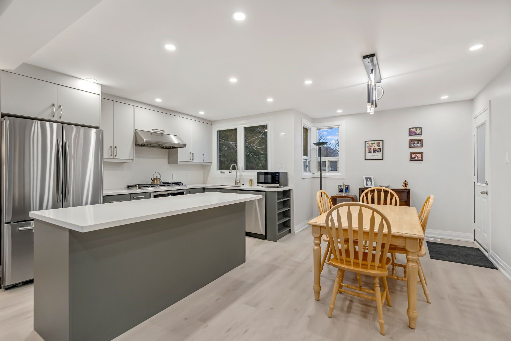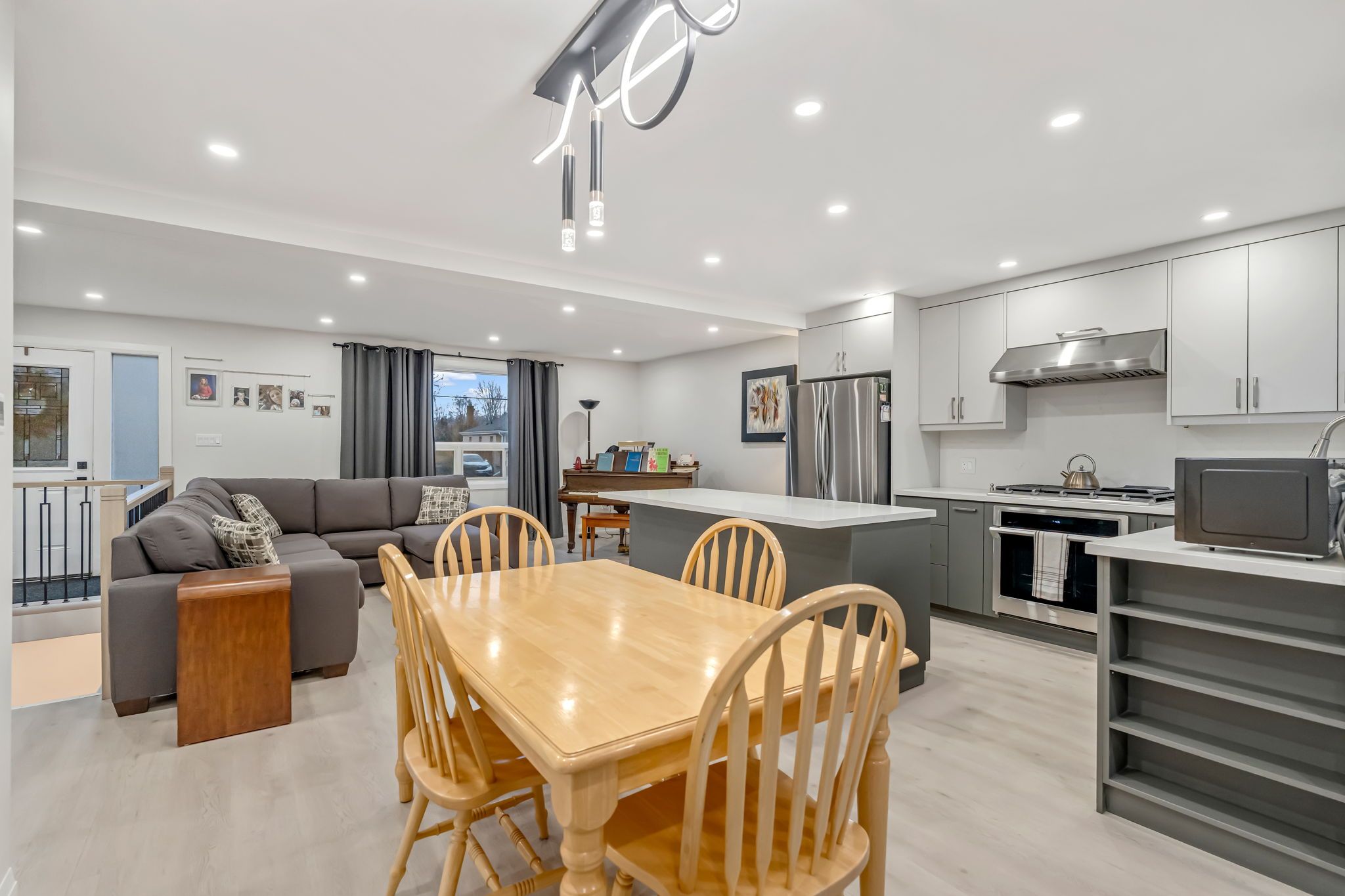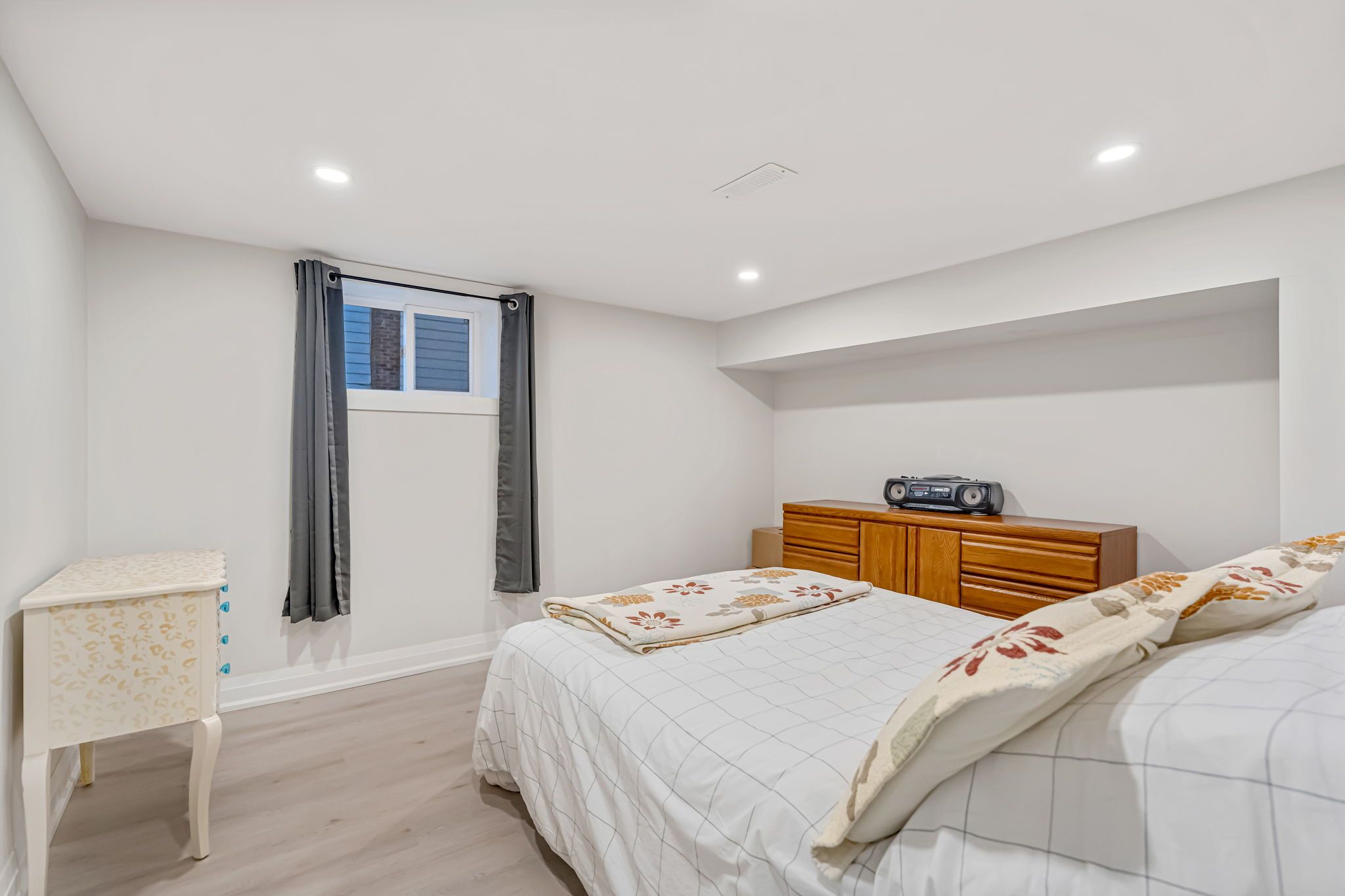 Located in one of stoney creek's most desirable neighbourhoods, this beautifully updated bungalow with 2+1 bedrooms, and 2 full bathrooms, is surrounded by cherry heights park, corman park, local schools, the historic downtown, and an excellent selection of quality restaurants and amenities. The home has been thoughtfully redesigned to enhance light, flow, and everyday functionality, featuring oversized windows and a seamless open-concept layout. The modern kitchen is both stylish and practical, offering quartz countertops, stainless steel appliances, and a comfortable eat-in breakfast nook. A custom railing staircase leads to a well-planned lower level complete with an additional bathroom and a spacious recreation room perfect for guests, teenagers, or extended living space. Step outside to a newly built wood deck overlooking a professionally landscaped backyard oasis - backing onto a park - ideal for relaxing, entertaining, and enjoying the changing seasons. A truly turnkey property in an established community, offering refined updates, outdoor living, and an exceptional location.